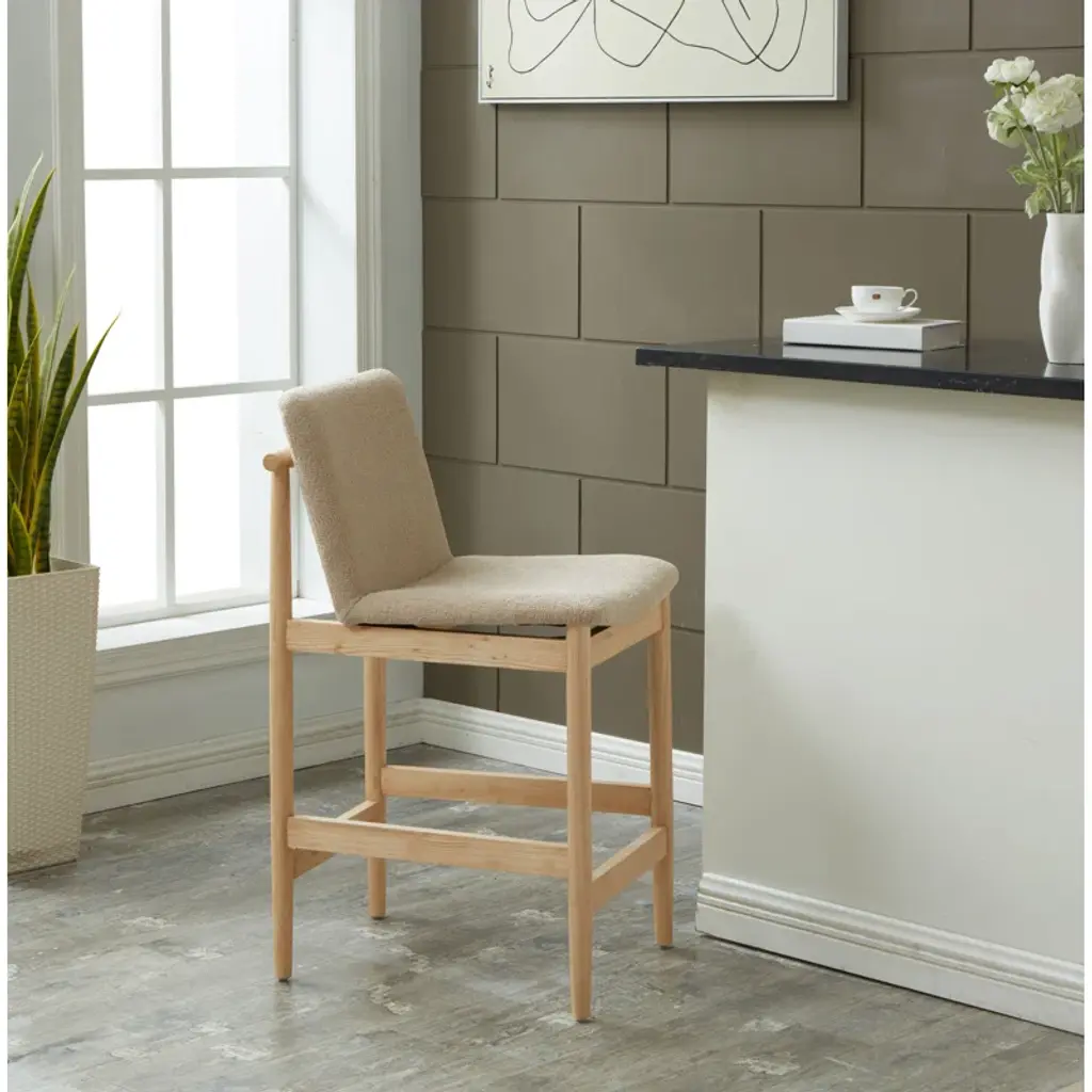 Introducing the Daffodil Boucle Counter Stool, a premium counter stool that truly exudes elegance and adds a rich touch to your space. Dressed in a sophisticated color, this piece flawlessly blends with any décor, making it remarkably eye-catching and versatile. This splendid stool is upholstered in high-quality Boucle fabric, known for its unique curl pattern and soft loop pile that creates a textured, comfortable seat offering an unrivaled sitting experience. This plush covering further enhances the aesthetic value of the stool and adds to its luxurious appeal. The robust and exquisite ashwood structure gives the Daffodil Boucle Counter Stool a sturdy base ensuring its durability, while also providing a natural and warm aesthetic to your counter area. The blend of the high-quality Boucle fabric and reliable Ashwood makes it a valuable investment that combines style and utility. Place it at your counter and your guests will certainly take notice of its beautiful design and unmatched comfort. The Da ffodilBoucle Counter stool not only serves a purpose but does it in style. Upgrade your counter seating with the Daffodil Boucle Counter Stool and experience the perfect mix of luxury and comfort.