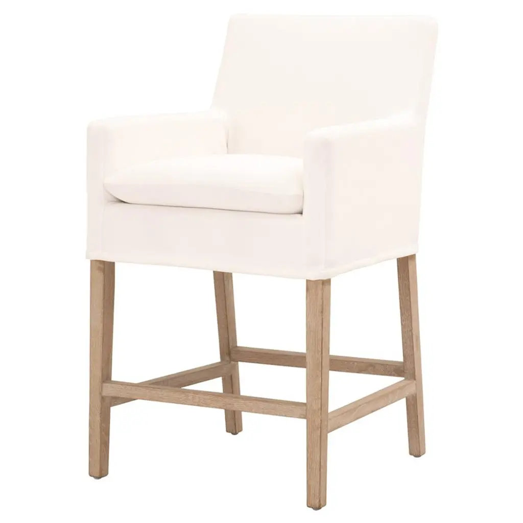Danielle Modern Classic White Performance Slipcover Oak Wood Counter Stool