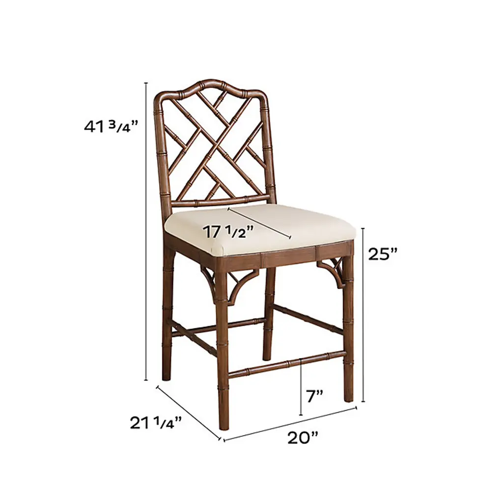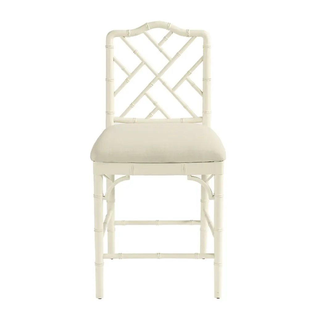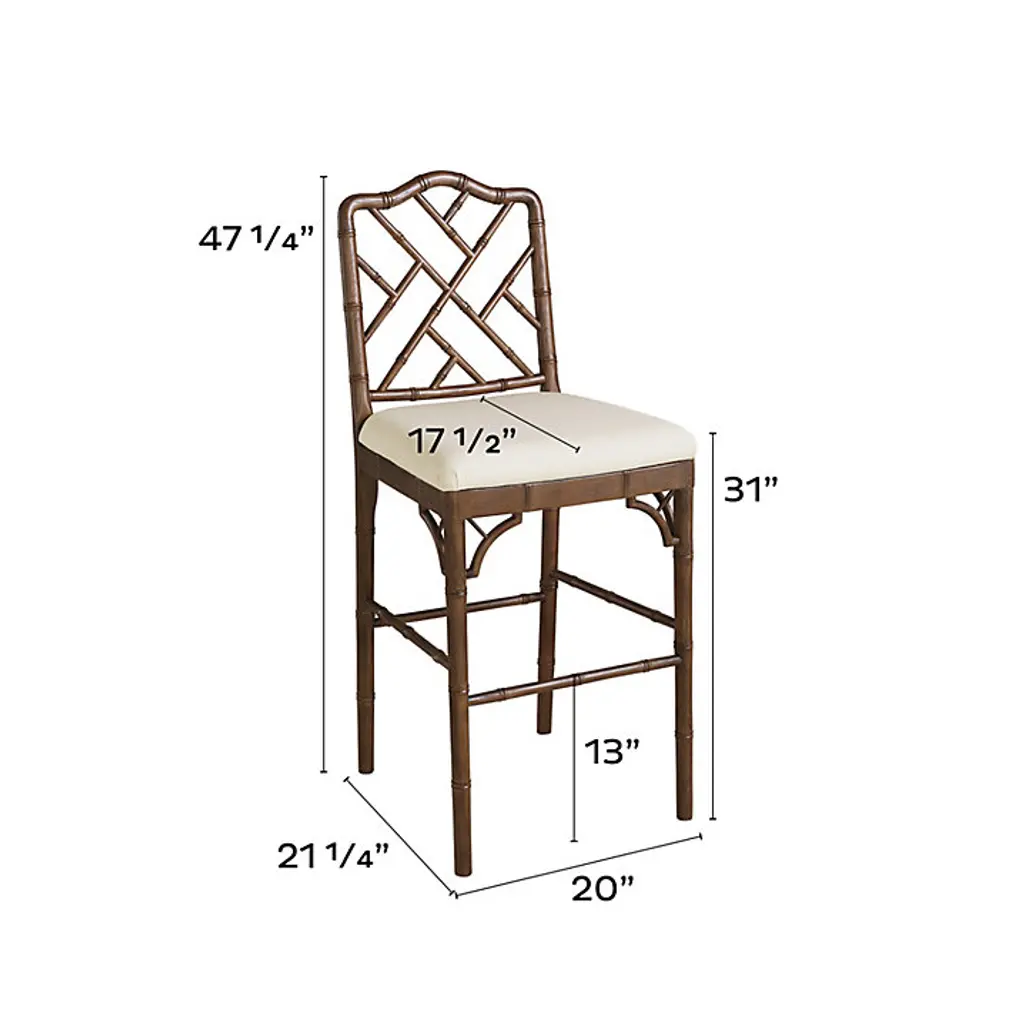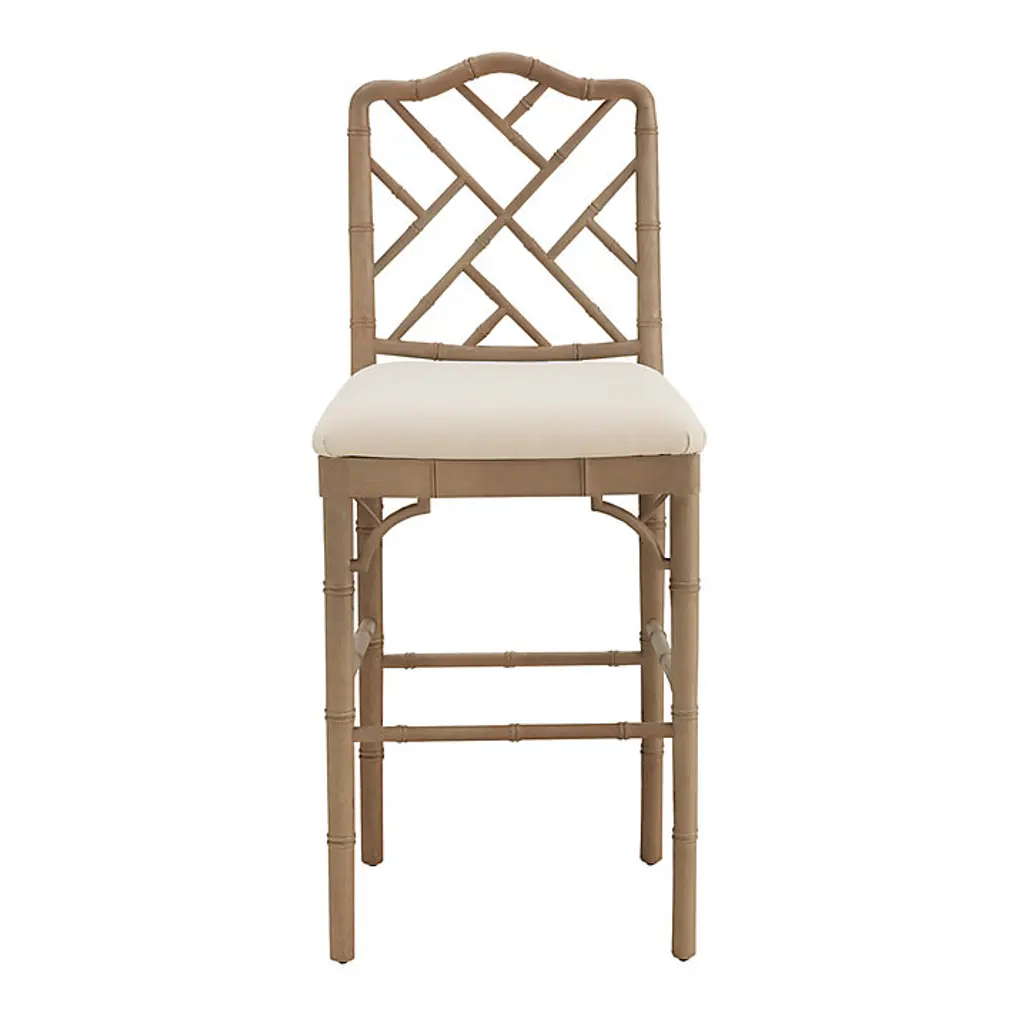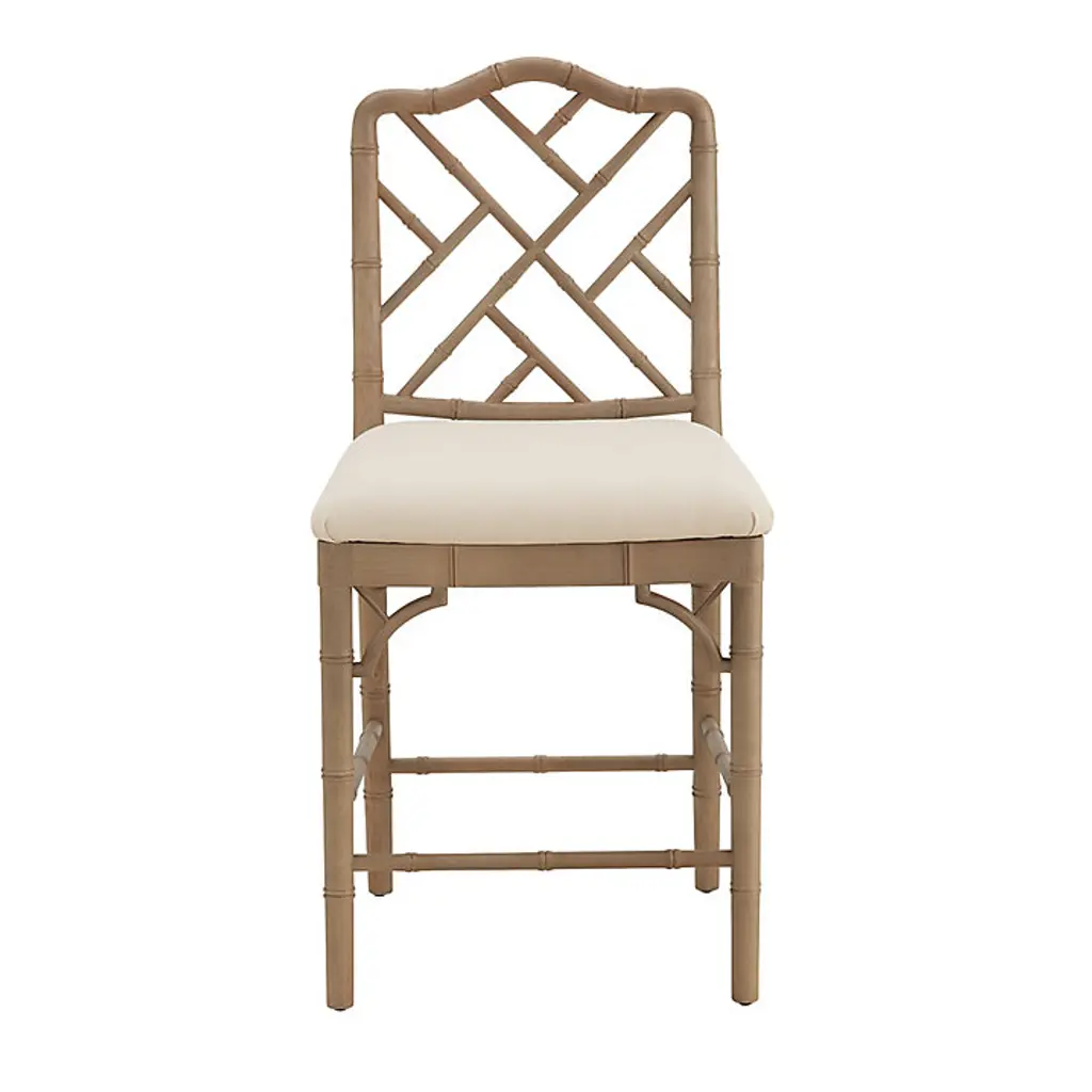 Our Dayna Counter Stools and Barstools capture the sophisticated soul of Chinese Chippendale styling. Solid beech wood frames are artisan crafted with classic fretwork hand finished with bamboo-inspired turnings. Richly padded slip seats are expertly upholstered in our cleanable, family-friendly Sandberg Parchment InsideOut performance fabric, a beautiful choice for spill-prone areas like the dining room, kitchen island and breakfast nook. Seats can be removed for easy re-covering in hundreds of designer fabrics from our beautifully curated collection. Dayna Stool features: • Cleanable, family-friendly performance upholstery• Resilient, high-density foam seat• Seat removes for easy re-covering• Swatches available• Fully assembledBallard Designs Performance Fabrics by InsideOut features:• GREENGUARD Gold Certified for contributing to healthy indoor air as a product with low chemical and particle emissions• Family-friendly, pet-friendly• Luxuriously soft hand• Ultra-durable & stain resistant• UV & fade resistant• Cleans easily with soap & water• Bleach cleanable