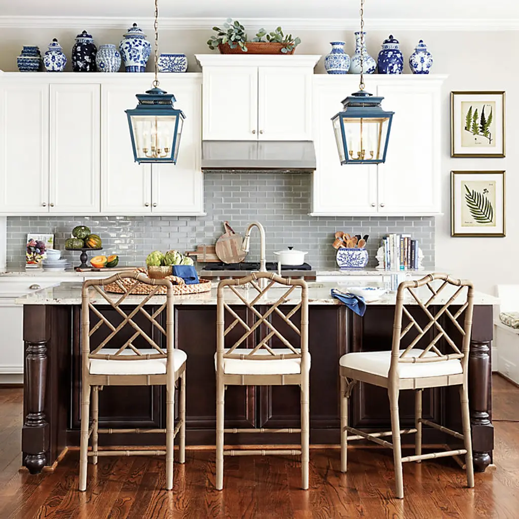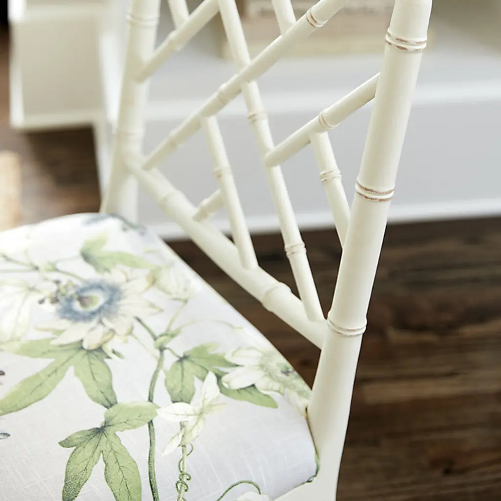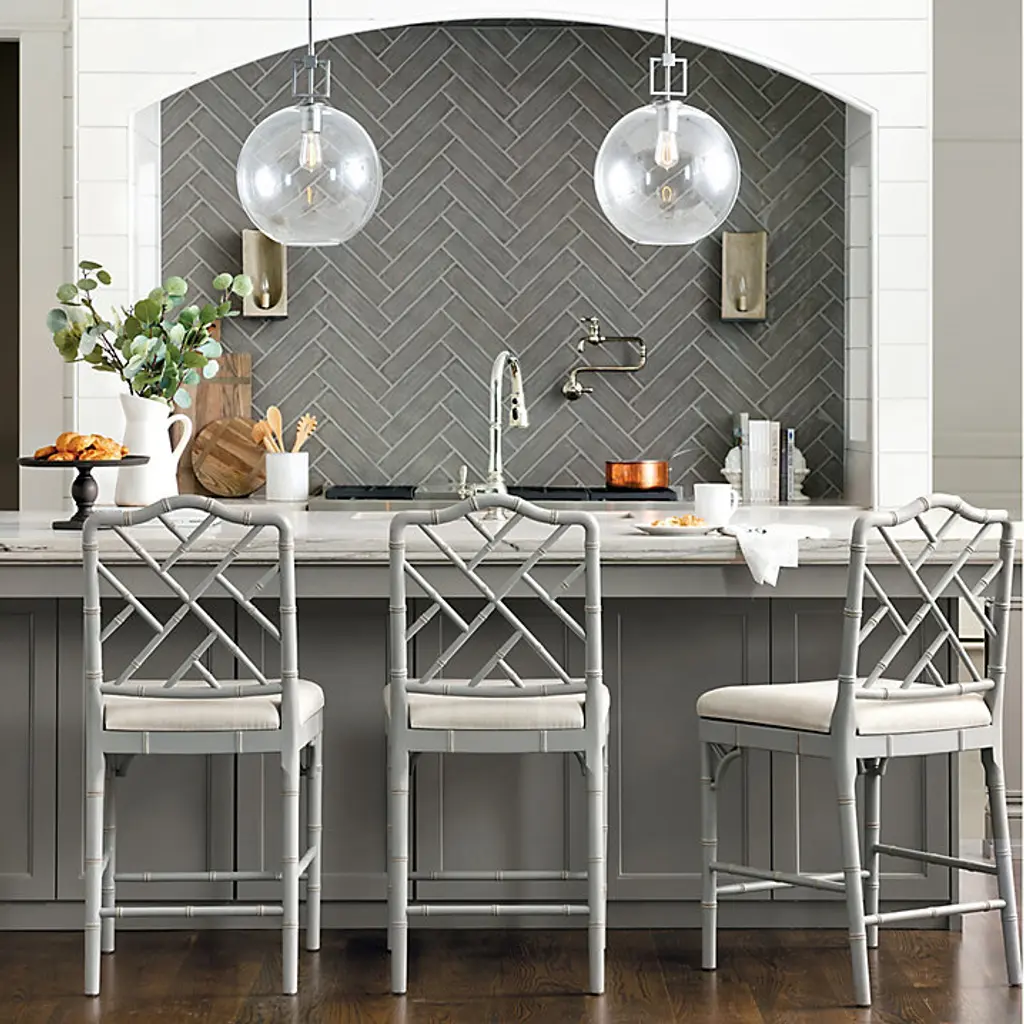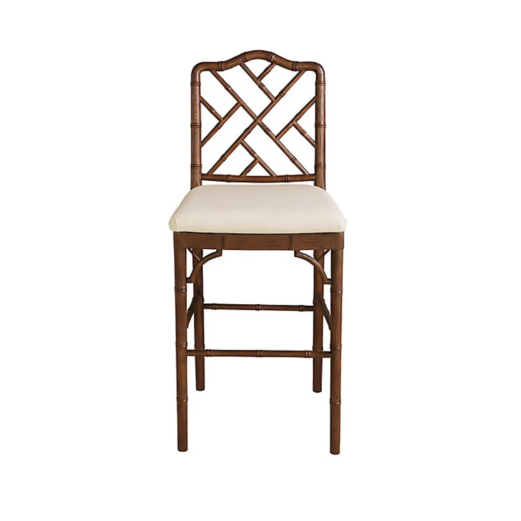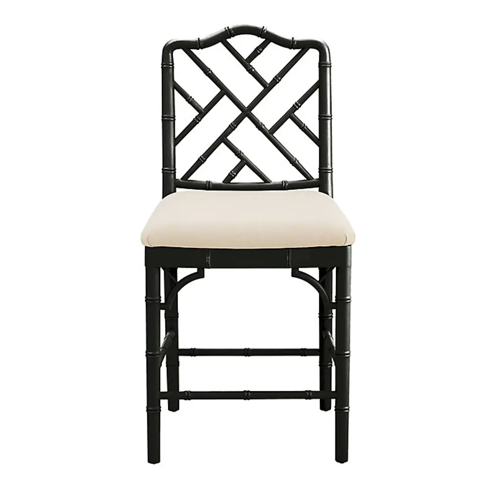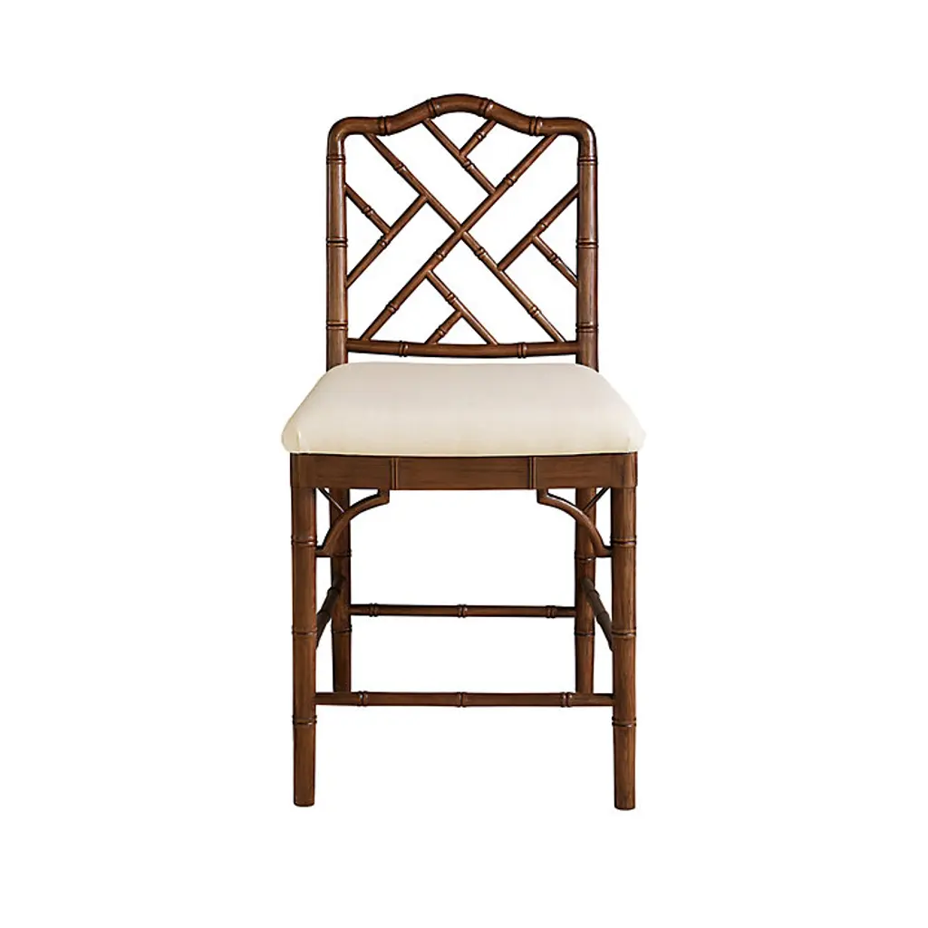 Our Dayna Counter Stools and Barstools capture the sophisticated soul of Chinese Chippendale styling. Solid beech wood frames are artisan crafted with classic fretwork hand finished with bamboo-inspired turnings. Richly padded slip seats are expertly upholstered in our cleanable, family-friendly Sandberg Parchment InsideOut performance fabric, a beautiful choice for spill-prone areas like the dining room, kitchen island and breakfast nook. Seats can be removed for easy re-covering in hundreds of designer fabrics from our beautifully curated collection. Dayna Stool features: • Cleanable, family-friendly performance upholstery• Resilient, high-density foam seat• Seat removes for easy re-covering• Swatches available• Fully assembledBallard Designs Performance Fabrics by InsideOut features:• GREENGUARD Gold Certified for contributing to healthy indoor air as a product with low chemical and particle emissions• Family-friendly, pet-friendly• Luxuriously soft hand• Ultra-durable & stain resistant• UV & fade resistant• Cleans easily with soap & water• Bleach cleanable
