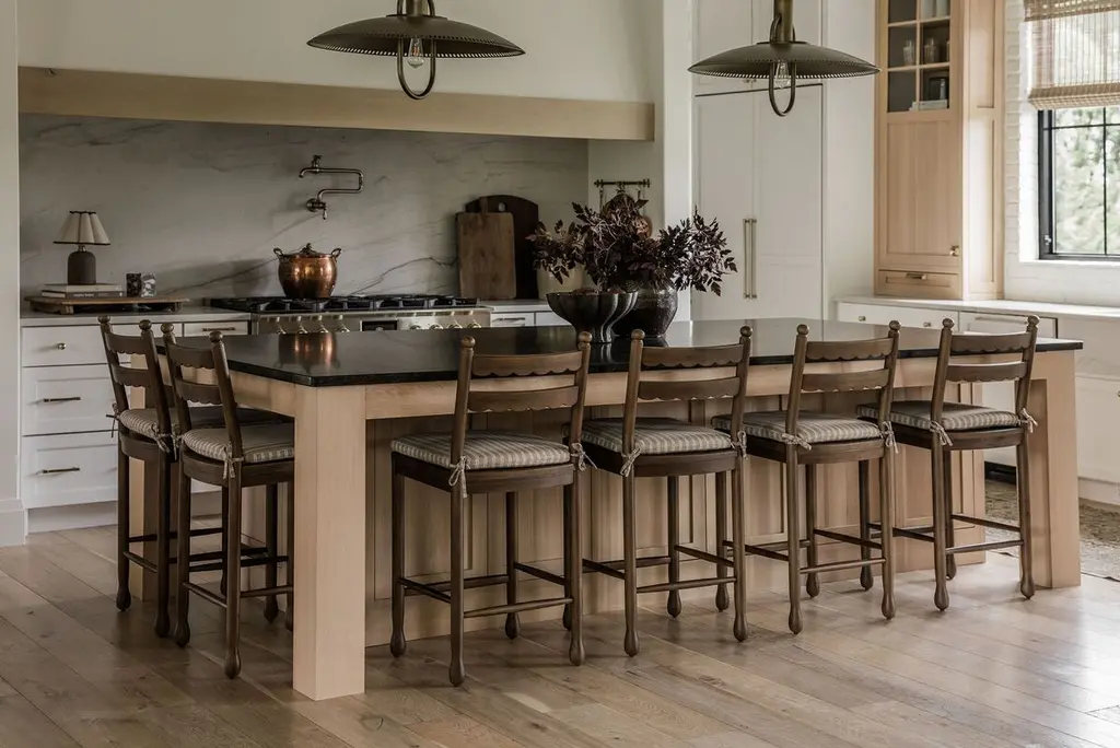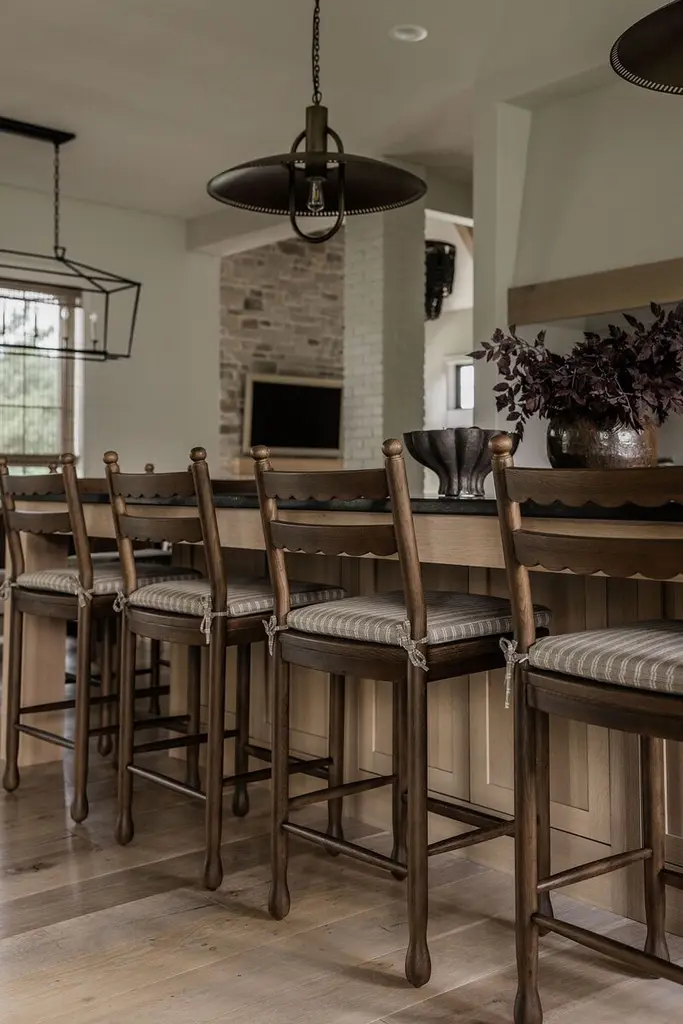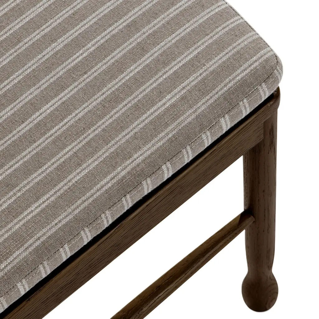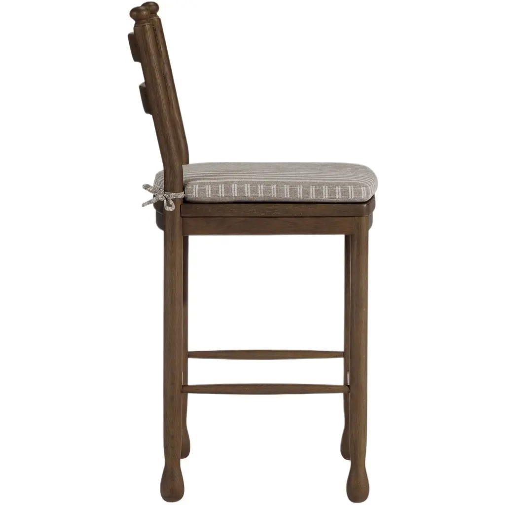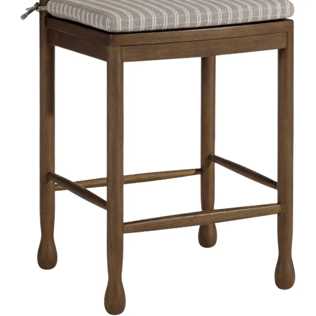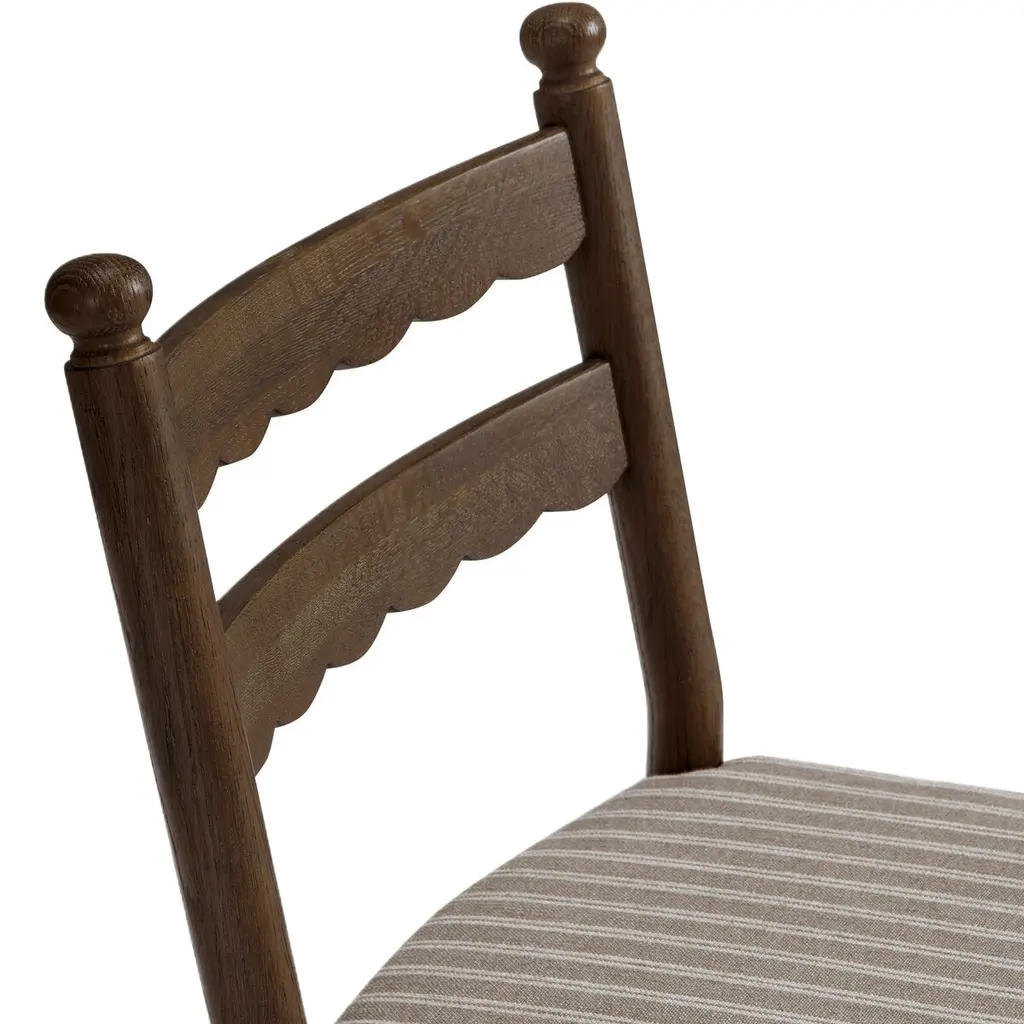 The Declan collection, with its vintage-inspired design, offers both dining chairs and counter stools that exude classic elegance. Each piece features a charming scalloped back and a striped chair pad, combining style with comfort. Perfect for those who appreciate timeless sophistication in their dining spaces.
