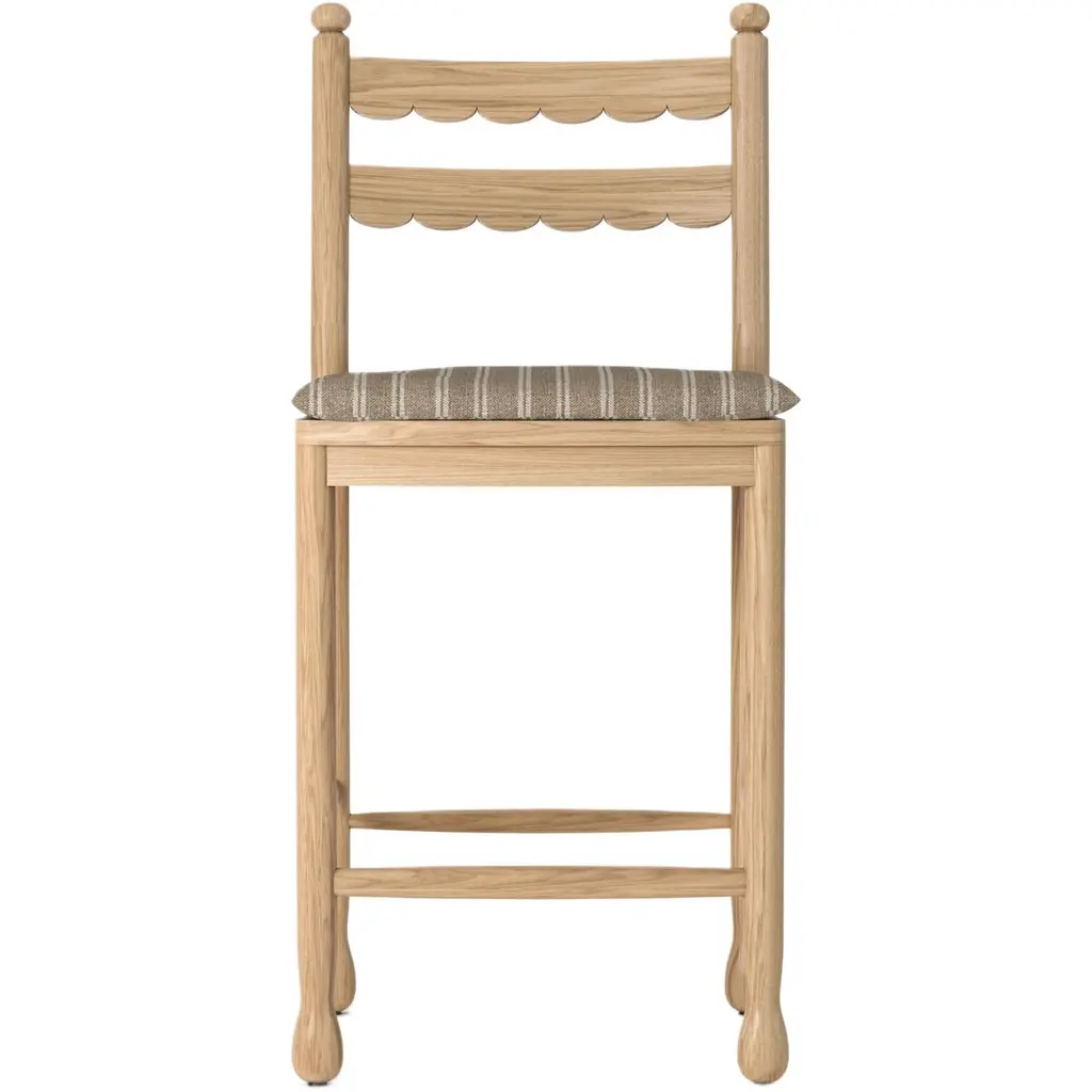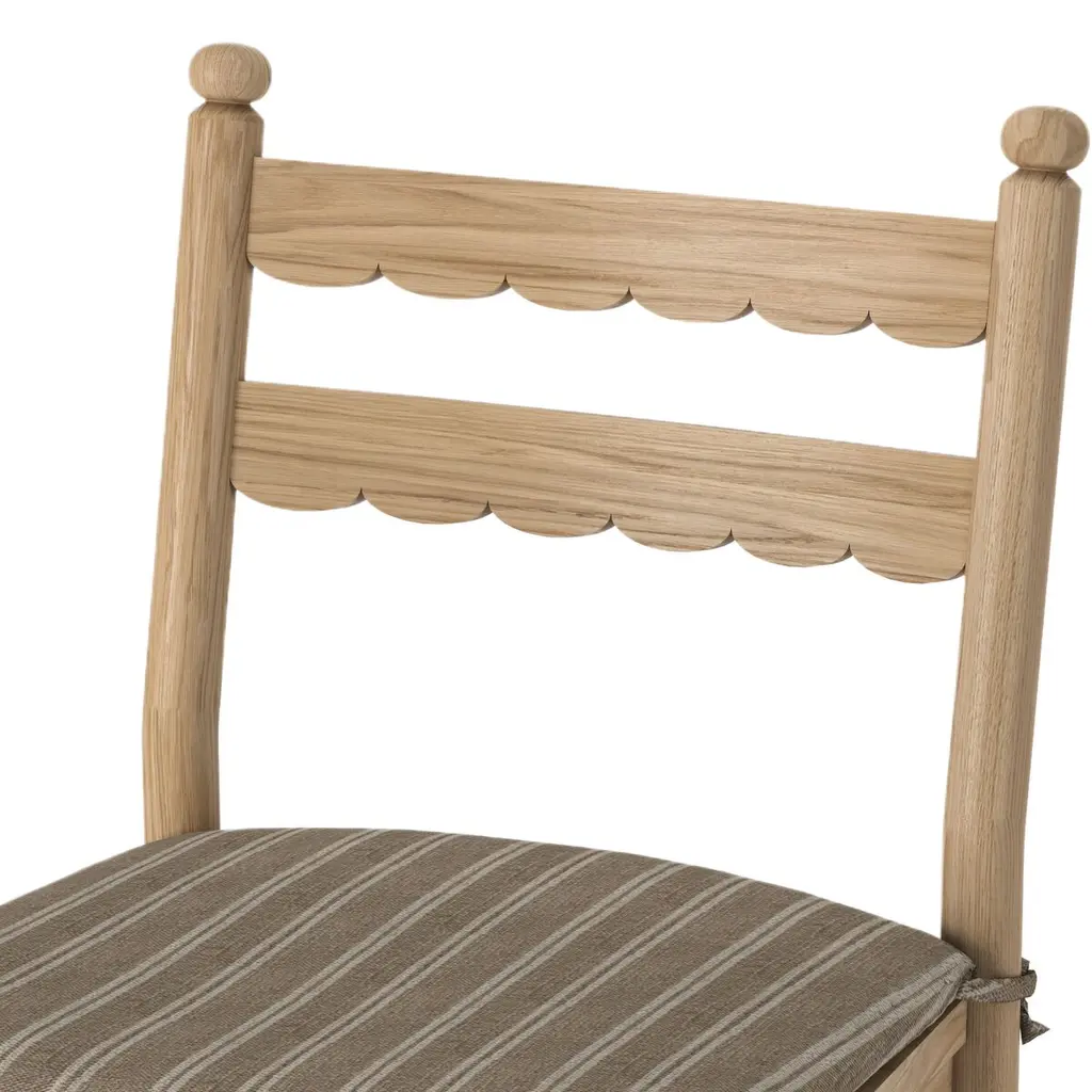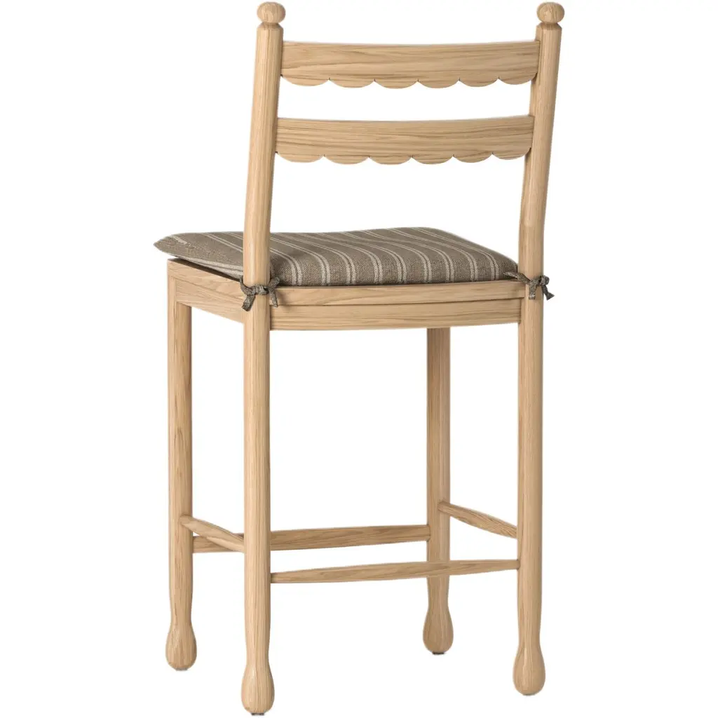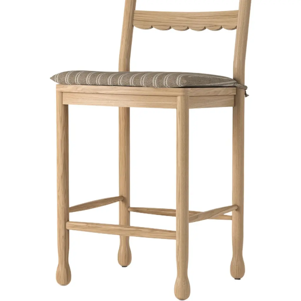 The Declan collection, with its vintage-inspired design, offers both dining chairs and counter stools that exude classic elegance. Each piece features a charming scalloped back and a striped chair pad, combining style with comfort. Perfect for those who appreciate timeless sophistication in their dining spaces.