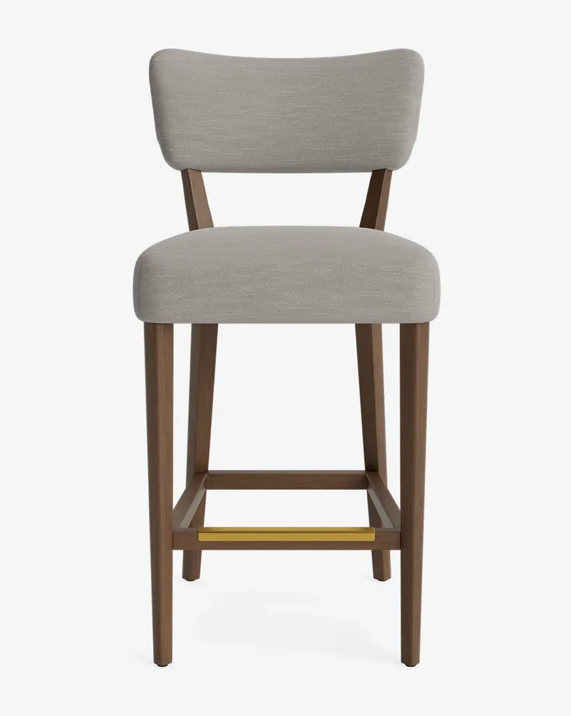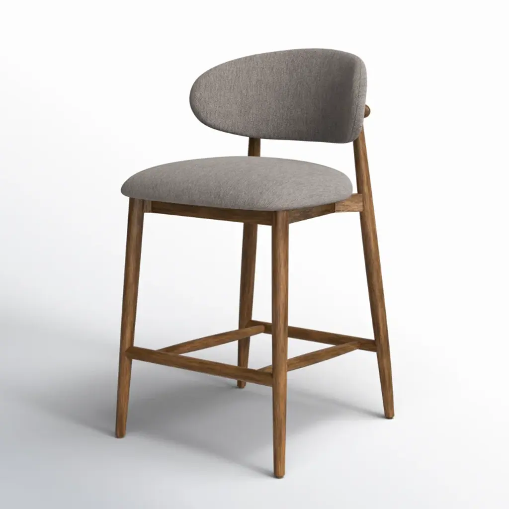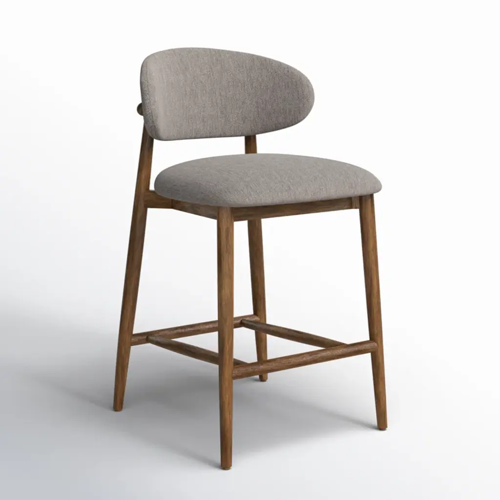 The Deloris counter stool features a padded winged backrest, a refined invitation to gather. A robust rubberwood frame bathed in a dark espresso brown finish harmonizes with the rustic, easy-to-clean performance fabric upholstery, adding a vintage charm with modern convenience--a versatile design that complements a myriad of interior styles.