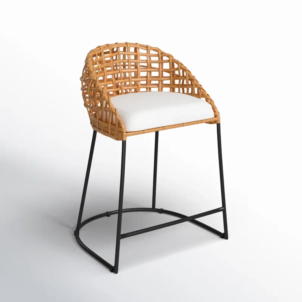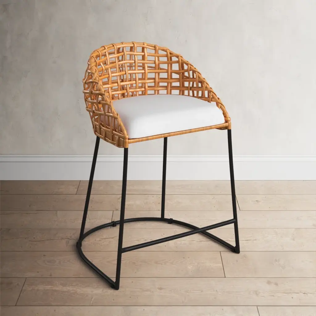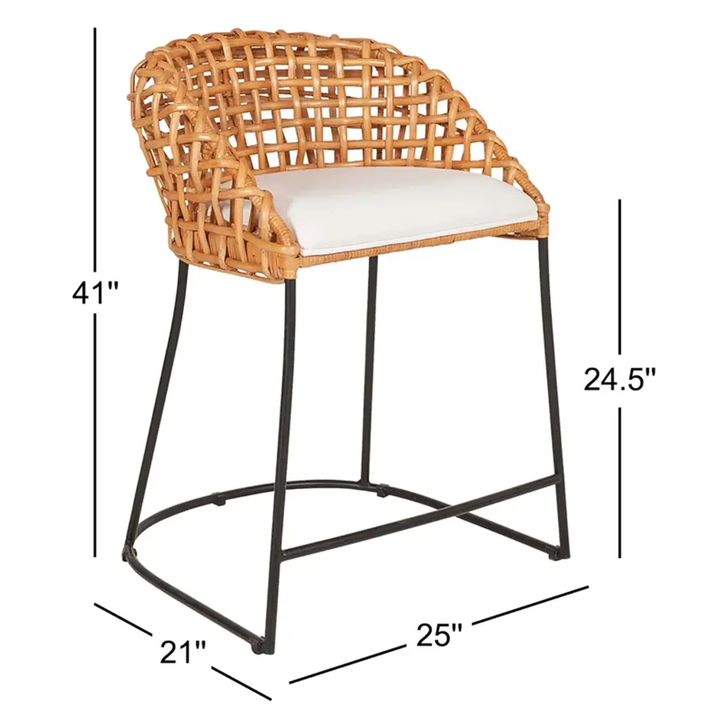 Handcrafted from sustainable rattan left in its natural honey color, this counter stool is sure to bring an warmth to your space. A breezy design, a comfortable upholstered cushion, and a sleek iron base make this stool the perfect balance between modern and coastal. Bring a natural appeal to your kitchen or dining area today with this artisan piece!