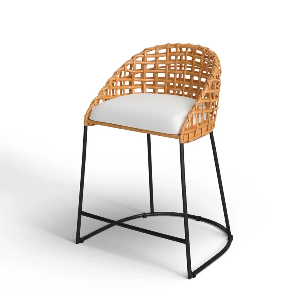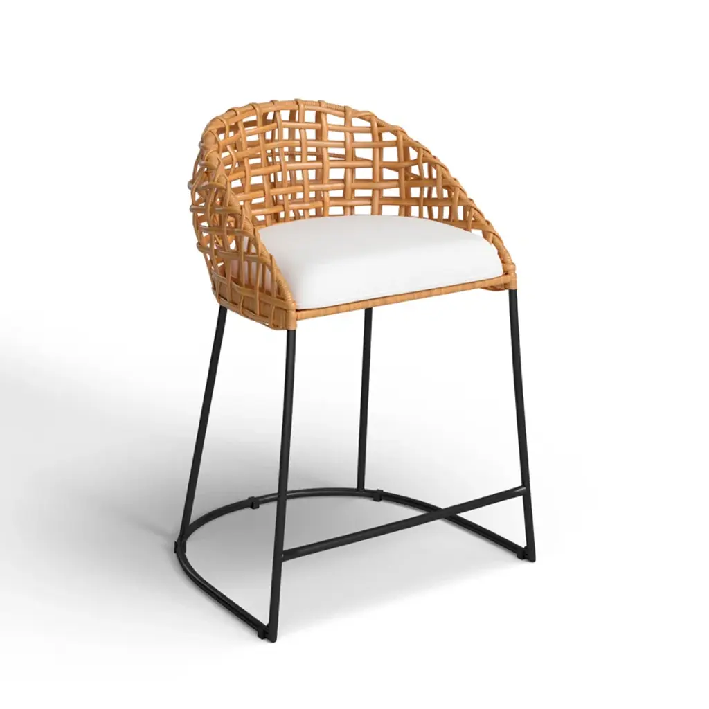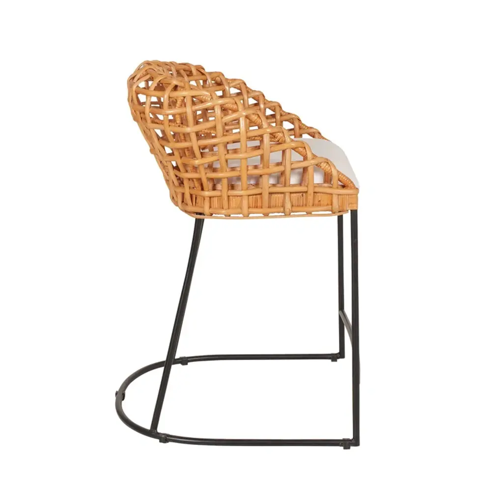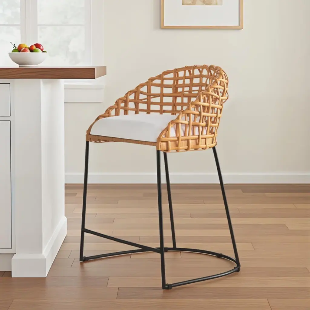 Handcrafted from sustainable rattan left in its natural honey color, this counter stool is sure to bring an warmth to your space. A breezy design, a comfortable upholstered cushion, and a sleek iron base make this stool the perfect balance between modern and coastal. Bring a natural appeal to your kitchen or dining area today with this artisan piece!