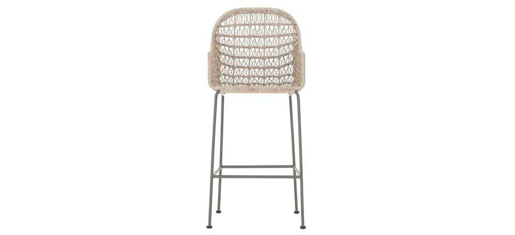 Armless rope seating weaves for fresh texture, with charcoal hairpin legs and a swivel for a fashion-forward touch. Cover or store indoors during inclement weather and when not in use. Ships In 10-14 Business Days Rope seat Charcoal metal legs This image is for illustrative purposes only. The colors shown are accurate within the constraints of lighting, photography, and the color accuracy of your screen.
