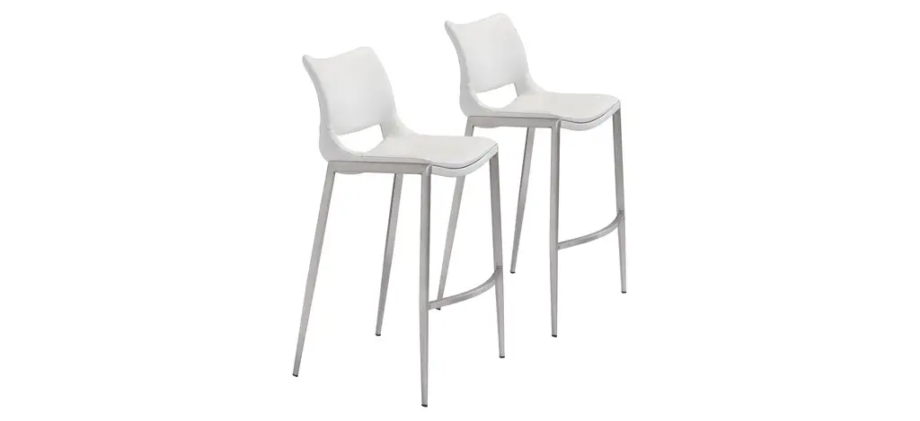 Desi Counter-Height Stool: Set of 2 has mid century modern urban lines and looks great in any space. With a heavy duty vinyl covering and a sturdy steel frame, this bar stool fits in any home kitchen or dining area.