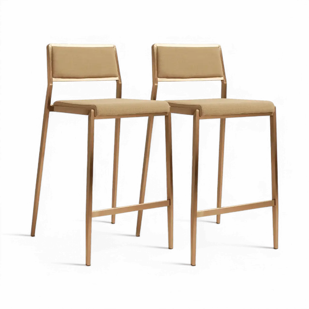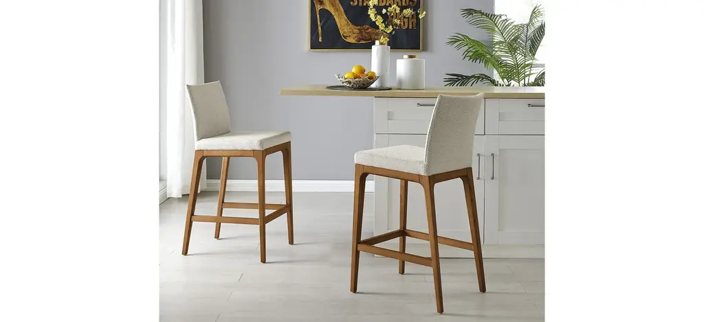 Walnut color legs come together in Mid-century style to support the light lines of the fabric seat in the Devon Counter Stool: Set of 2. The Devon's 26.5" seat height paired with solid ashwood legs provide an air of elegance and simplicity, ensuring this chair will stand out in any setting.