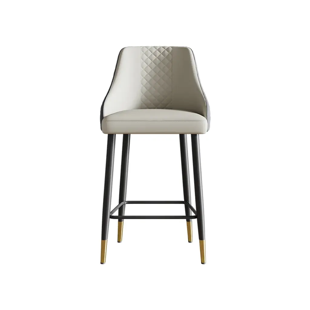 Enhance your dining room with this set of 4 modern bar stools. The comfort and fashion of the high back and foam-padded seat, upholstered in durable PU leather, are fitting for each stool. The light gray and dark gray color options complement a variety of interiors, while the sturdy black and gold metal legs add a luxurious touch. Built-in footrests provide extra support, making these stools perfect for long conversations or casual meals. The stools are perfect for counter-height tables or kitchen islands. With their elegance, your space is raised to a different level of functionality and attraction.