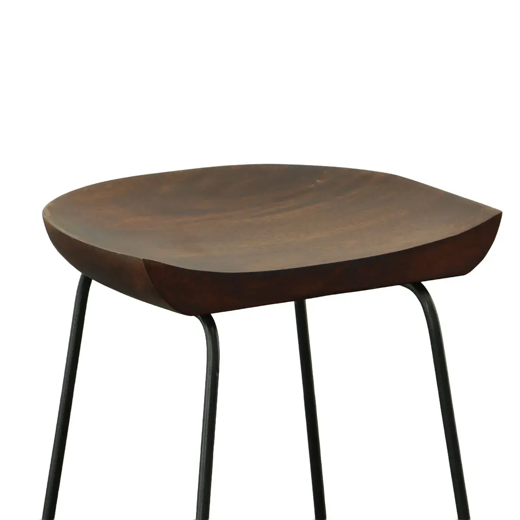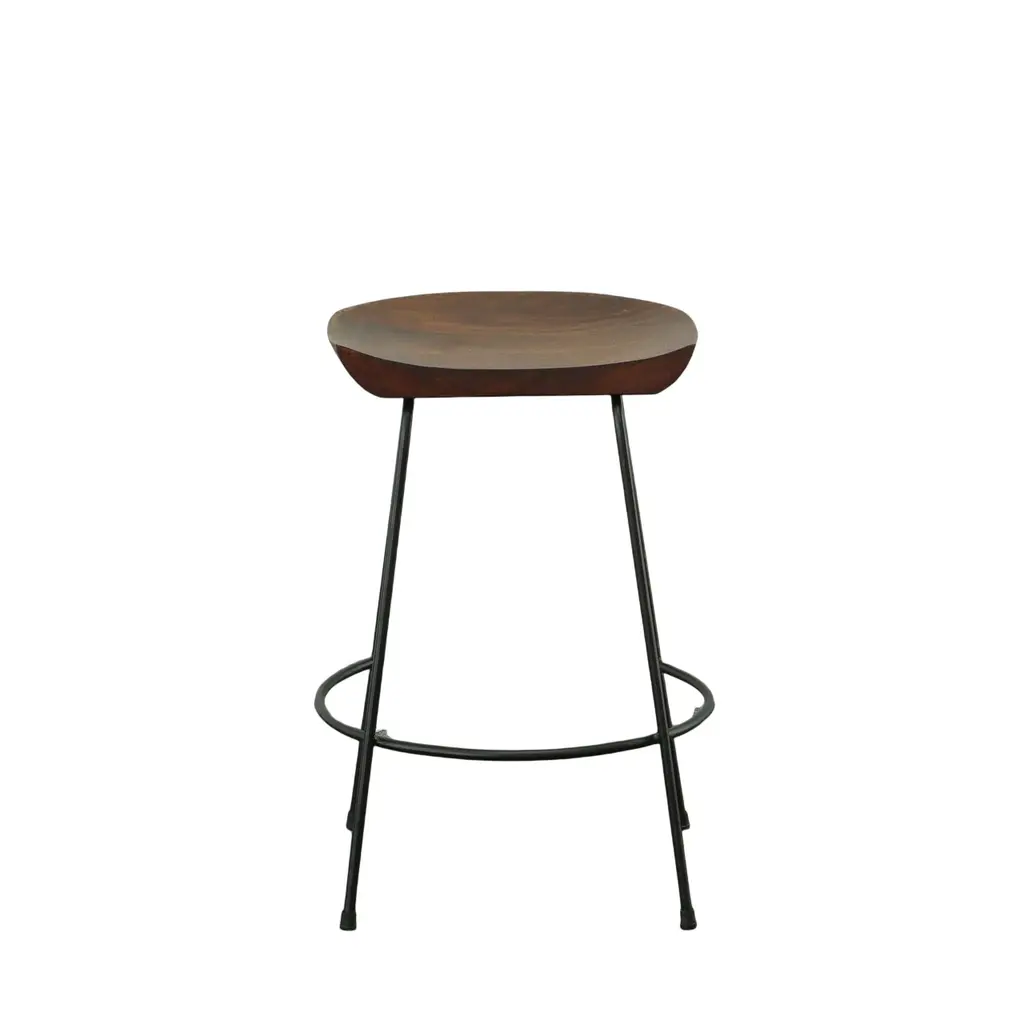 Sleek, sturdy, and effortlessly stylish, our Set of 2 Diya Counter Stools blends natural warmth with industrial edge. Featuring gently contoured solid mango wood seats and slim yet durable iron legs, these stools offer both comfort and character in a minimalist silhouette.The dark wood finish highlights the natural grain, while the rounded metal footrests provide added support for relaxed, everyday seating. Perfect for kitchen islands, breakfast bars, or casual entertaining spaces, they bring functional beauty to modern, rustic, or urban interiors alike.