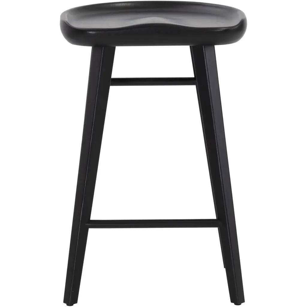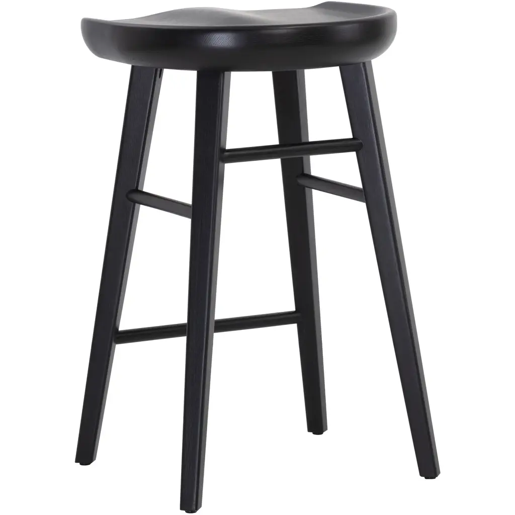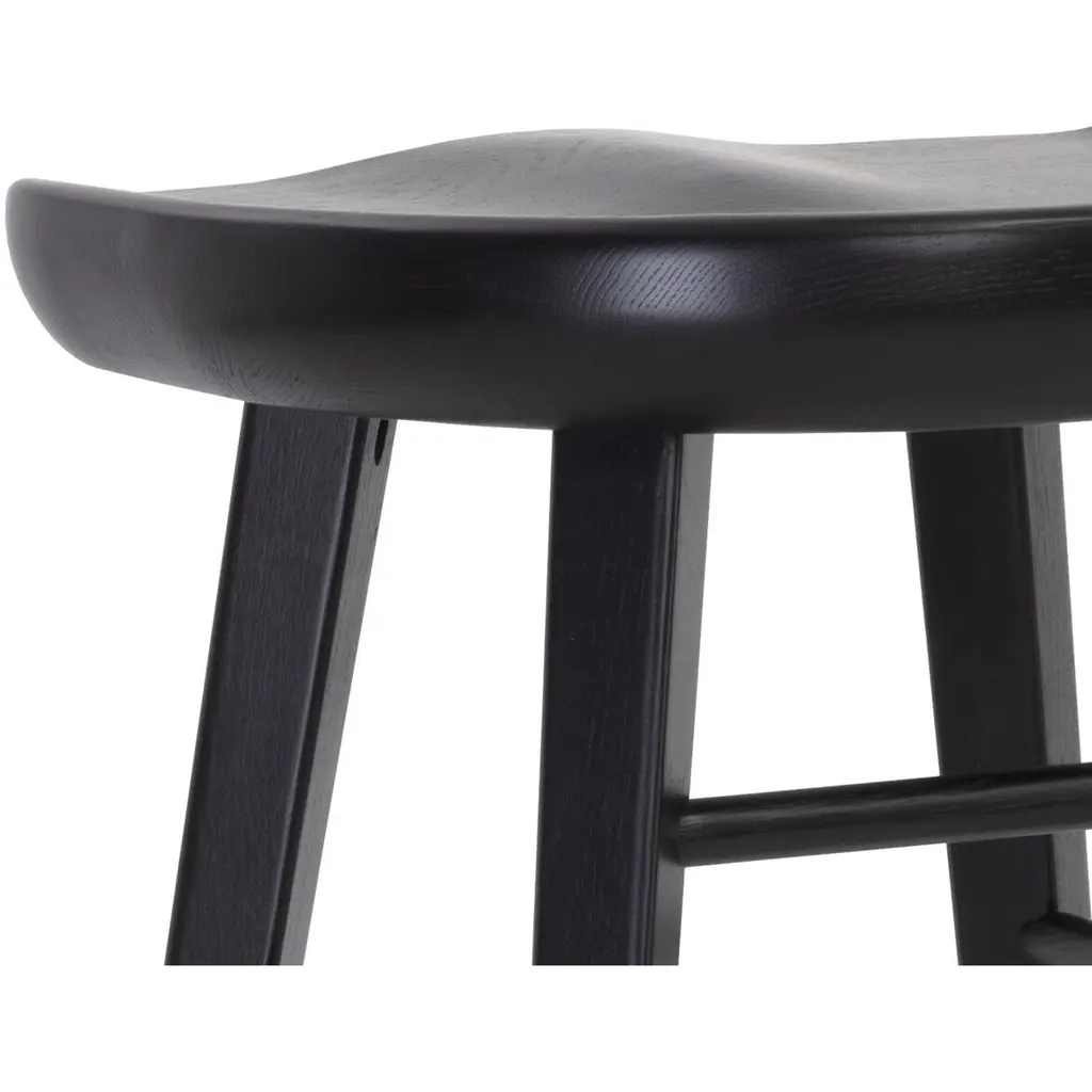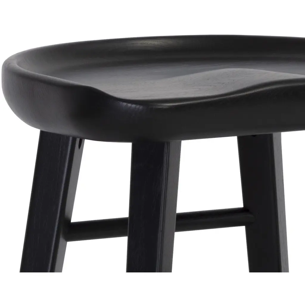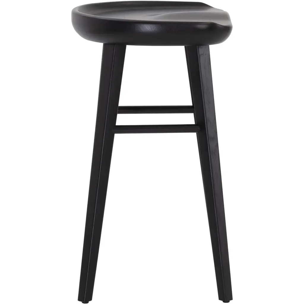 An impressive counter stool crafted from solid oak wood. The sculpted seat and traditional design will complement transitional, contemporary and modern spaces of any size. As wood is an organic, porous material, these pieces will contain natural variation of texture and may also exhibit fine indentations and cracks. Wood pieces will also display a disparity of colour and grain, and visible knots and burls that add to the character of each piece.