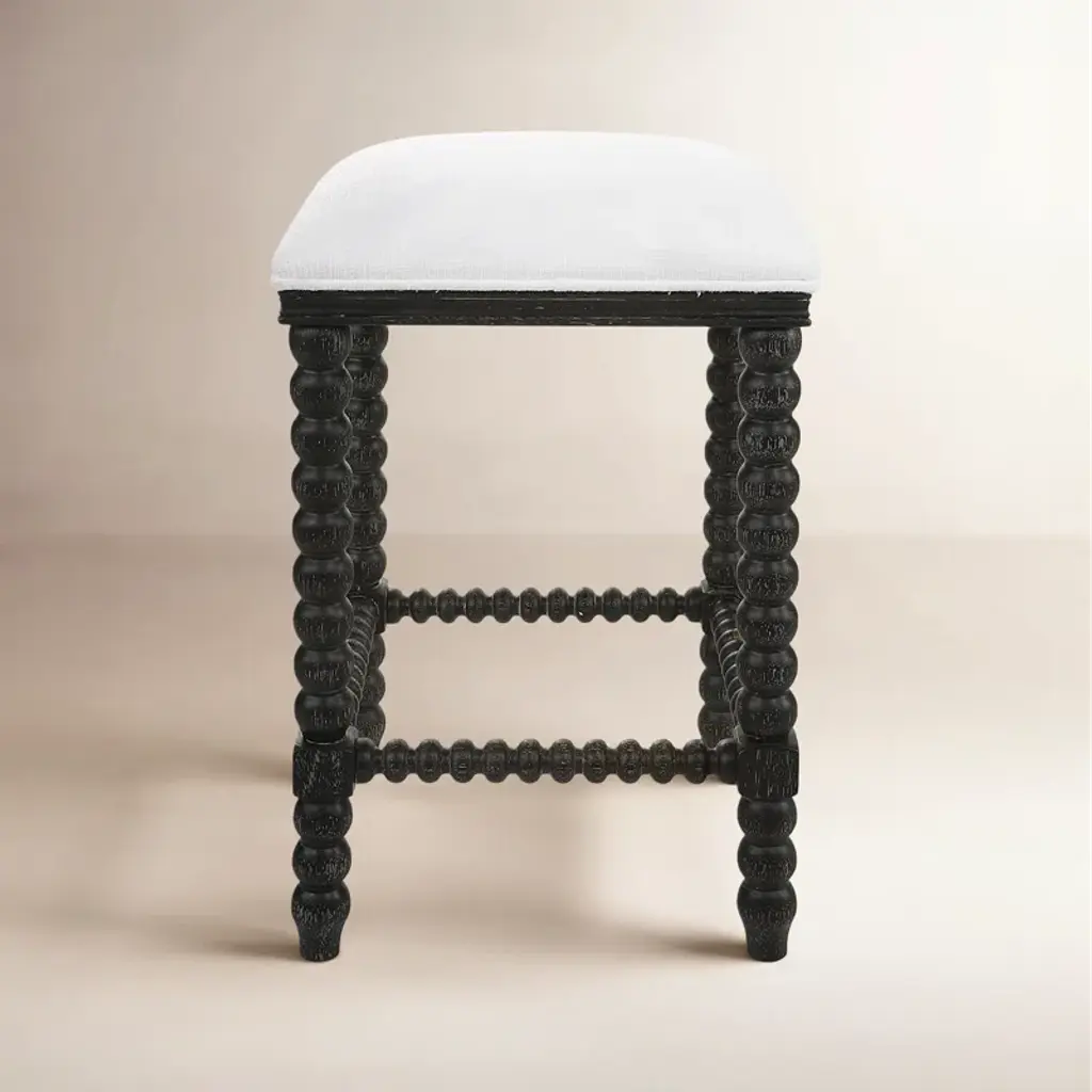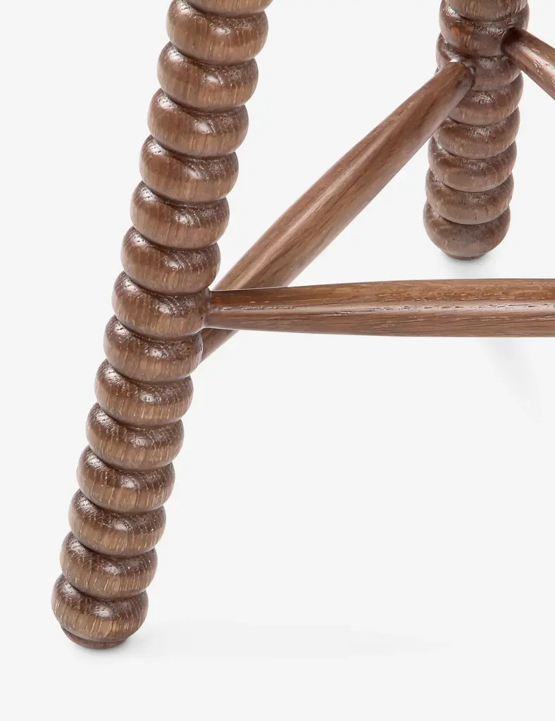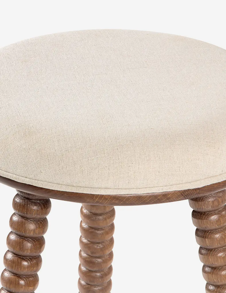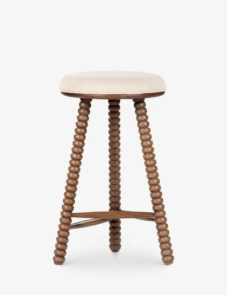 Turned wood legs define the look of the Dowd counter stool. The detail of the craftsmanship and natural grain evokes a timeless feel that folds rustic warmth into modern decor. The plush cushion is upholstered in a strong, natural fiber blend for everyday comfort.