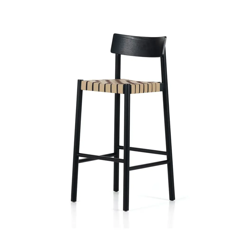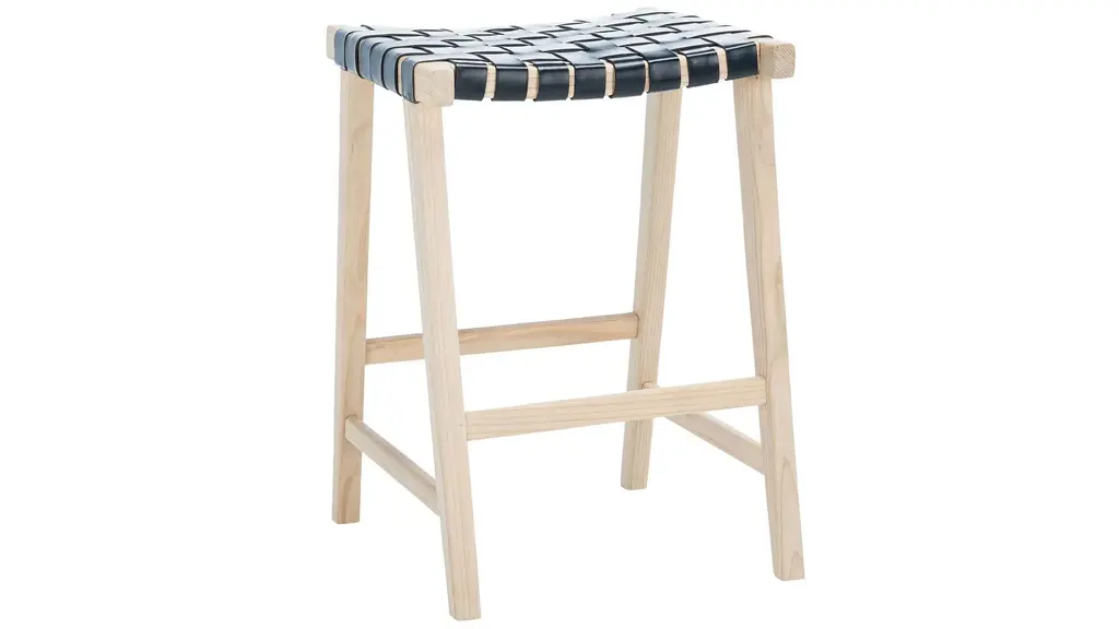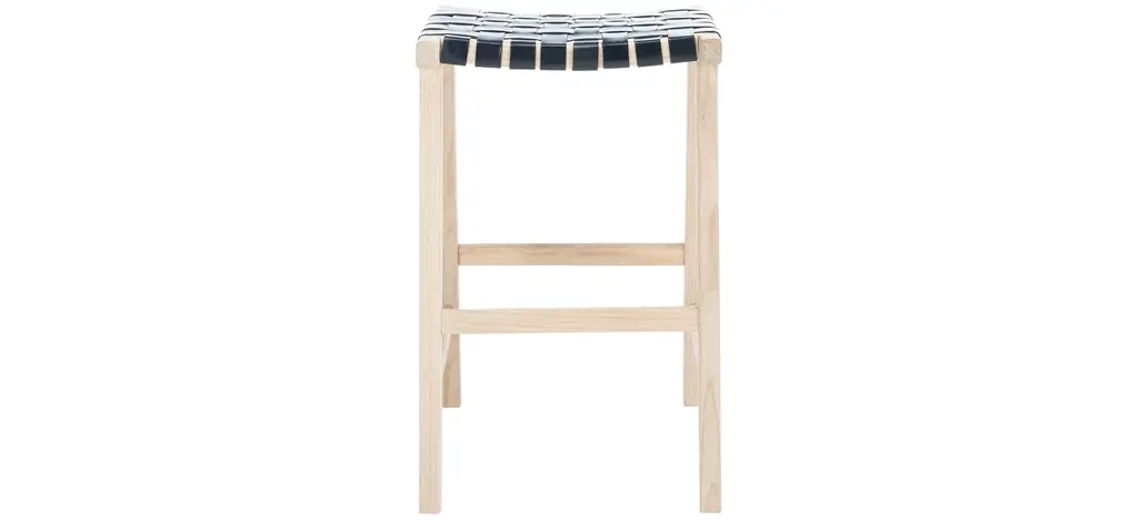 This Dylan Rectangle Counter Stool overflows with airy contemporary charm, perfect for giving high style seating areas a touch of coastal ambiance. Dylan's black woven leather seat provides beautiful decorative contrast to its natural sungkai wood frame while complementing its chic open geometry.