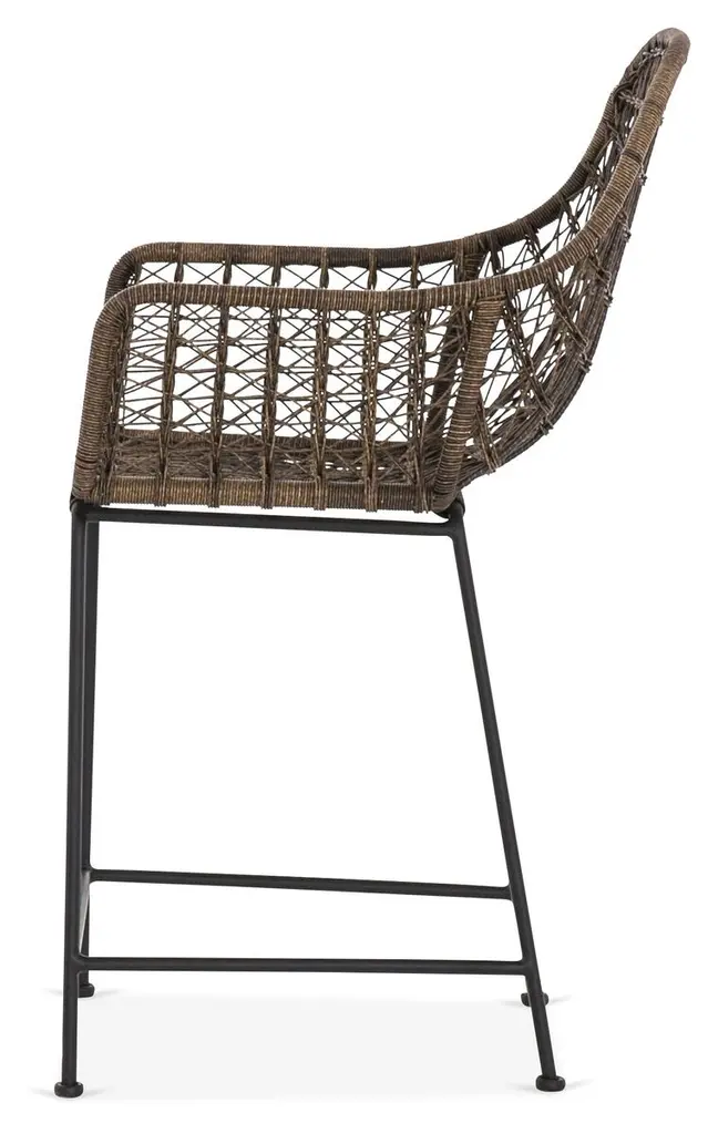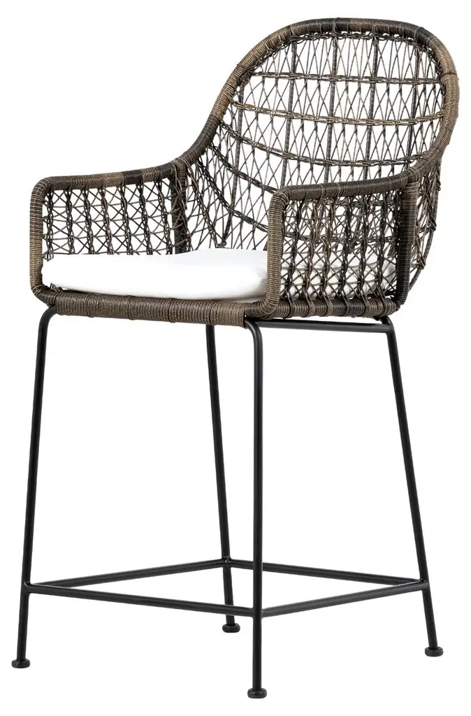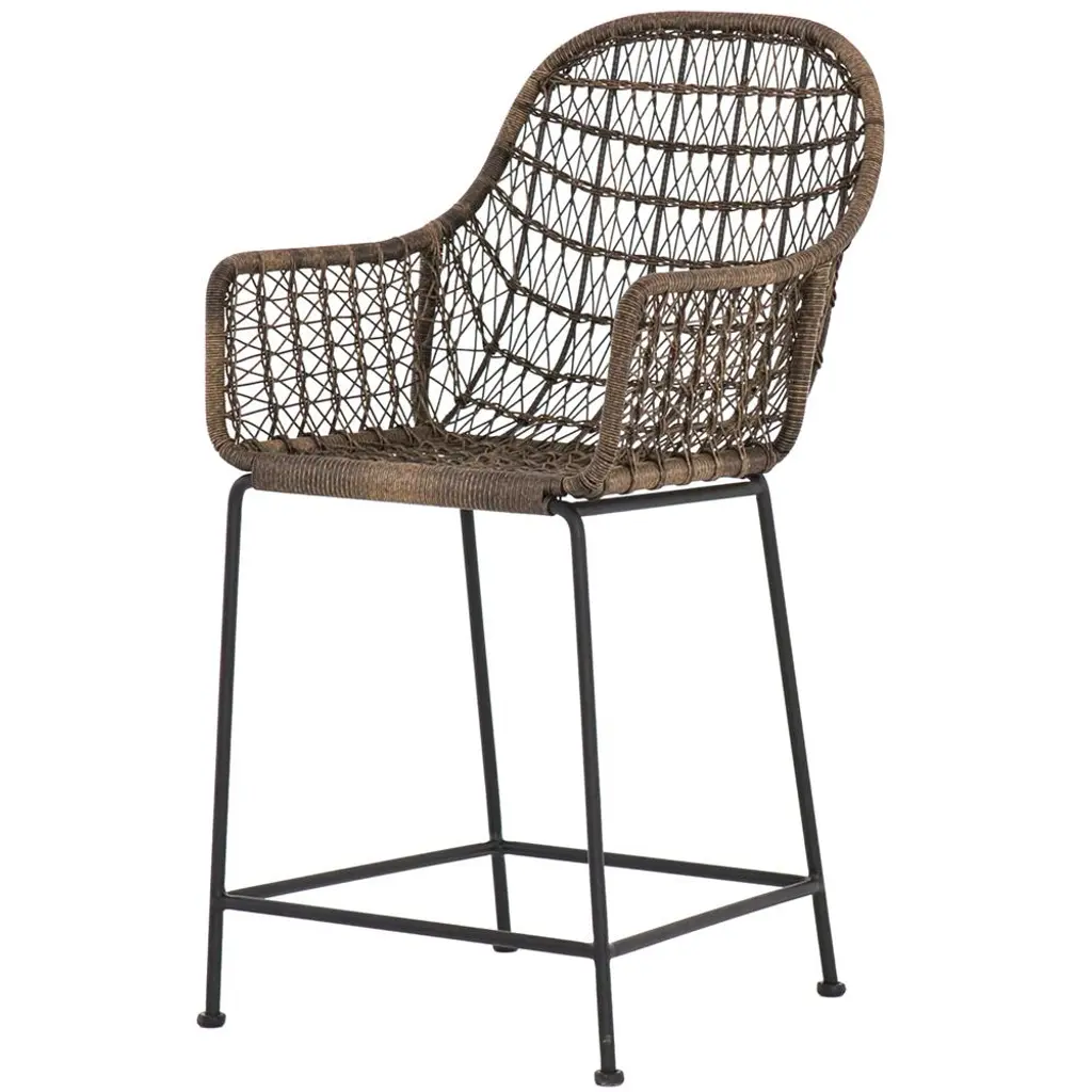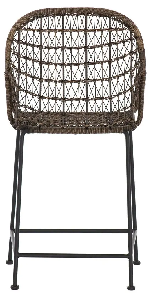 Designed with a shapely silhouette, this all-weather counter stool is framed in iron with a synthetic wicker weave.
