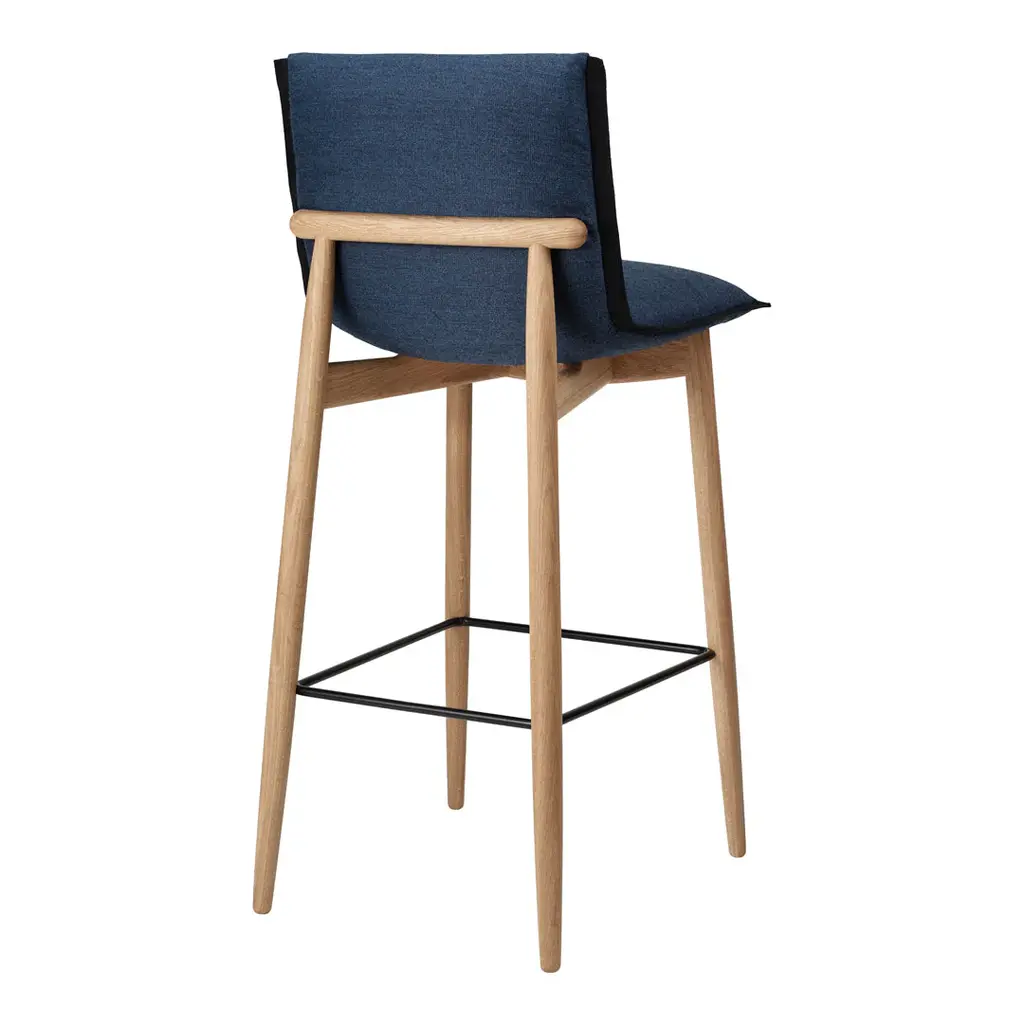 Contemporary aesthetics and a tradition for quality craftsmanship meet on the versatile and comfortable Embrace Bar Stool, designed for Carl Hansen & Son by EOOS.