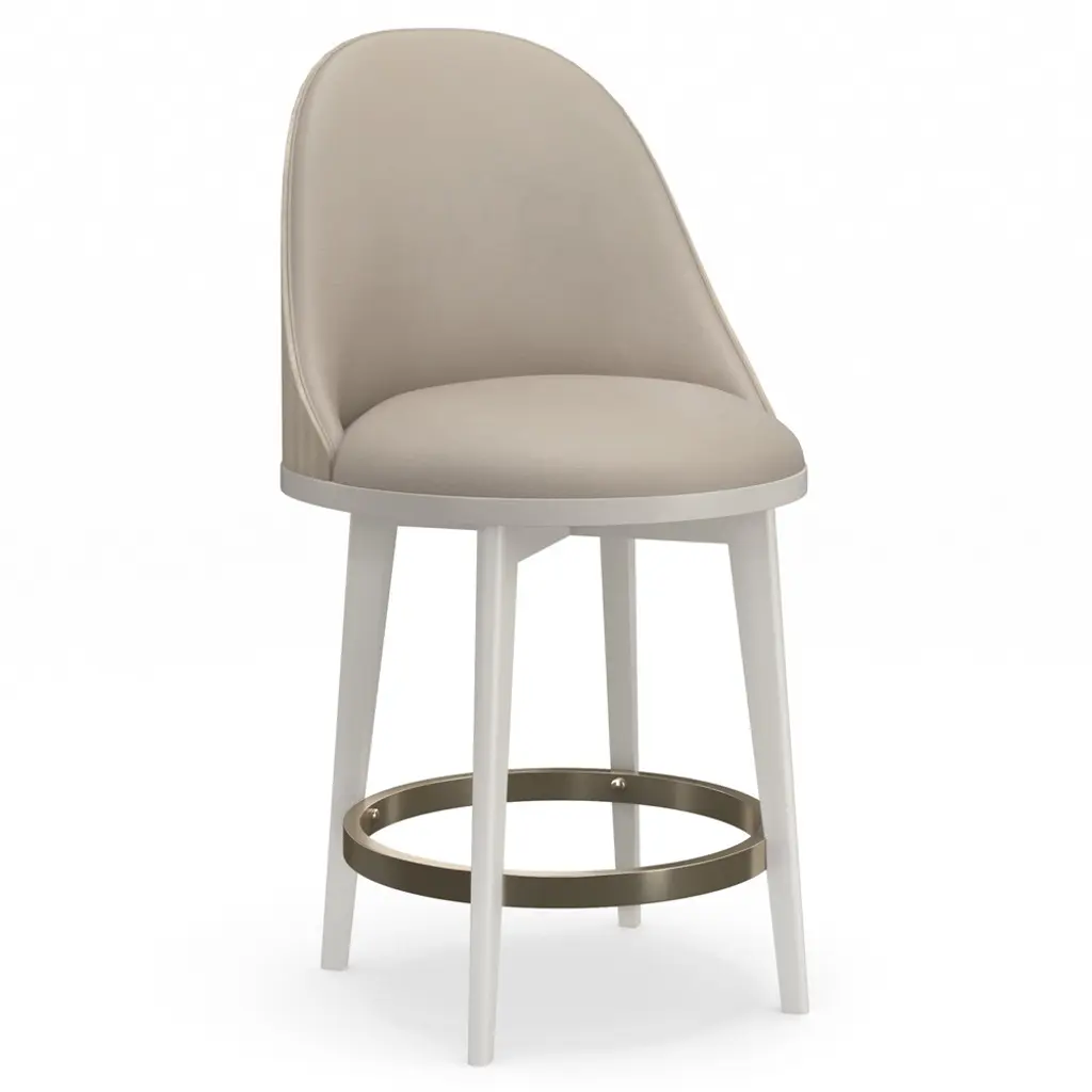 Edram Modern Classic Beige Upholstered White Wood Counter Stool