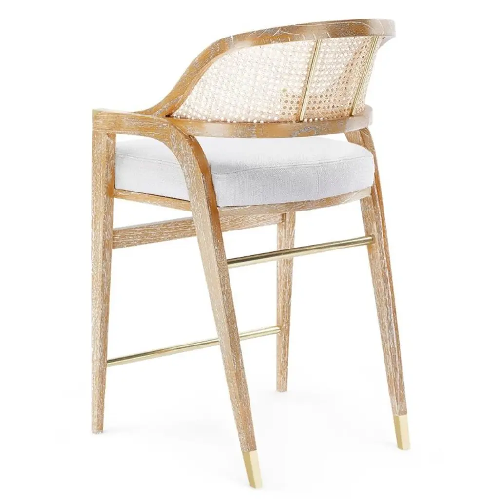 Edward Coastal White Linen Natural Mahogany Woven Cane Counter Stool