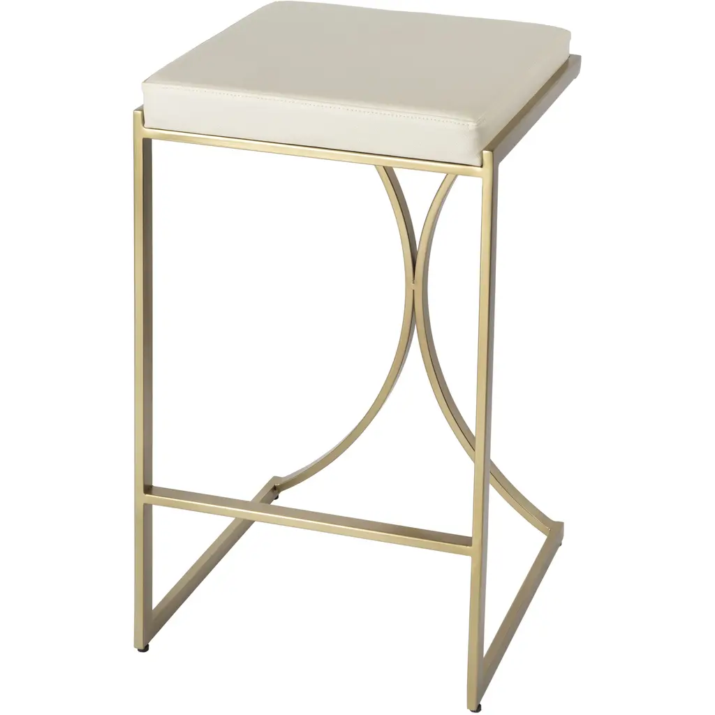 Eleanor Hollywood Regency White Performance Brushed Gold Frame Counter Stool