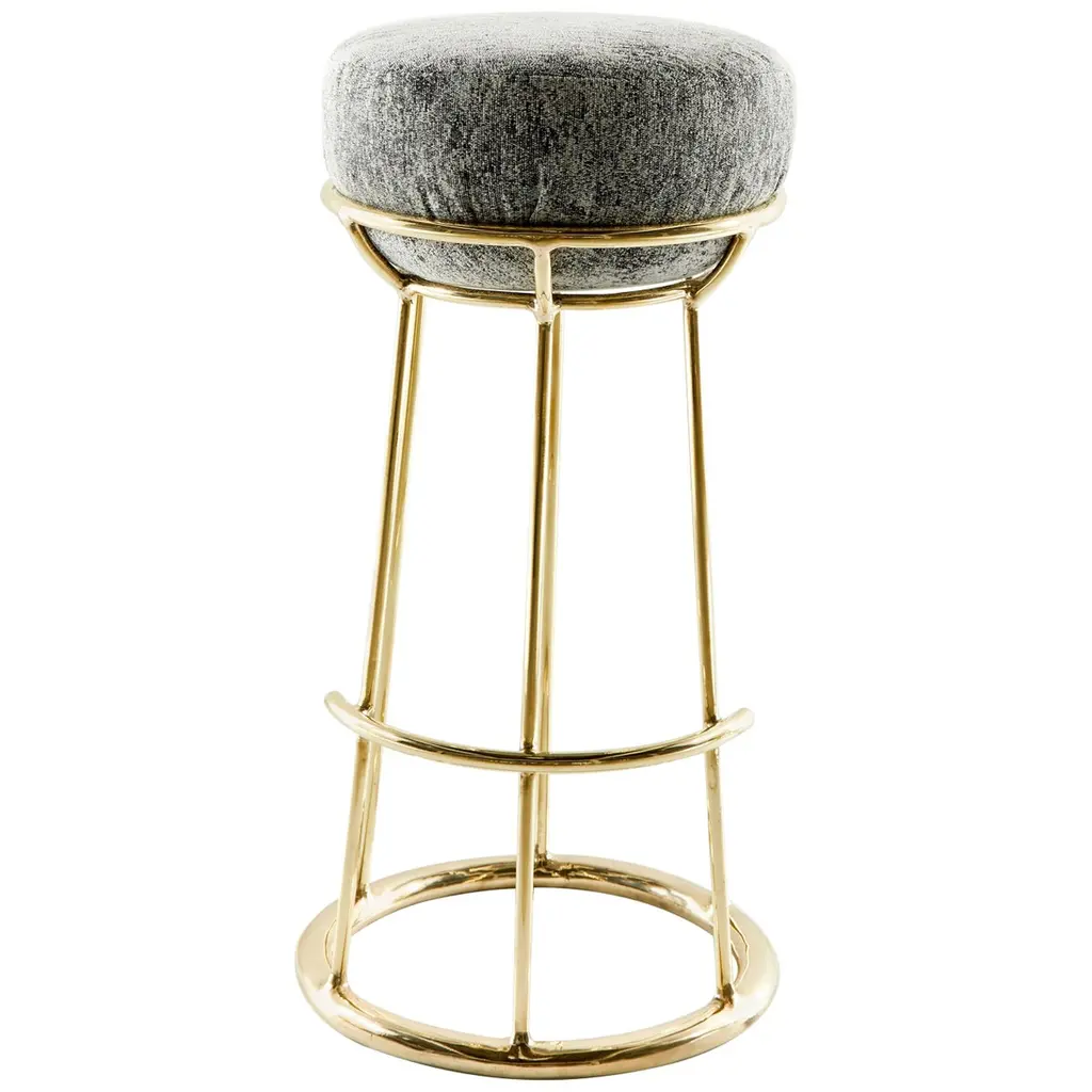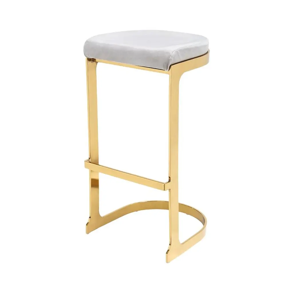 The Eleanor counter stool brings understated glamor to your kitchen. Its streamlined metal frame has a brushed gold finish and features a footrest and dynamic curved base. The crisp white seat is upholstered in a high-performance fabric, which repels moisture and resists stains.