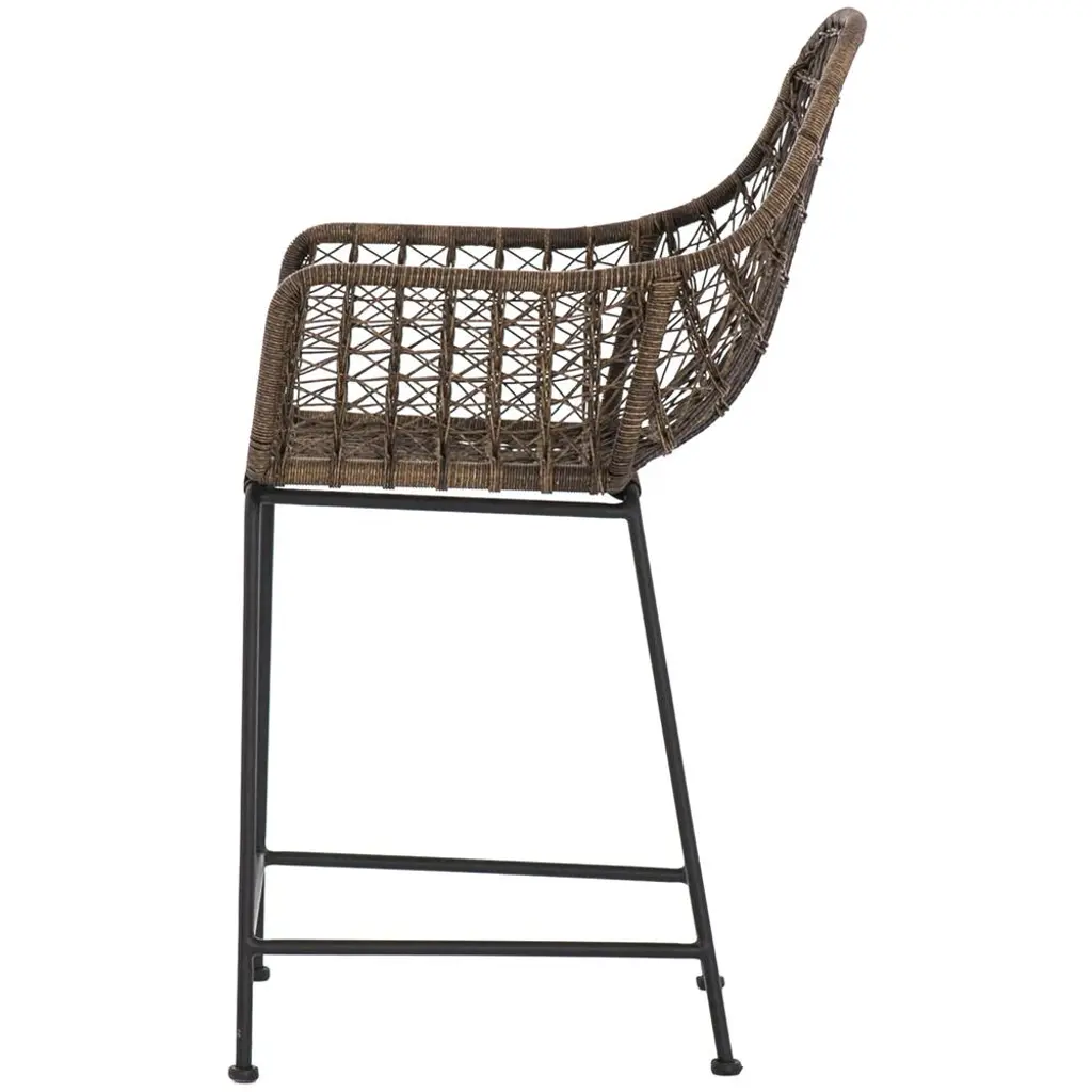 Elena Coastal Beach Dark Brown Wicker Iron Frame Outdoor Counter Stool