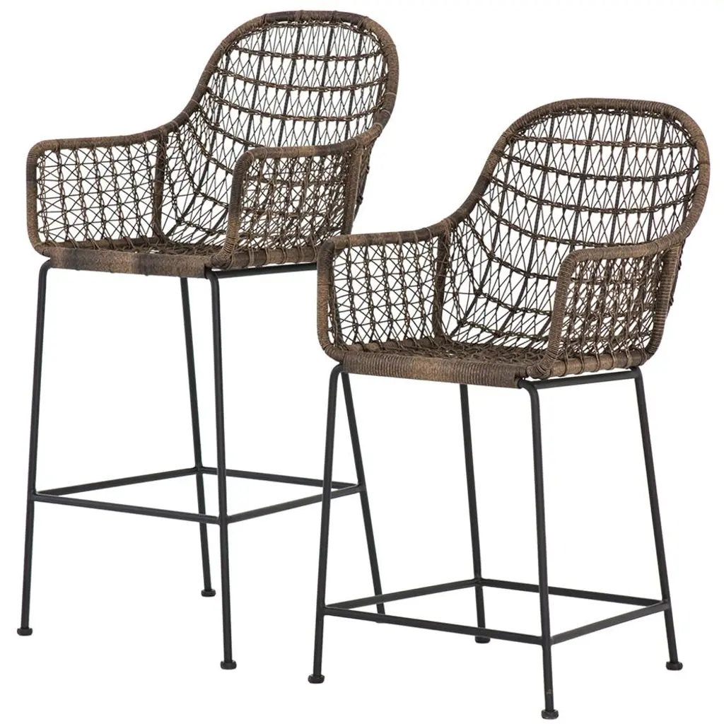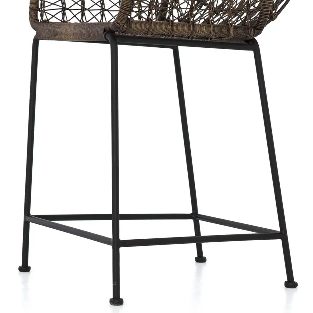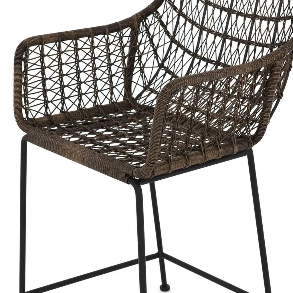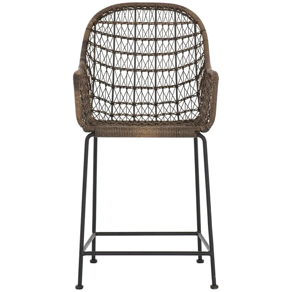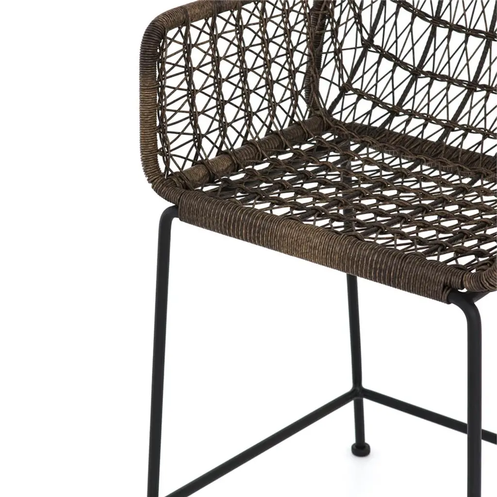 Whether styled indoors or out, the Elena counter stool highlights the best of modern coastal design. Finished in distressed brown, the all-weather wicker weave seat features a gently sloped back. Its durable iron base is finished in black.