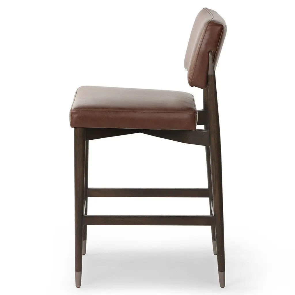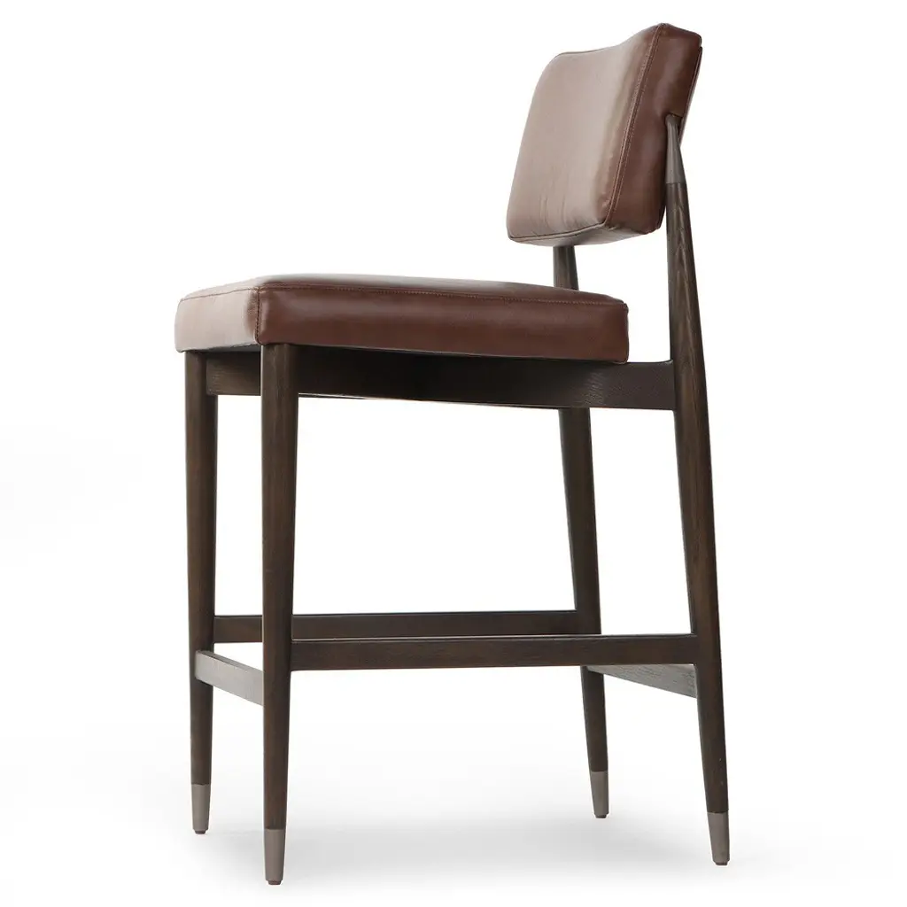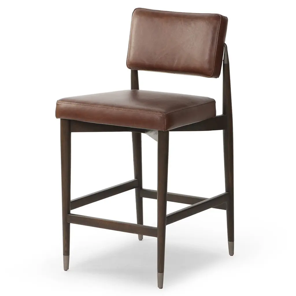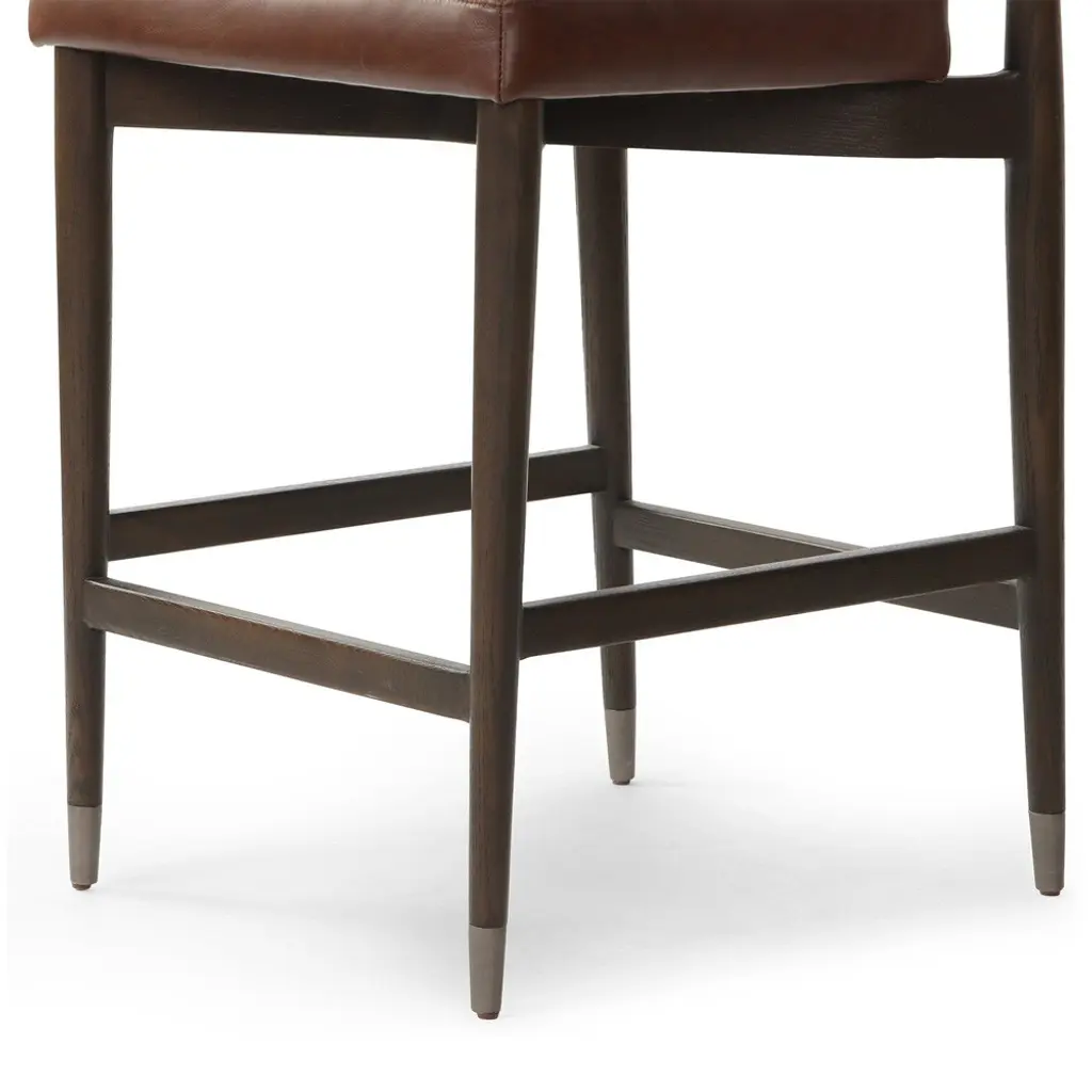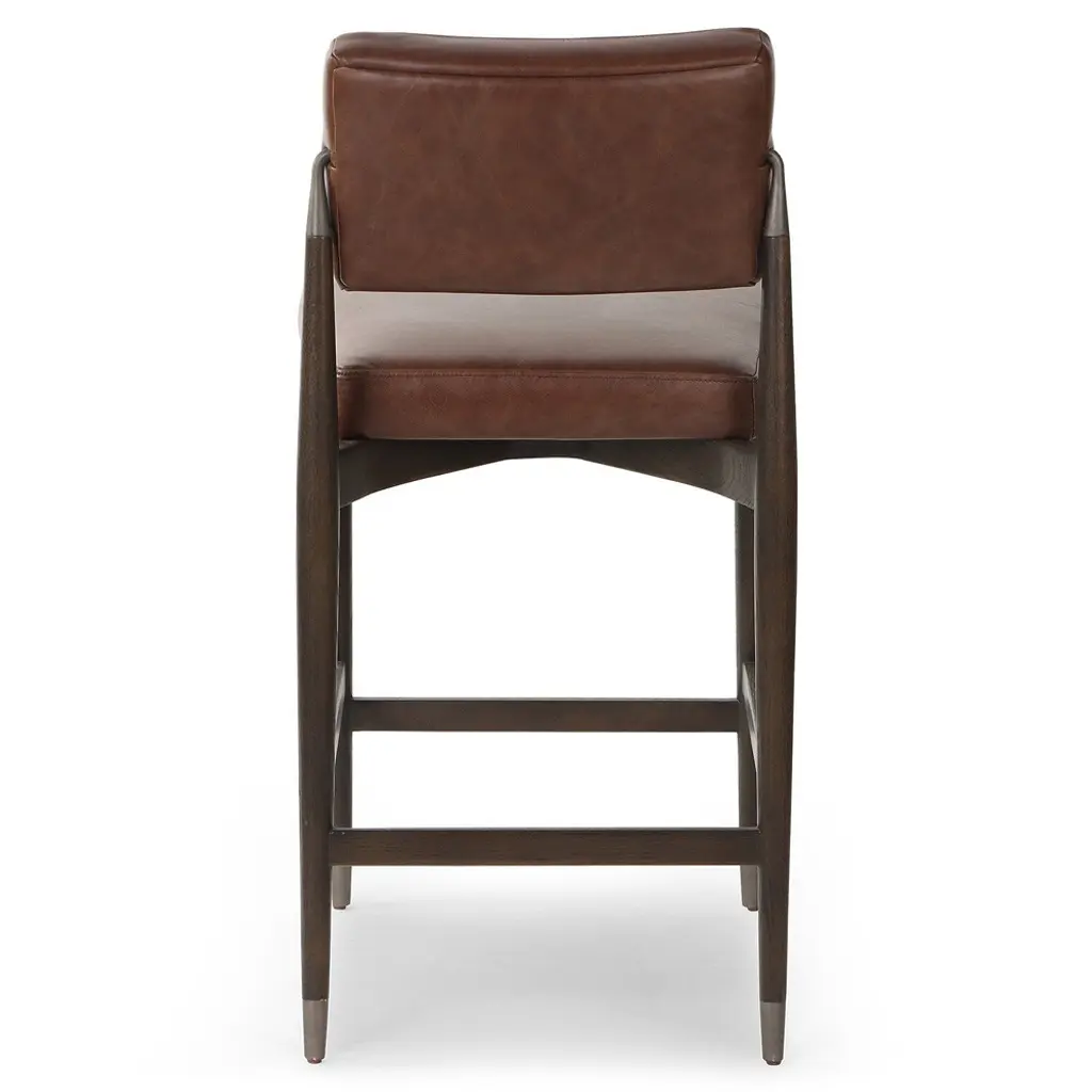 Eli Rustic Lodge Brown Leather Oak Wood Counter Stool