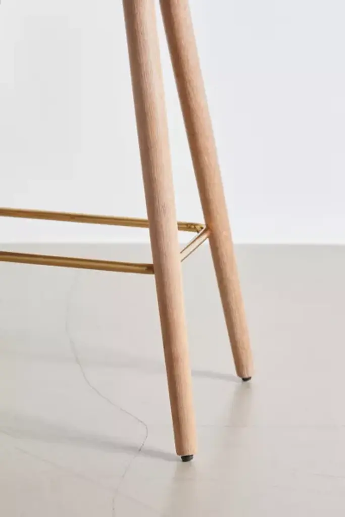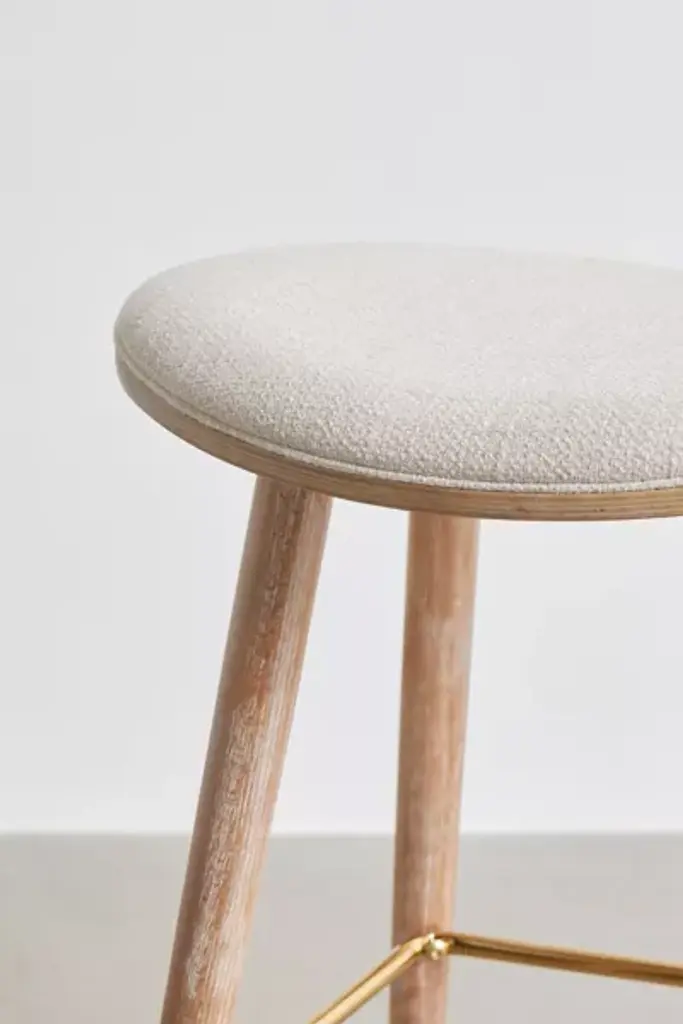 Modern minimal set of upholstered stools in a comfy backless silhouette. Set atop tapered wooden legs that reach fixed counter height. Set of two stools. **Features** \- Modern stool set \- Upholstered allover with a backless silhouette \- Fixed counter height \- Assembly required **Content + Care** \- Set of 2 \- Assembly required – instructions and hardware included \- Polyester, steel, wood \- Spot clean \- Imported **Size** \- Dimensions: 21"l x 16.75"w x 25"h \- Seat depth: 14.25" \- Inside seat width: 21" \- Seat height: 25" \- Seat to footrest: 16" \- Leg height: 22" \- Clearance: 22" \- Weight: 10lbs \- Shipping dimensions: 26"x10"x16" \- Shipping weight: 26lbs