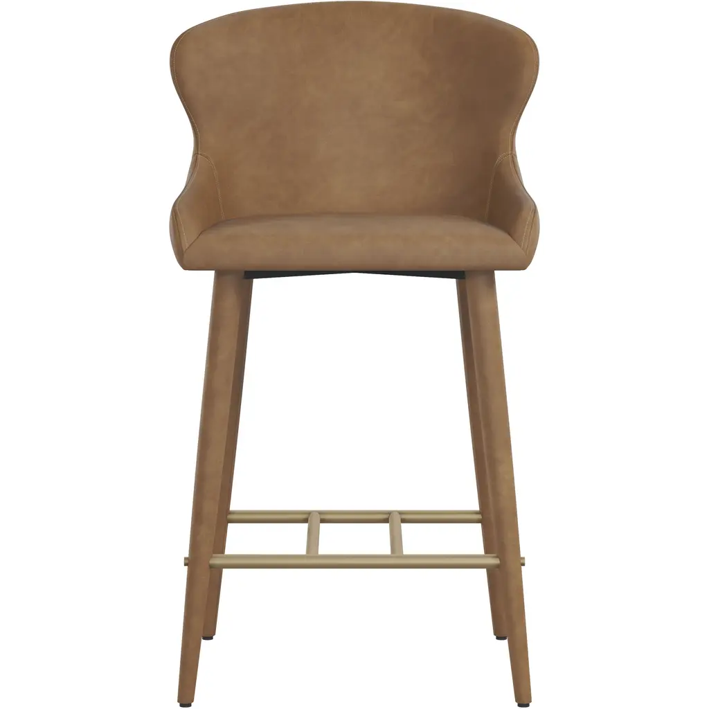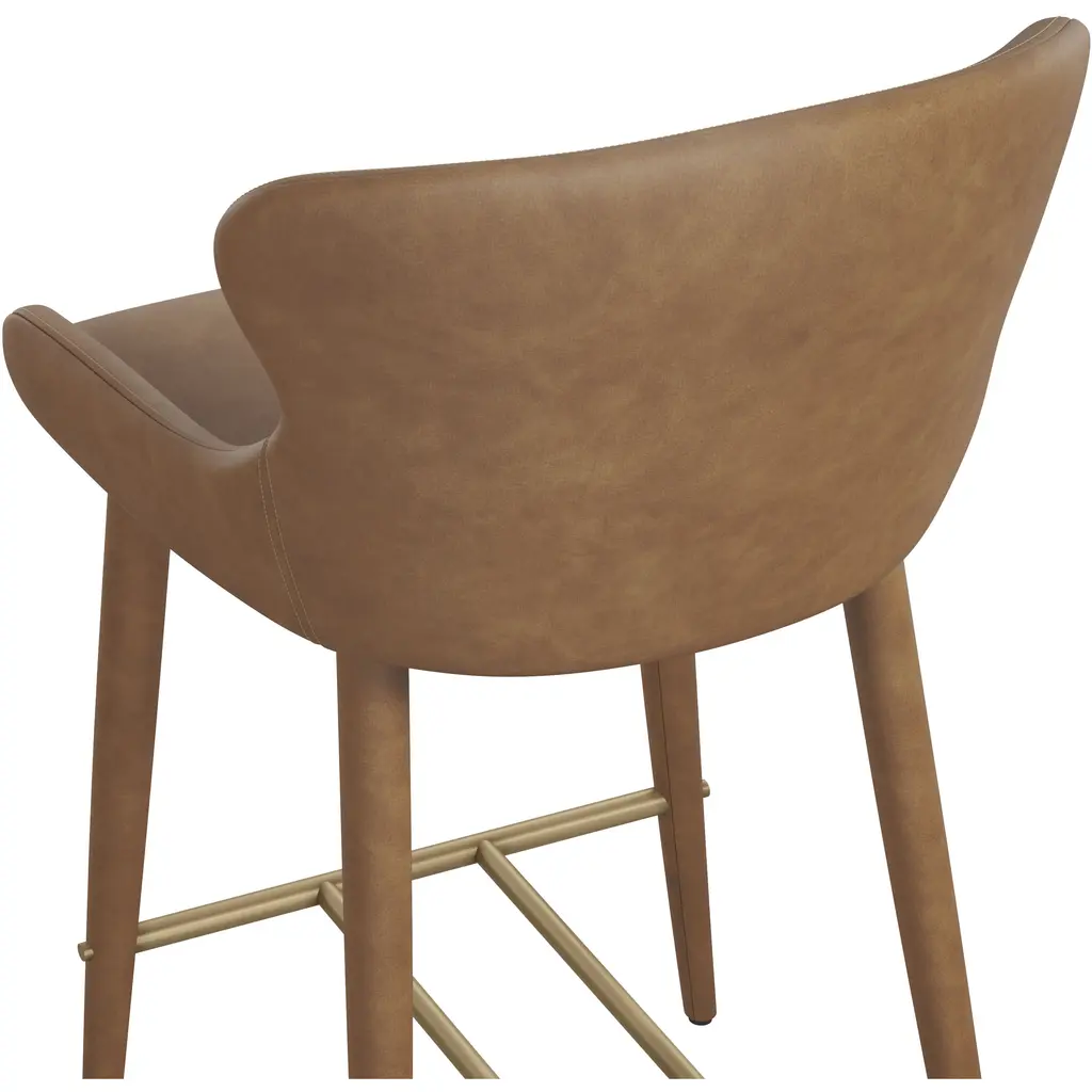 A gorgeous counter stool that features a sleek and minimal profile. Stylishly designed with tone-on-tone colours, this chair is stocked in milliken cognac faux leather and completed with metal upholstered legs.