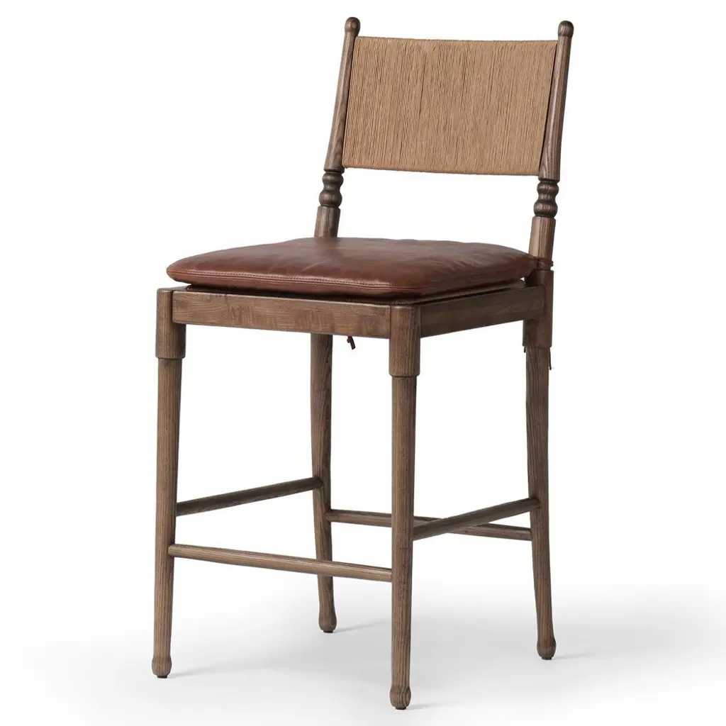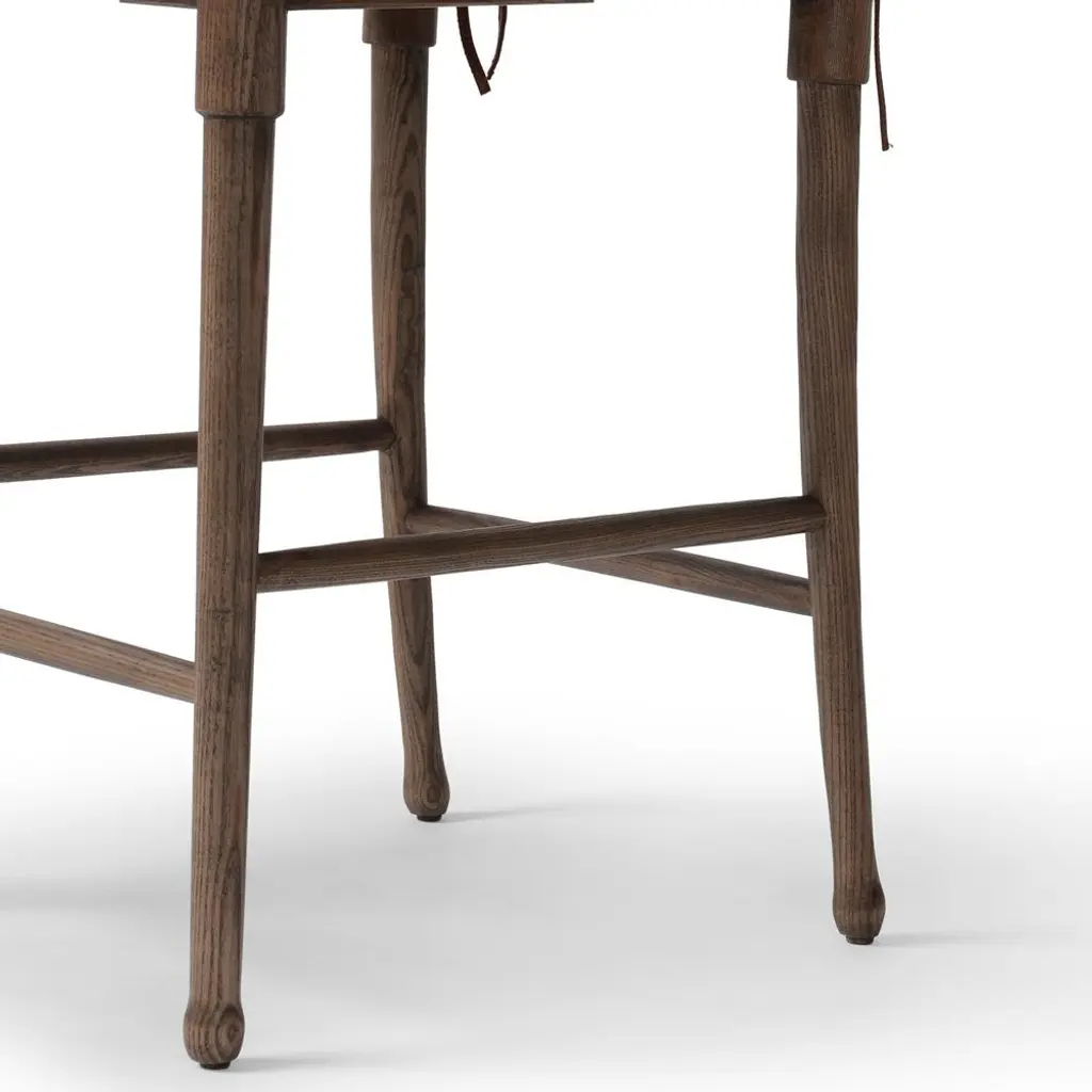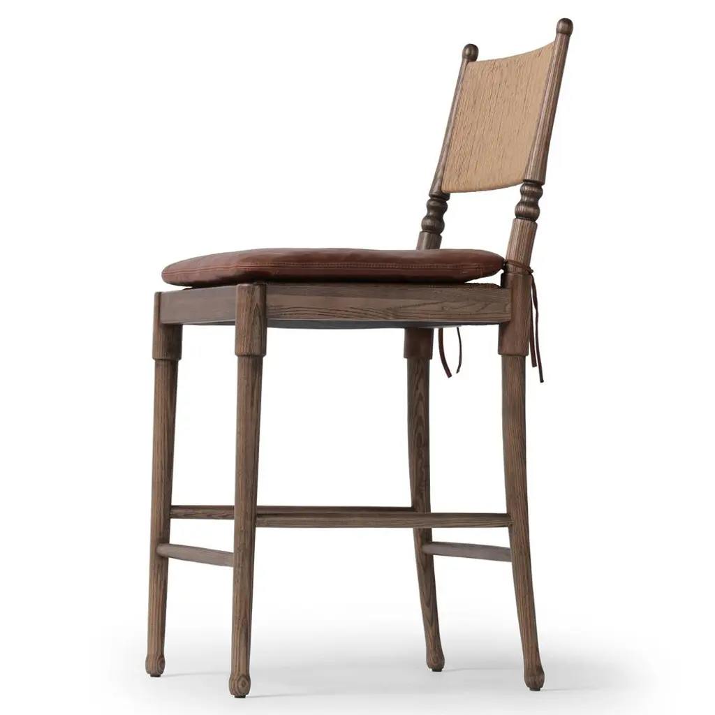 A design collaboration by Amber Lewis and Four Hands.Classic meets current. Simplified turn shaping meets subtly curved legs to elevate a clean, traditional frame of walnut-finished solid ash. A brown top-grain leather cushion complements a back rest of textural paper cord.