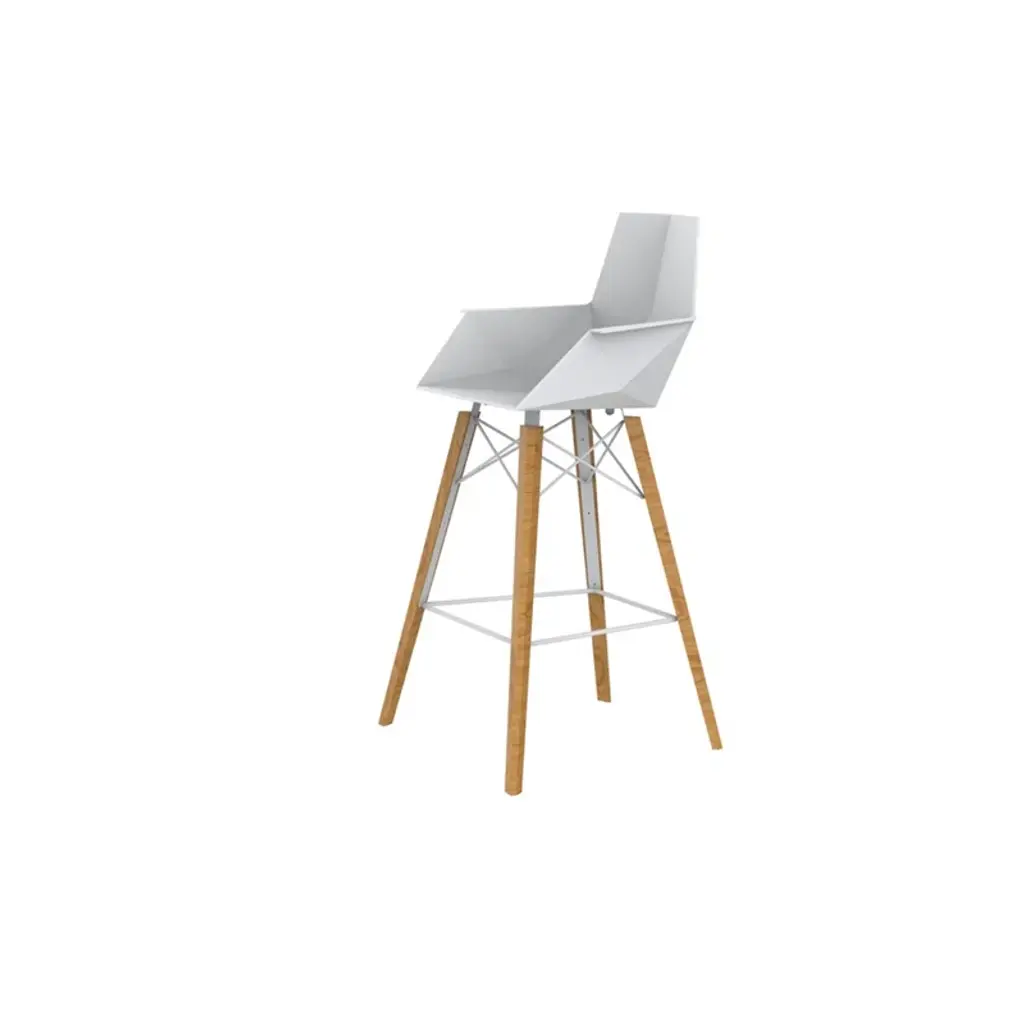 With a warmer, more cheerful, and original design, Vondom adds wood finishes to the legs of the classic Faz chair and bar stool. As well as the bases of the table in its three types. A reinterpretation that reinforces the inspiration of the collection based on minerals and their role in nature. The result is pieces imbued with a spirit of casual luxury, without departing from the ergonomic and elegant architectural forms of the rest of the collection. Pieces that suit interior areas like lounges, dining rooms, and much more. Available in a variety of colors. Faz is a collection that continues to grow, and is taking Vondom's design to a new territory.