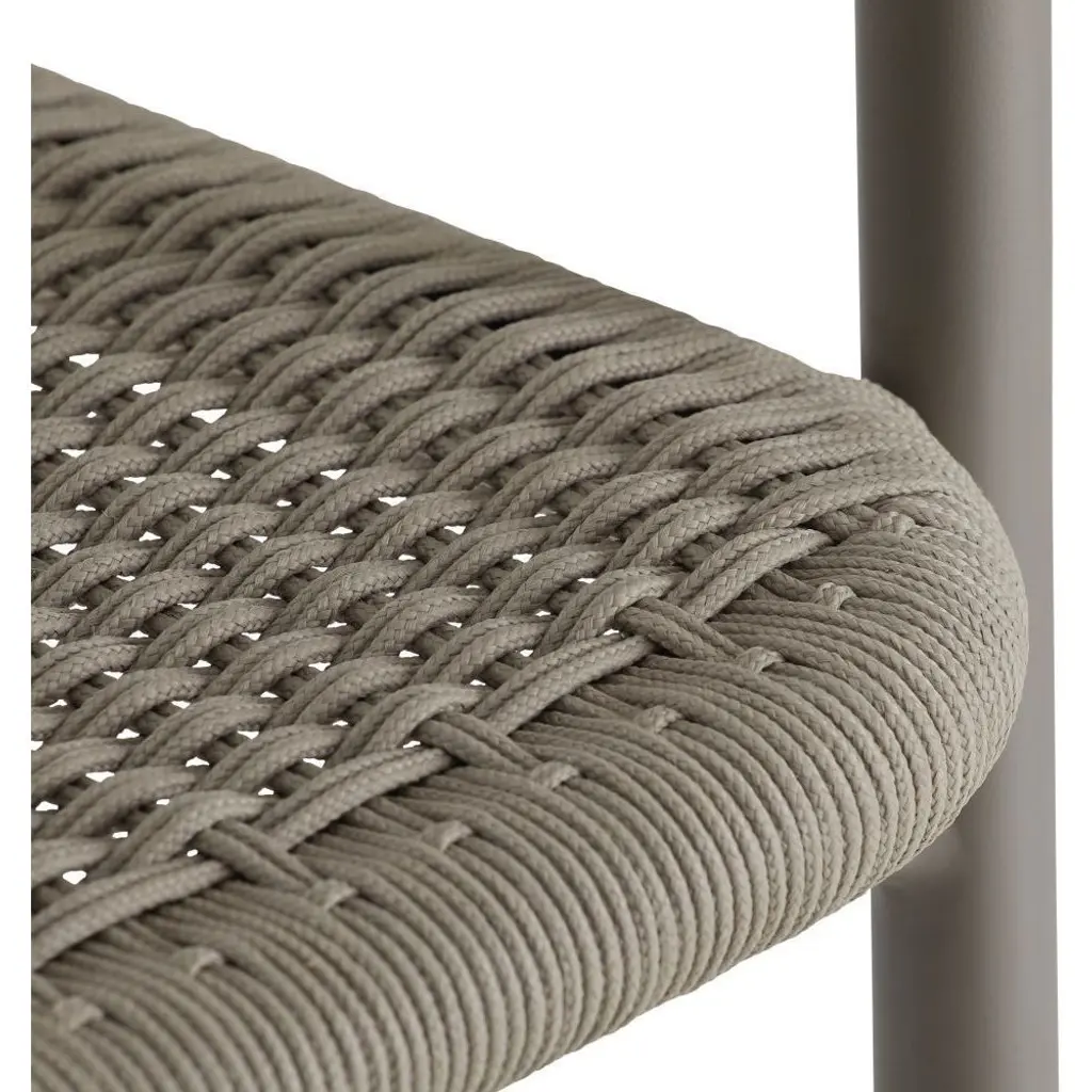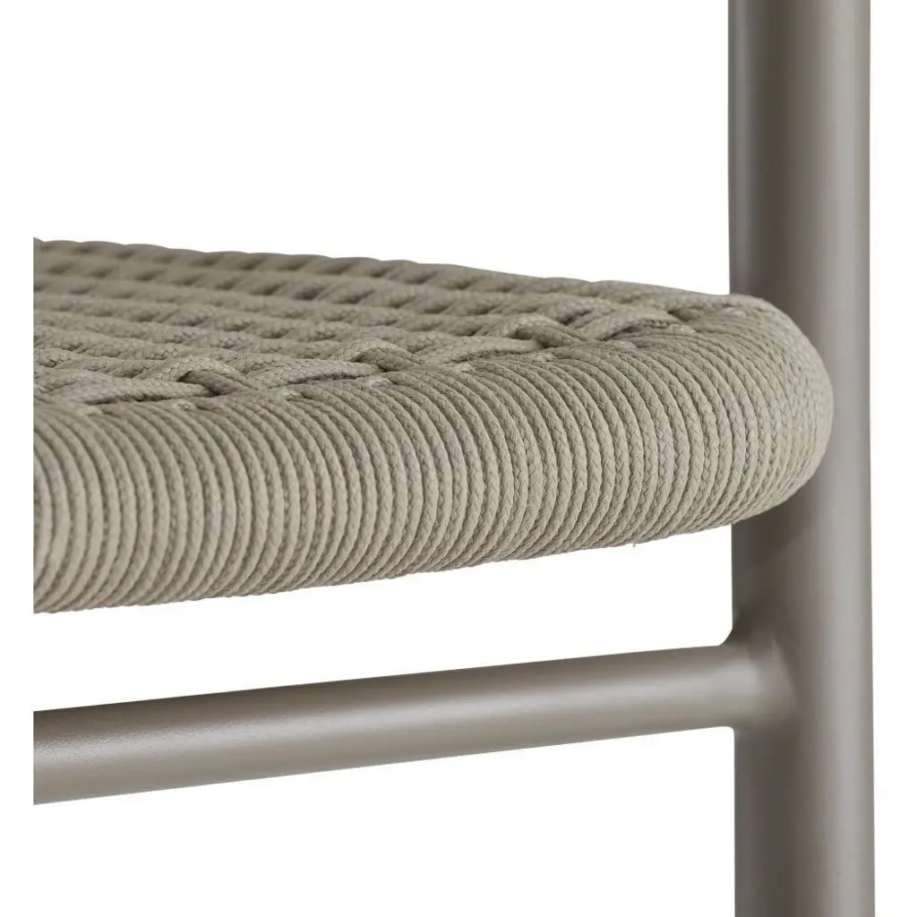 Wrapped woven details elevate the simple, bistro-style body of the Feller. The graphic nature of its aluminum form is highlighted with a tone-on-tone gray powder coat. Finished with a sturdy fossil synthetic rope seat, this contemporary counter stool makes a stylish addition to any outdoor setting.