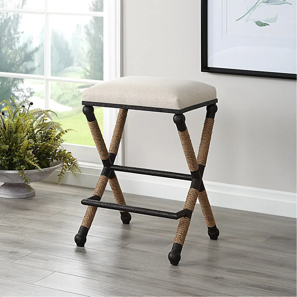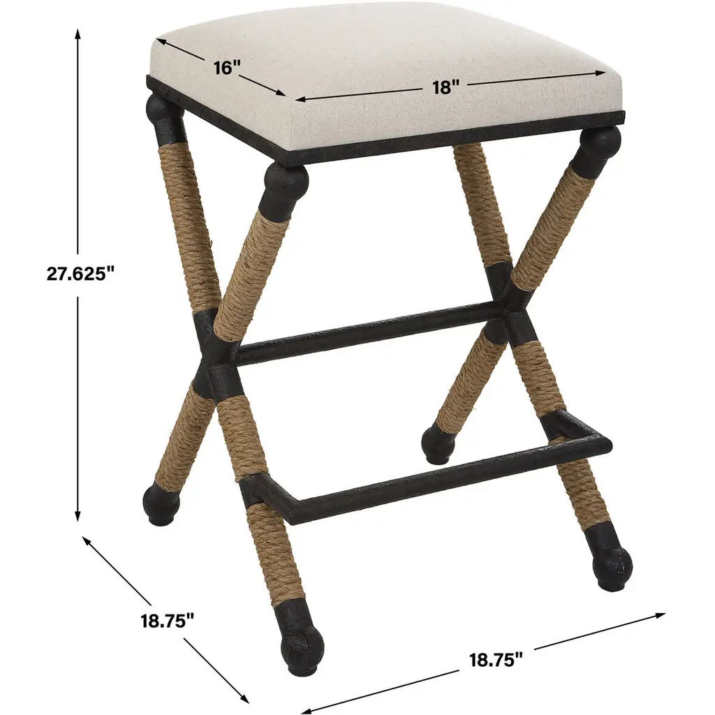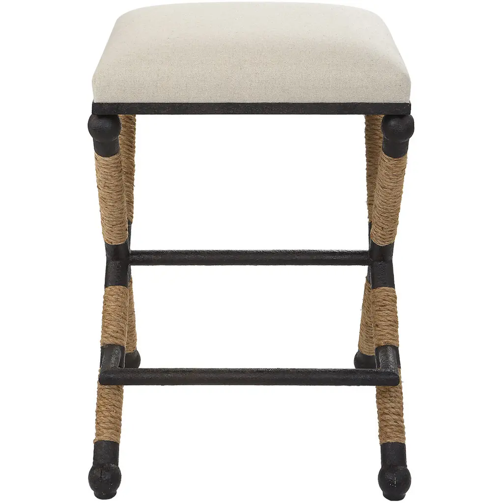 Firth 28 Inch Rustic Iron And Natural Fiber Rope With Oatmeal Counter Stool