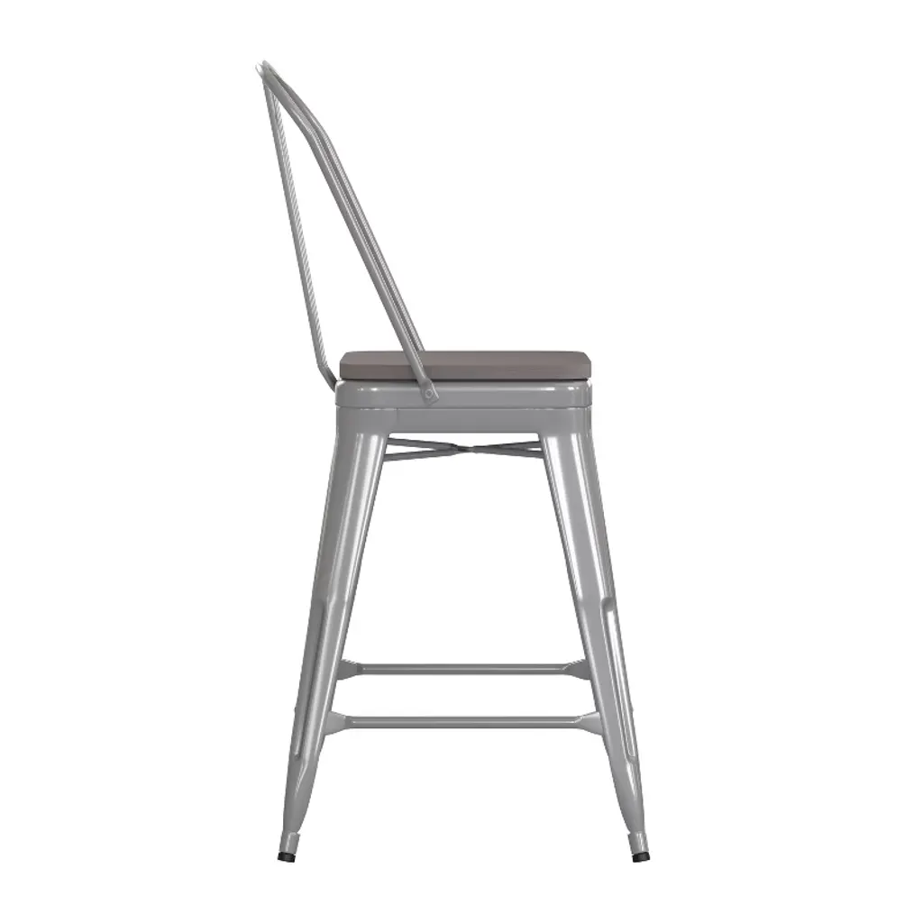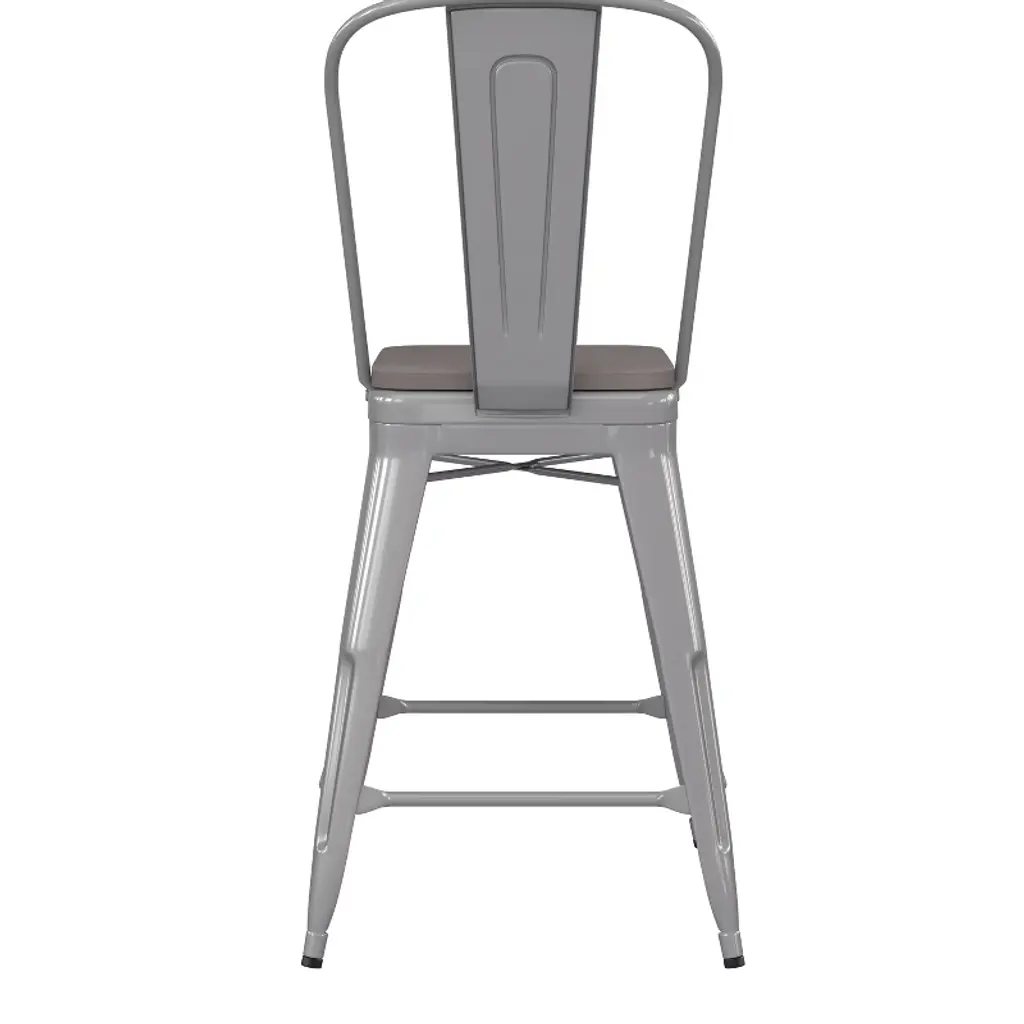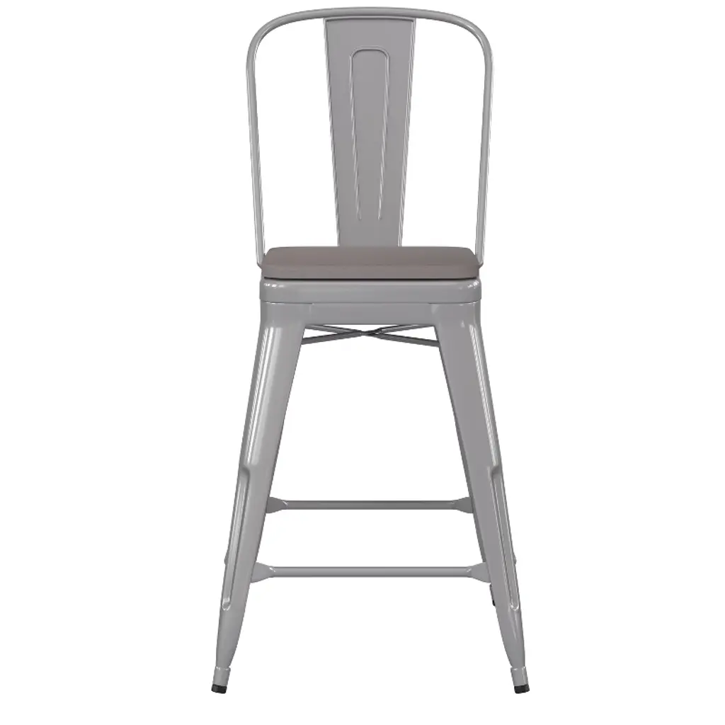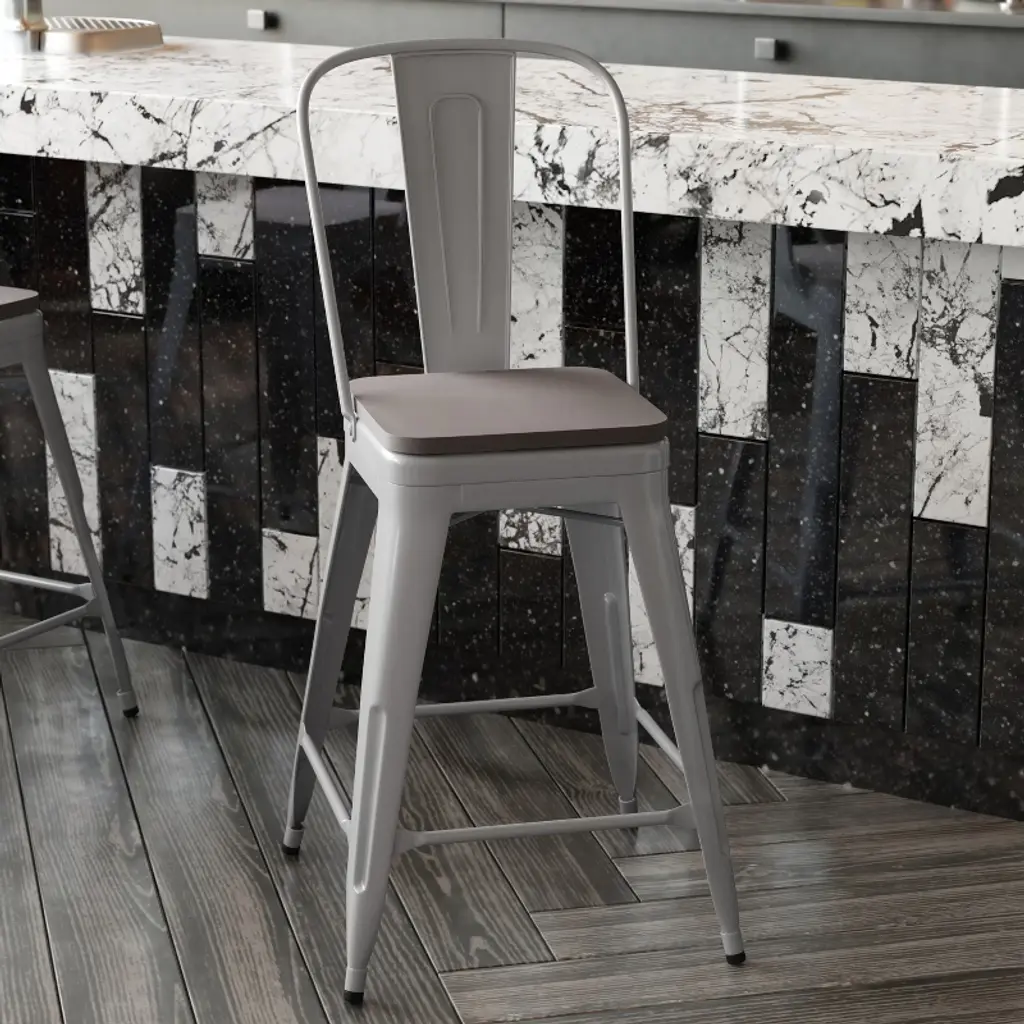 Flash Furniture All-weather Commercial Counter Stool With Removable Back/poly Seat-silver/gray