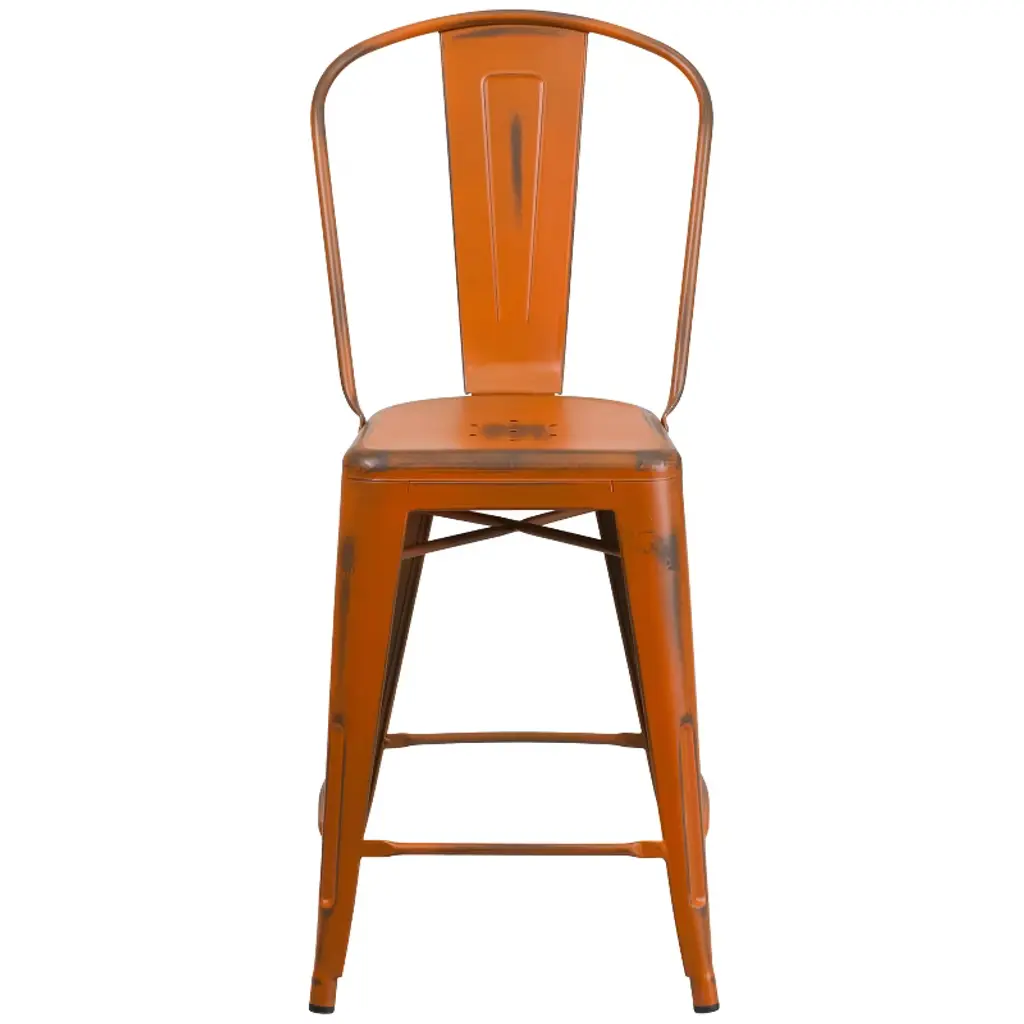 Flash Furniture Commercial Grade 24" High Distressed Orange Metal Indoor-outdoor Counter Height Stool With Back