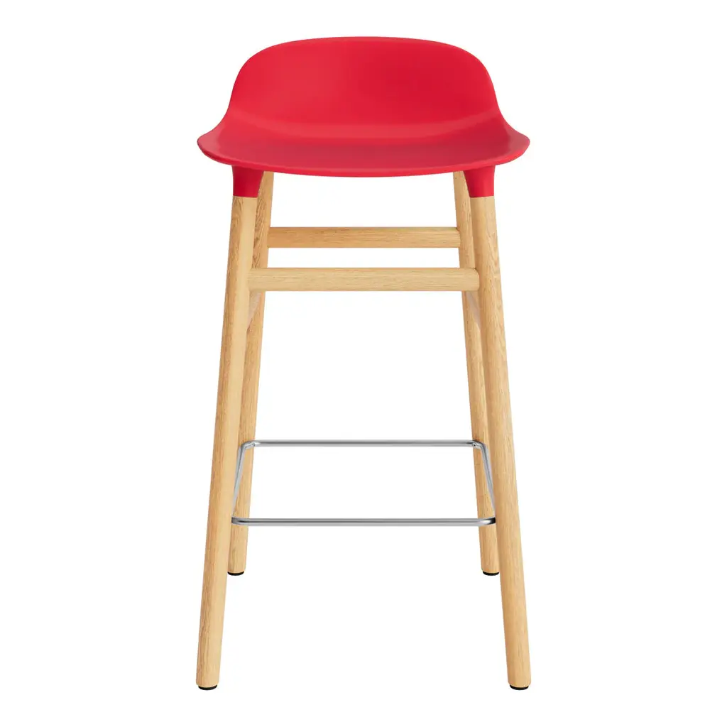 With the mission of creating a shell chair with a more unified look that would stand as one cohesive unit, Simon Legald has created the Form Chair for Normann Copenhagen. To achieve this seamless, integrated look, a new and innovative solution for gathering the seat with the legs has been developed. The curved plastic seat and frame of oak, walnut or steel are naturally integrated with the seat using a unique cup system. The plastic seat and wood or steel legs meet elegantly, accentuating the high quality craftsmanship and the simplicity of the Scandinavian furniture design. Form is a modern armchair with a minimalistic expression. *Note: As of June 2017, all Form counter stools with wooden legs will arrive with a steel frame support instead of the formerly used wooden support sticks.