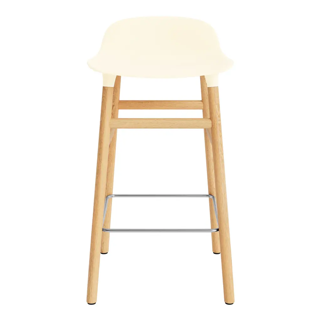 With the mission of creating a shell chair with a more unified look that would stand as one cohesive unit, Simon Legald has created the Form Chair for Normann Copenhagen. To achieve this seamless, integrated look, a new and innovative solution for gathering the seat with the legs has been developed. The curved plastic seat and frame of oak, walnut or steel are naturally integrated with the seat using a unique cup system. The plastic seat and wood or steel legs meet elegantly, accentuating the high quality craftsmanship and the simplicity of the Scandinavian furniture design. Form is a modern armchair with a minimalistic expression. *Note: As of June 2017, all Form counter stools with wooden legs will arrive with a steel frame support instead of the formerly used wooden support sticks.