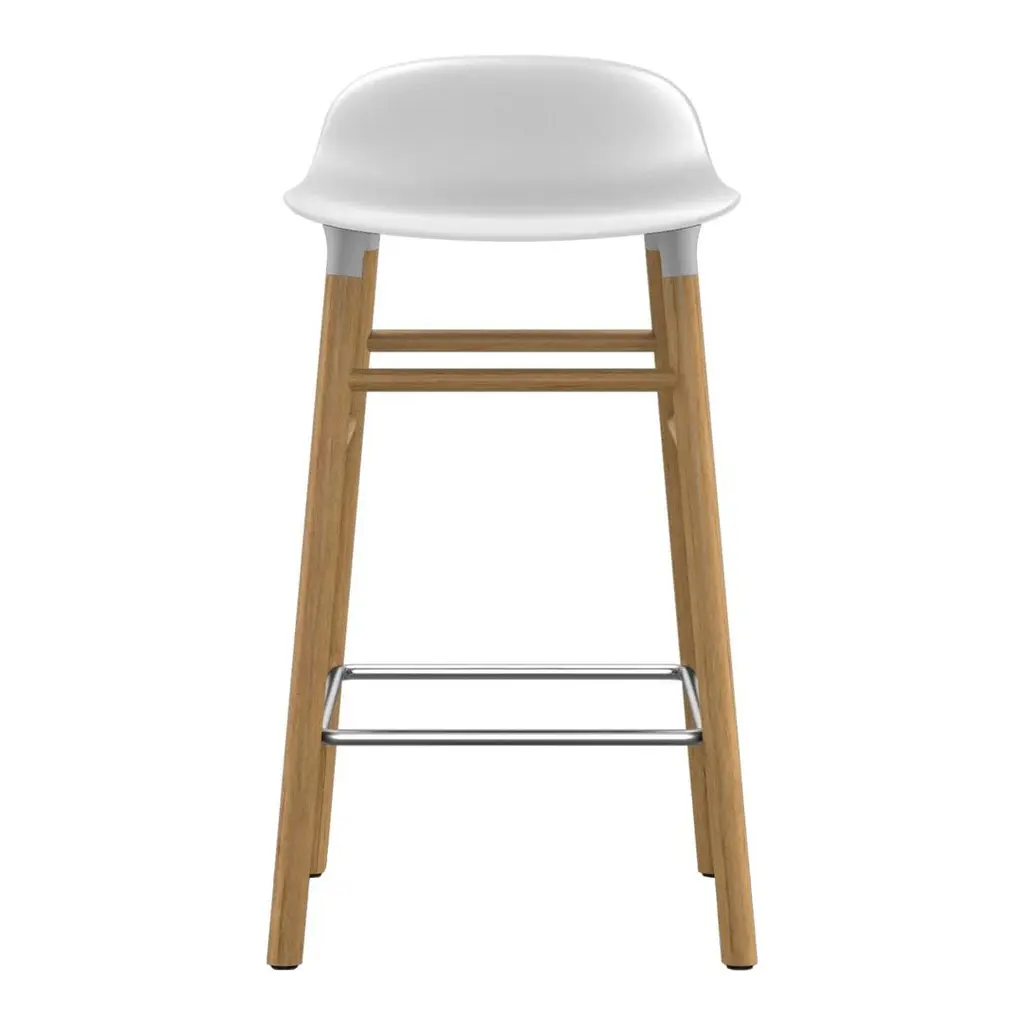 With the mission of creating a shell chair with a more unified look that would stand as one cohesive unit, Simon Legald has created the Form Chair for Normann Copenhagen. To achieve this seamless, integrated look, a new and innovative solution for gathering the seat with the legs has been developed. The curved plastic seat and frame of oak, walnut or steel are naturally integrated with the seat using a unique cup system. The plastic seat and wood or steel legs meet elegantly, accentuating the high quality craftsmanship and the simplicity of the Scandinavian furniture design. Form is a modern armchair with a minimalistic expression. *Note: As of June 2017, all Form counter stools with wooden legs will arrive with a steel frame support instead of the formerly used wooden support sticks.