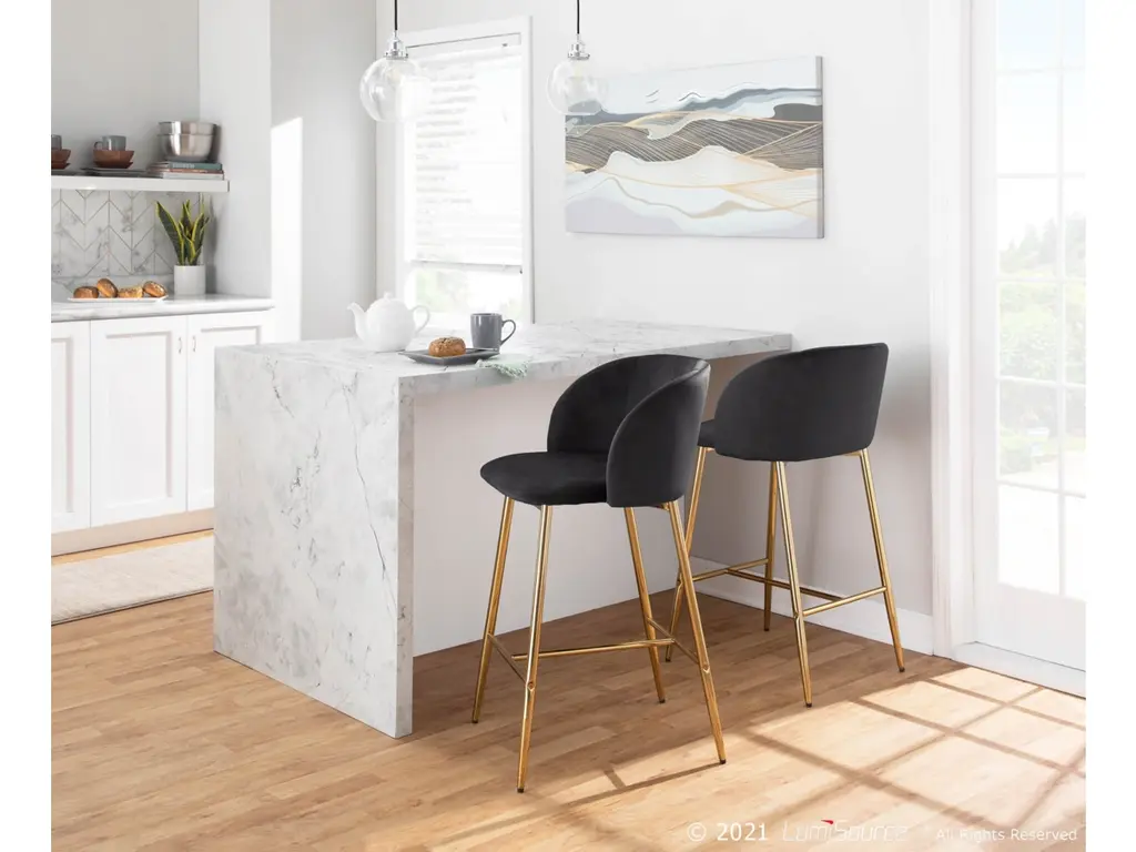 Surround your counter area or dining table with the beauty of the Fran Counter Stool by LumiSource. Featuring a sophisticated velvet upholstery that will tie in perfectly with your contemporary decor, this ultra-comfortable padded bucket seat is complemented by tapered legs. Available in a variety of color combinations, choose the color that ties in with your decor!