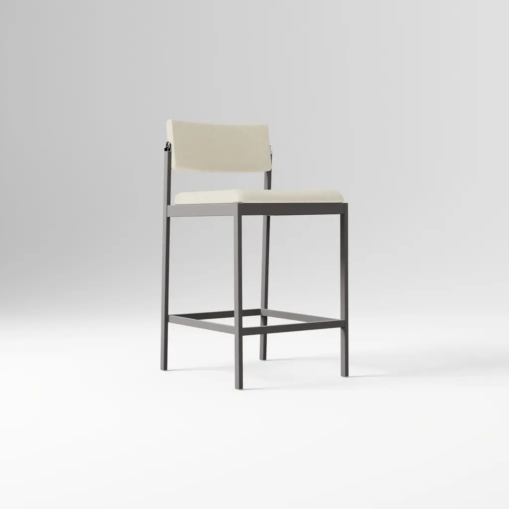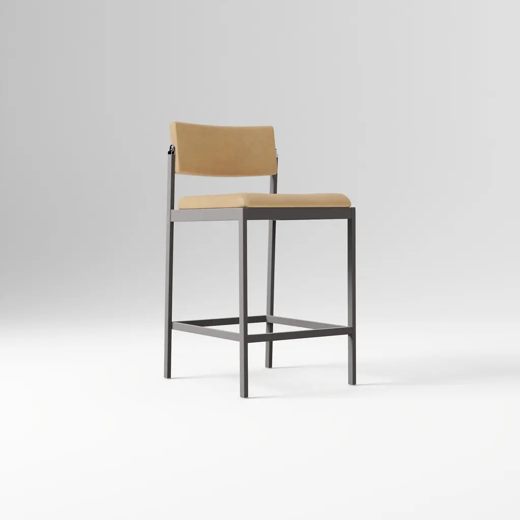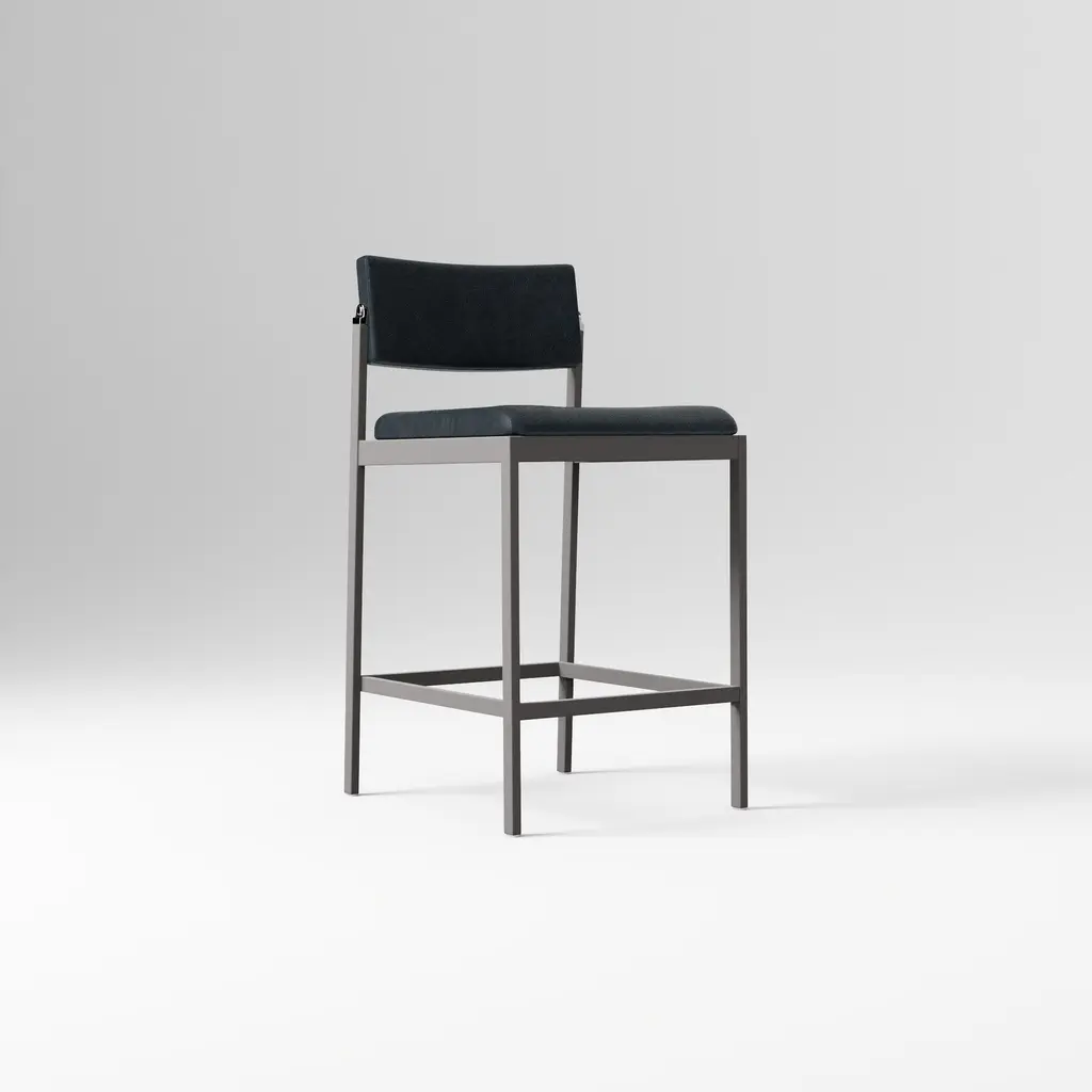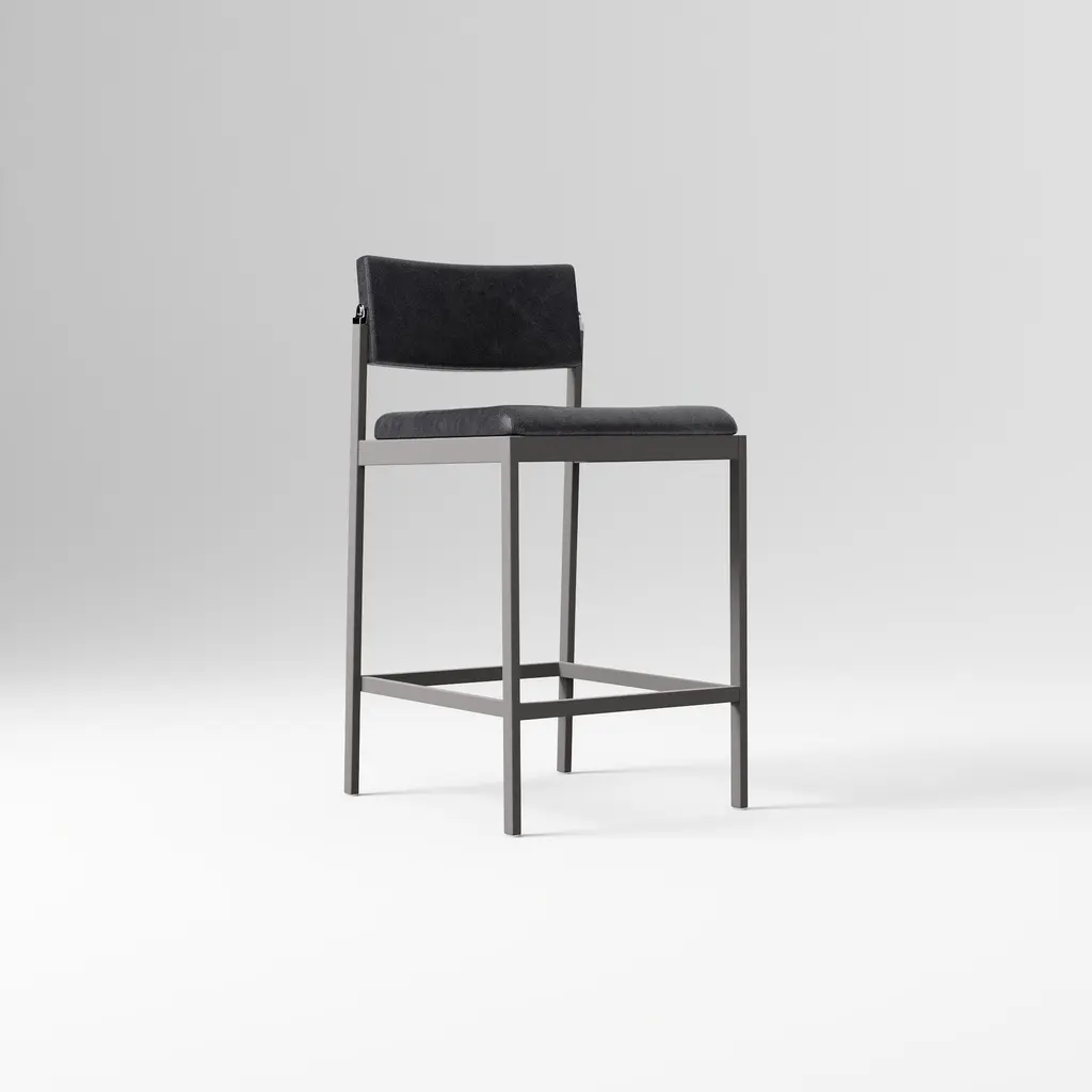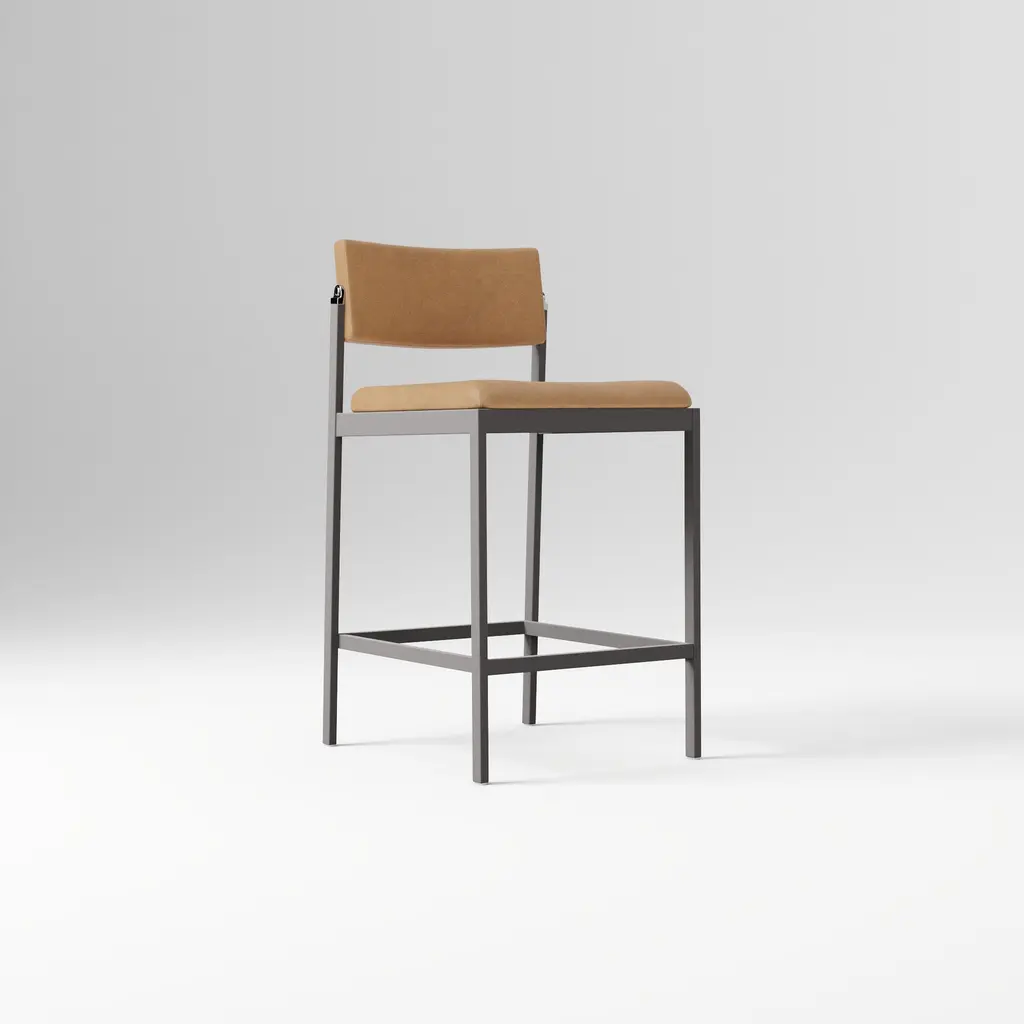 The pivoting backrest moves with you while eating or talking. Two-toned metal hinges add a modern design detail. Just the right size for counters or islands. Pick from a range of smooth, durable leather. Contract Grade, so you know it's built to last.