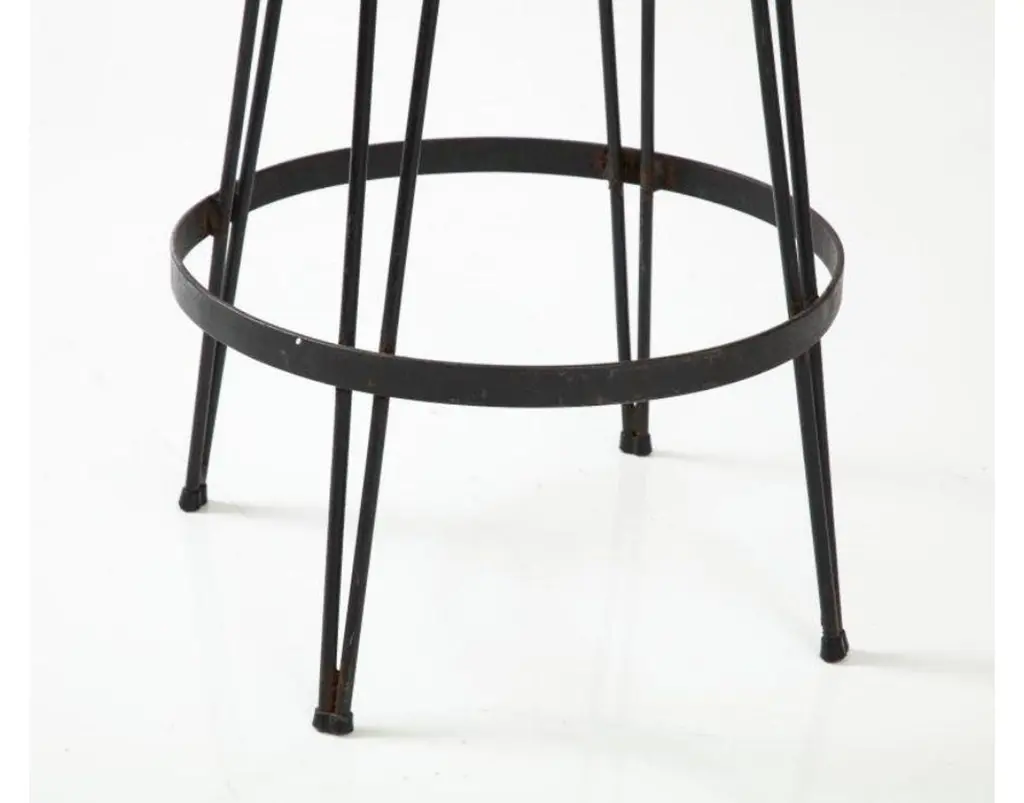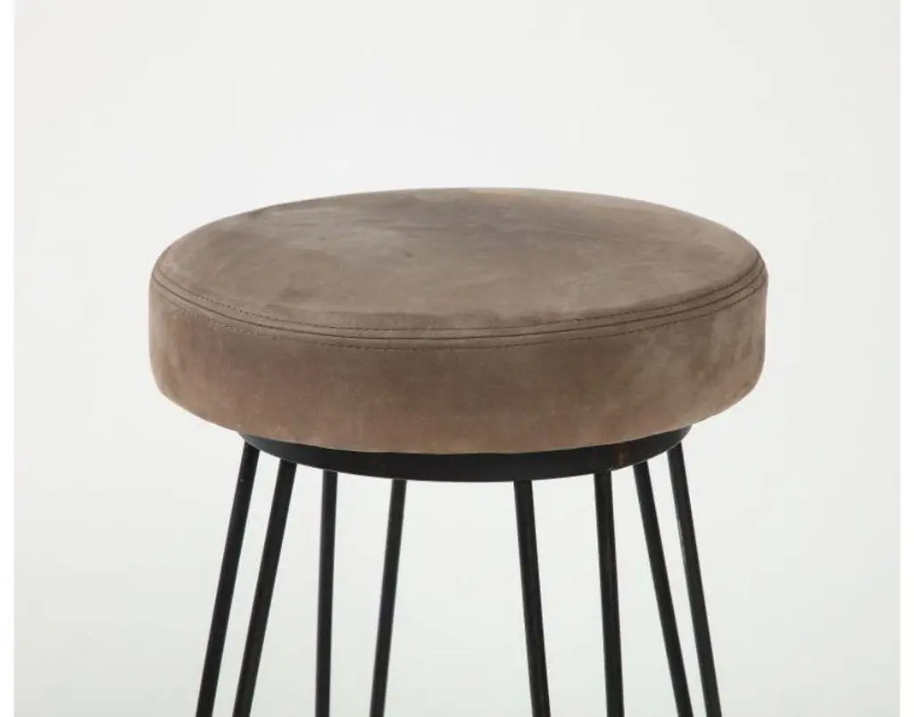 French Industrial Wrought Iron Counter Stool With Nubuck Upholstery, C. 1960