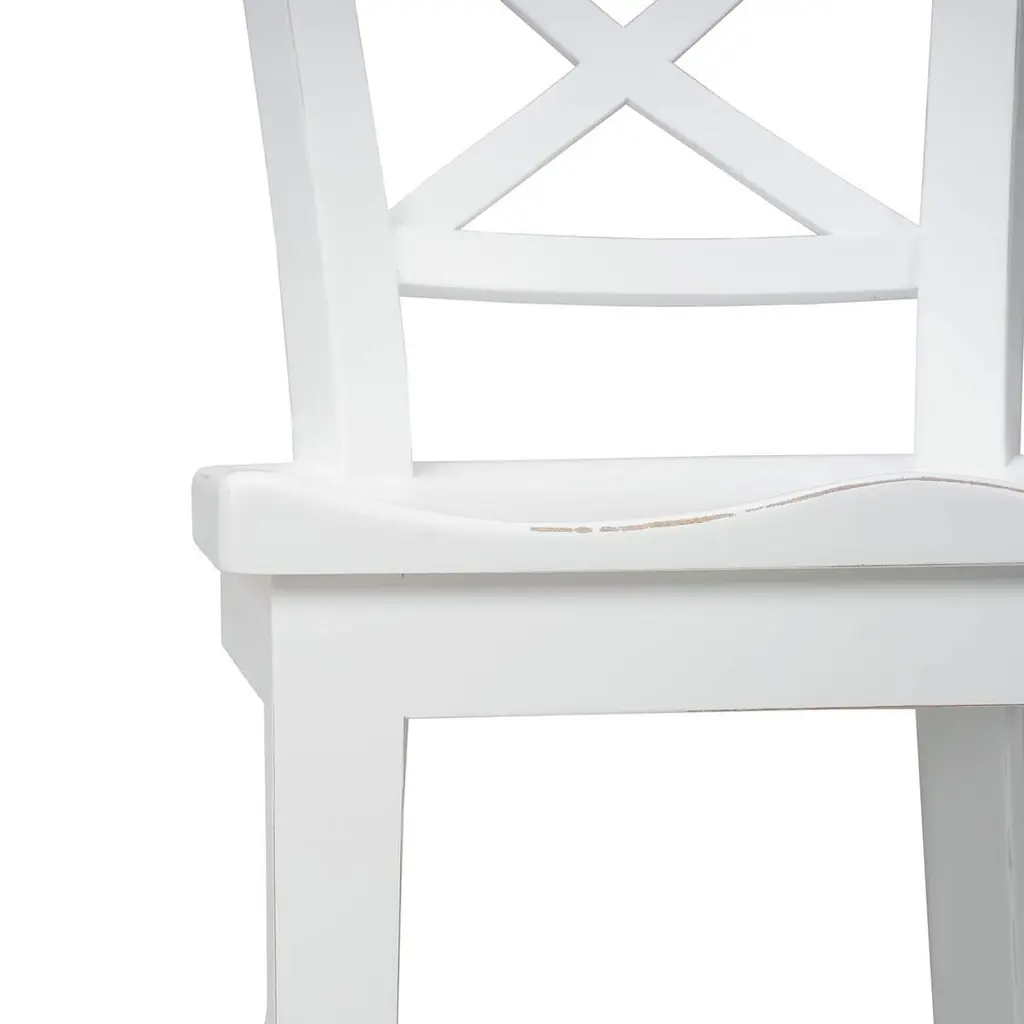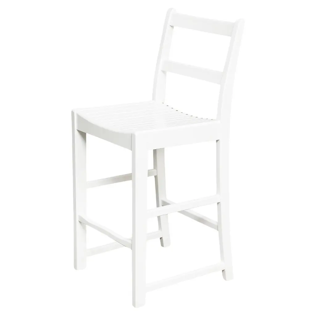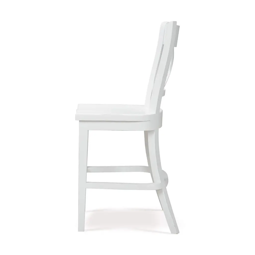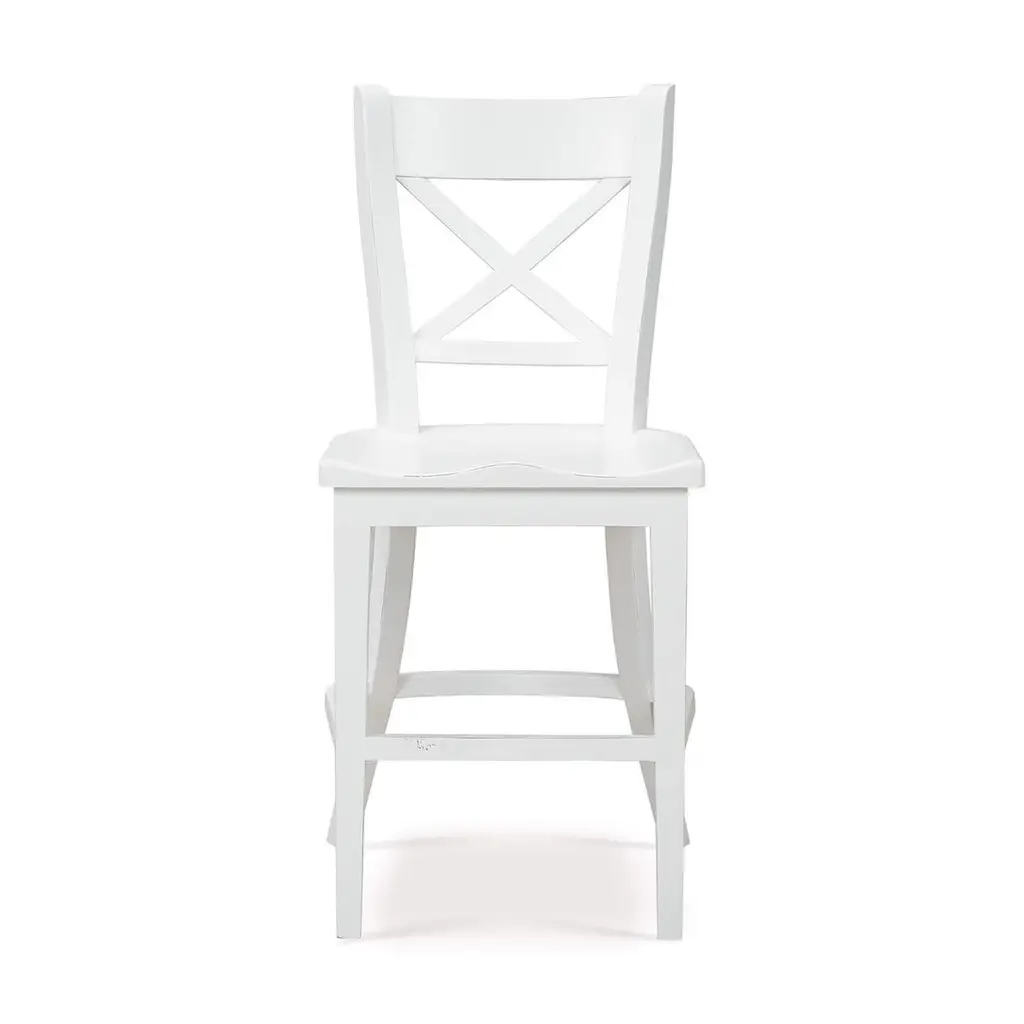 A perfect blend of traditional charm and modern functionality. This counter stool features a solid wooden frame with a lightly distressed architectural white painted finish, ensuring both durability and a timeless appeal. The backrest showcases an elegant cross-back design, adding a touch of classic French sophistication.The contoured wooden seat provides exceptional comfort, while the built-in footrest enhances support, making this stool an ideal addition to any kitchen, bar, or dining area. With its clean lines and rustic aesthetic, this counter stool seamlessly complements both contemporary and traditional interiors.Dimensions: 19" W x 21" D x 43" HSeat - 24" Custom finish options are also available. Contact us to learn more.