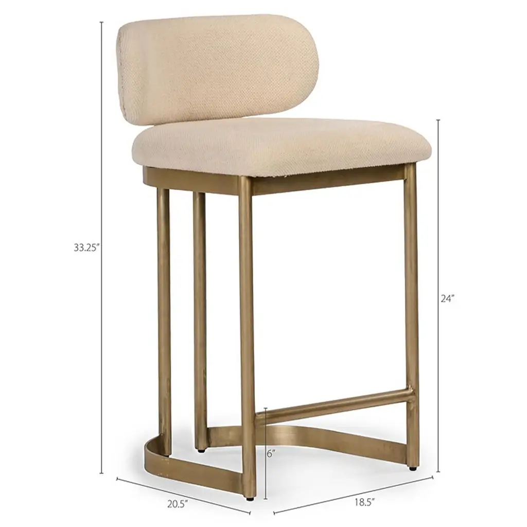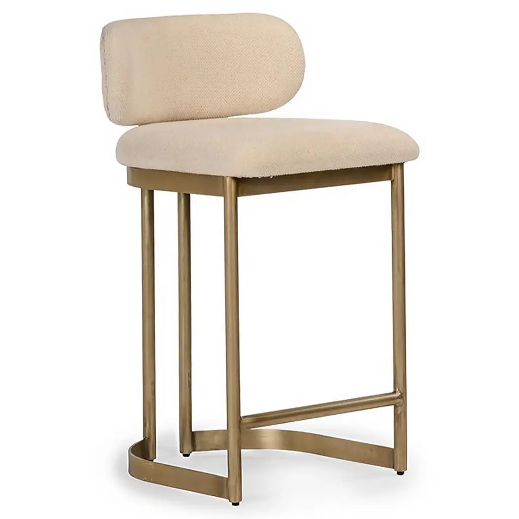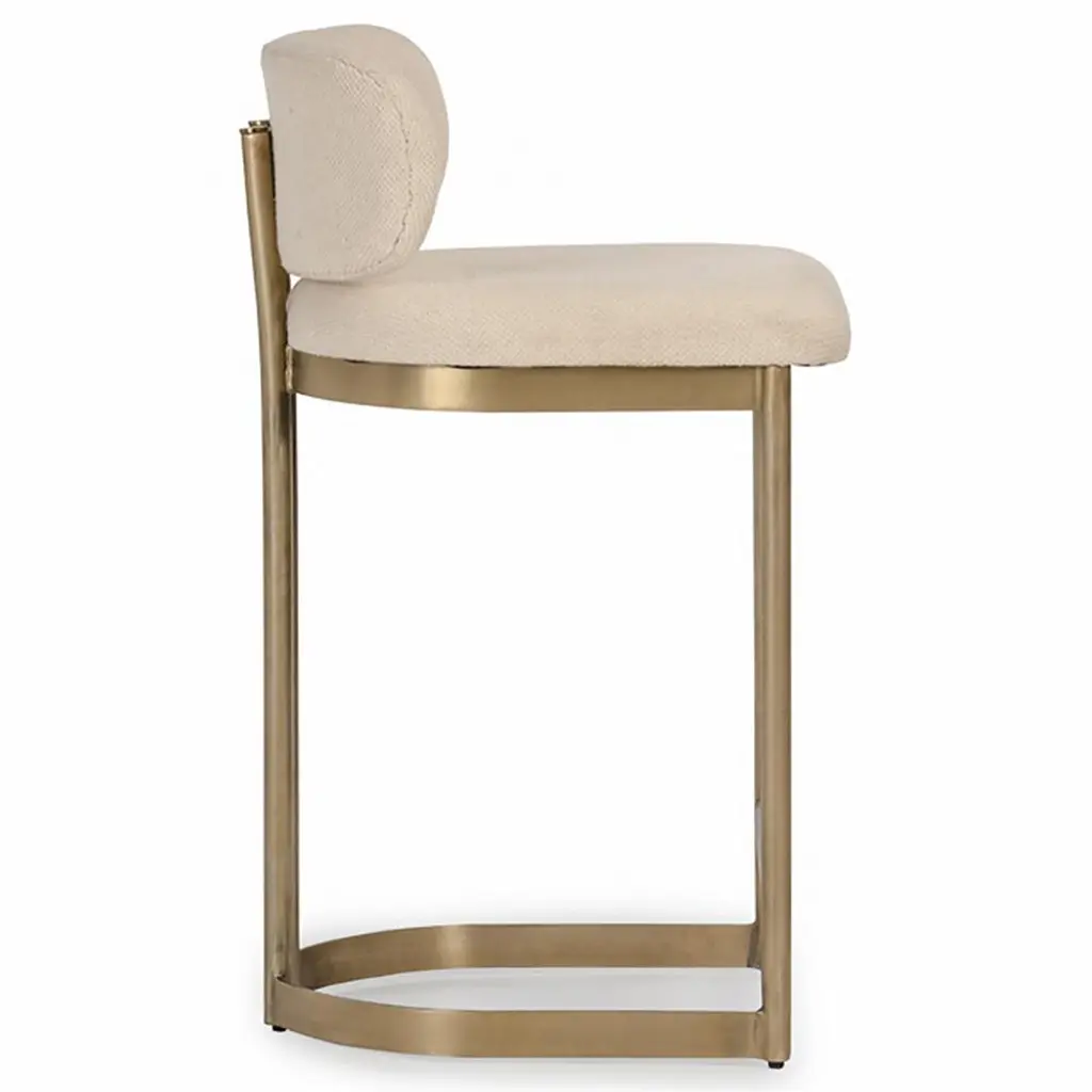 Freya Modern Classic White Upholstered Antique Brass Counter Stool