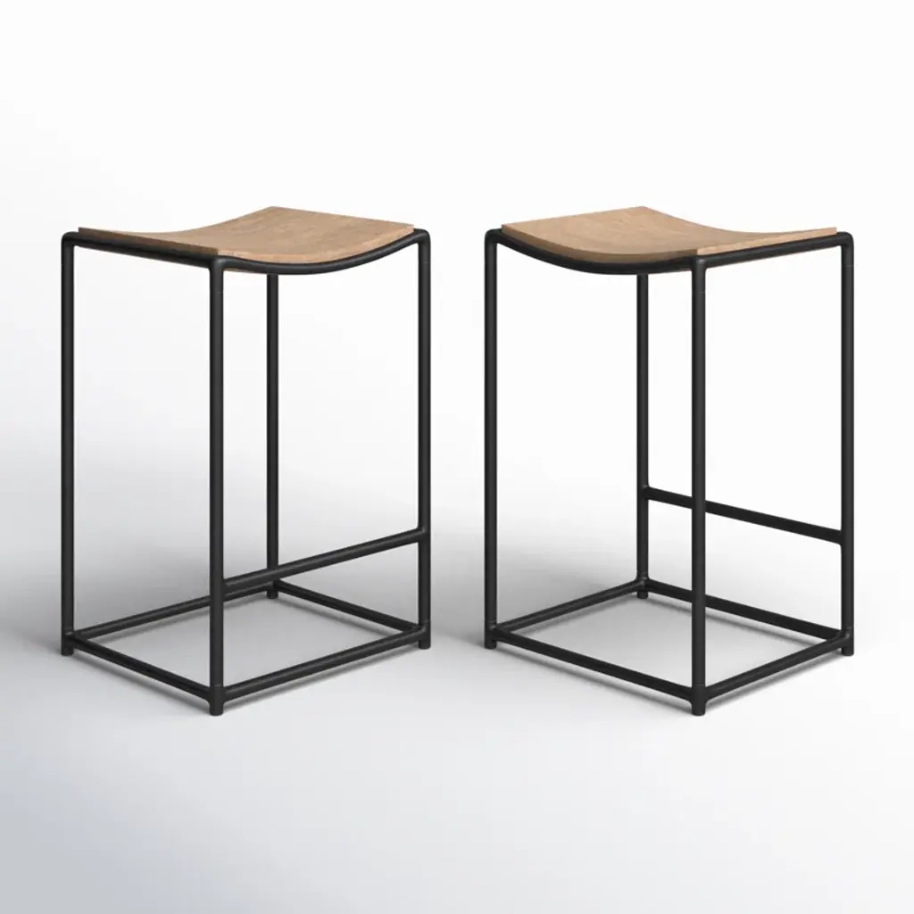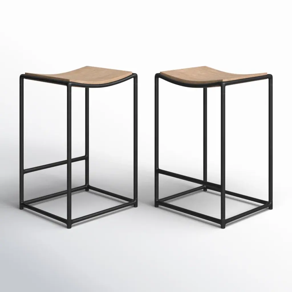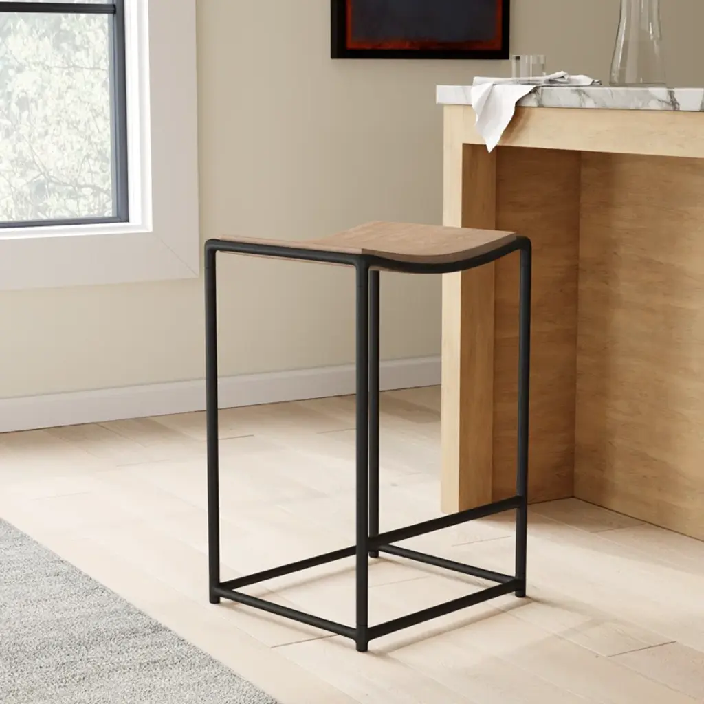 Galina is a counter stool with a minimalist design, constructed from textured matte iron tube metal. Its sleek frame provides sturdy support for a contoured solid wood seat with a sharp finish. The clean lines and complementary finishes add a touch of modern allure to any space.