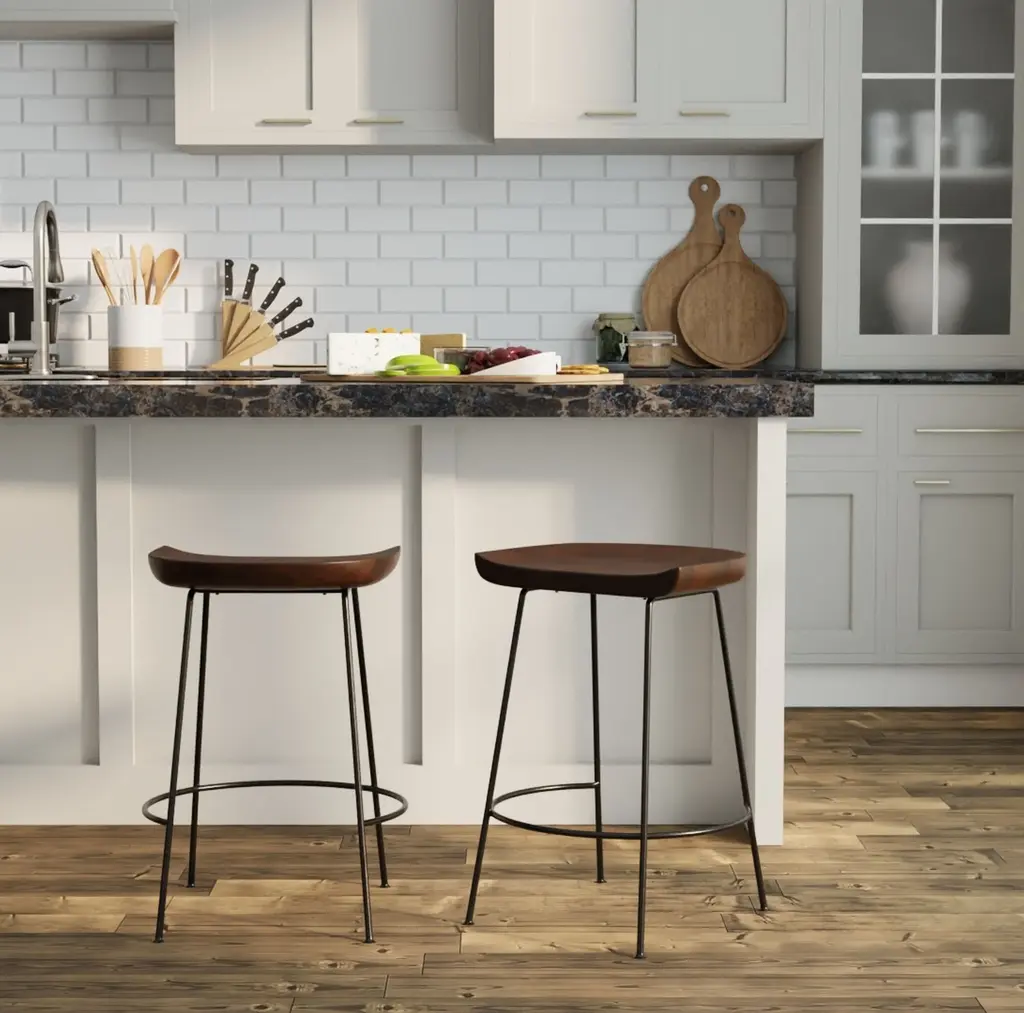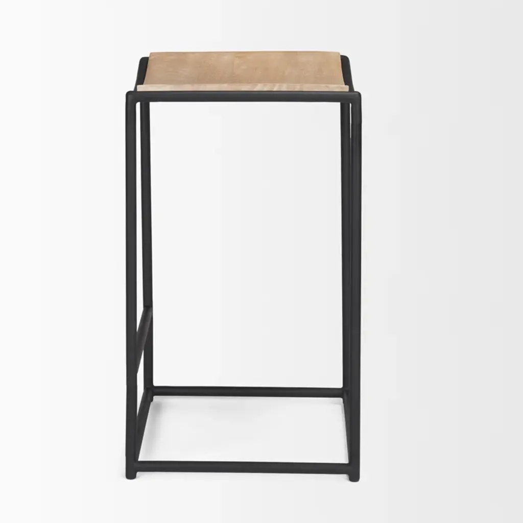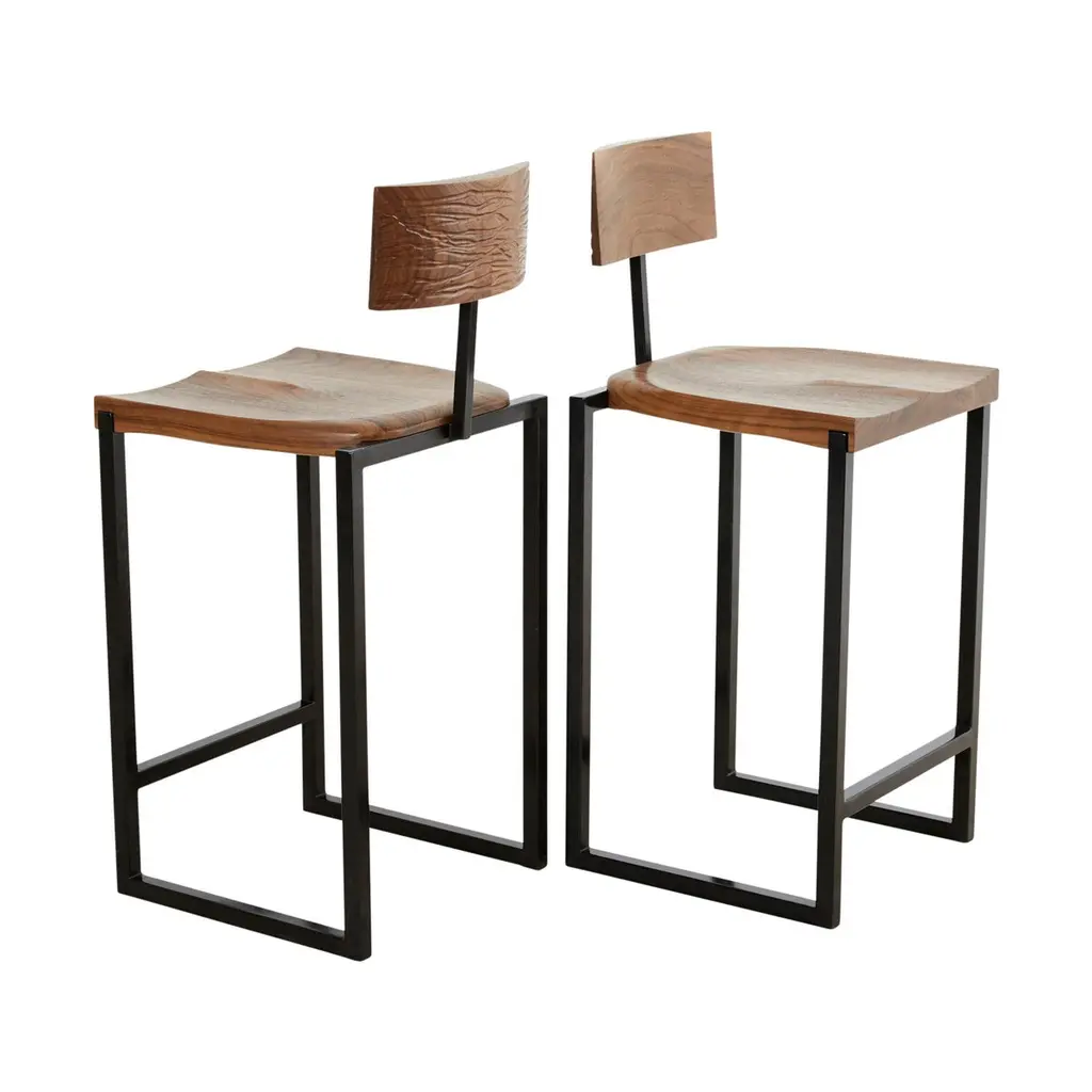 Galina is a counter stool with a minimalist design, constructed from textured matte iron tube metal. Its sleek frame provides sturdy support for a contoured solid wood seat with a sharp finish. The clean lines and complementary finishes add a touch of modern allure to any space.