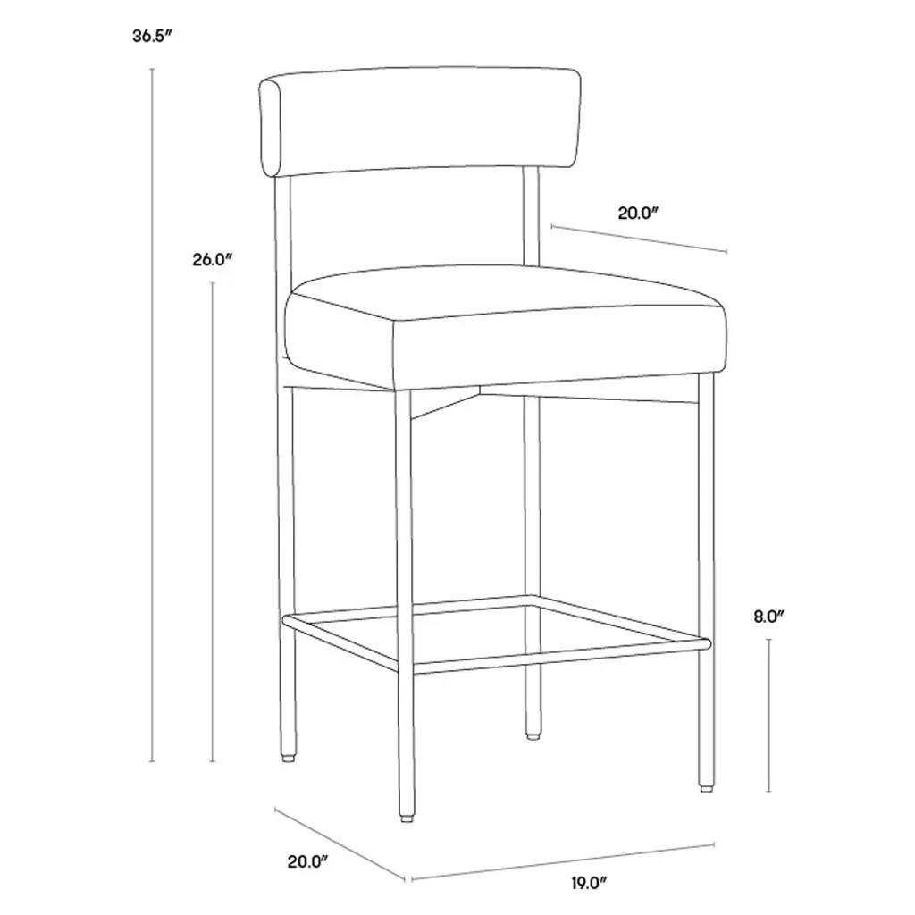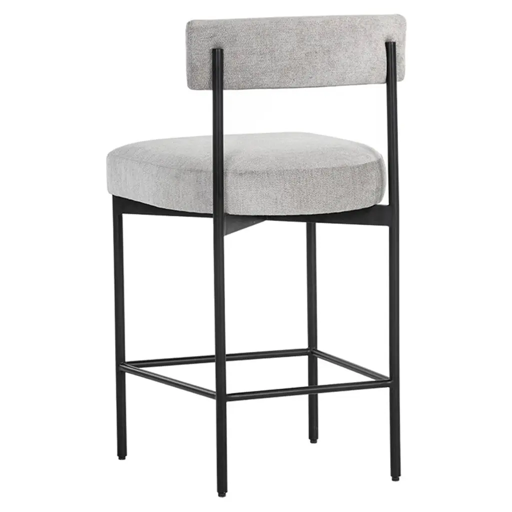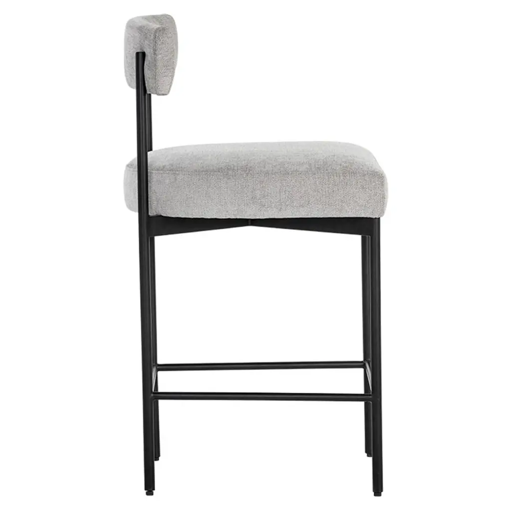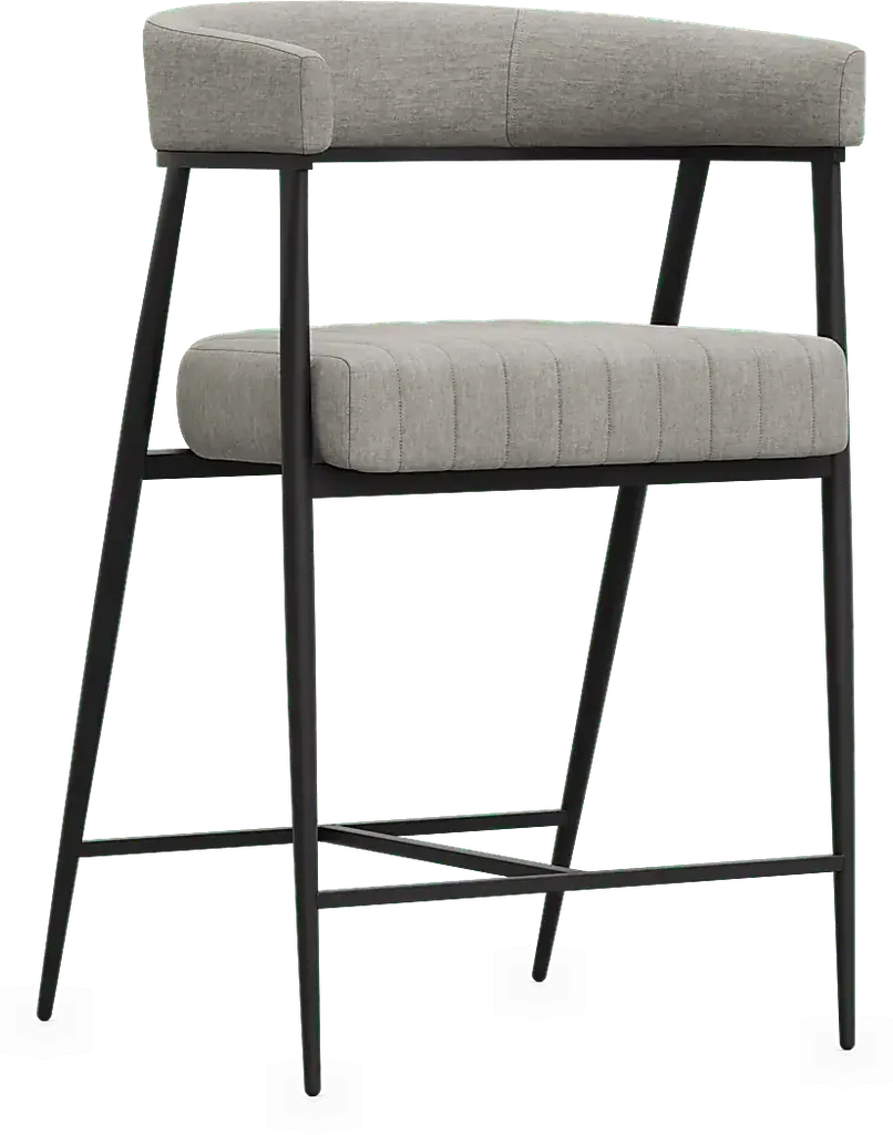 Timeless and refined with a balanced silhouette, the Garrison counter stool effortlessly complements any modern kitchen. Its clean-lined, powder-coated steel frame is finished in black. The supportive, softly curved seat and open back are upholstered in stone grey performance fabric.