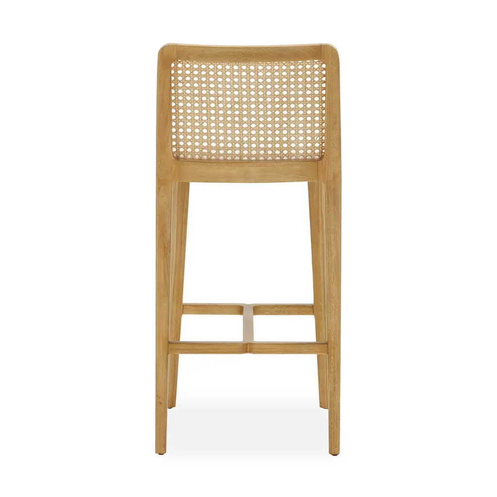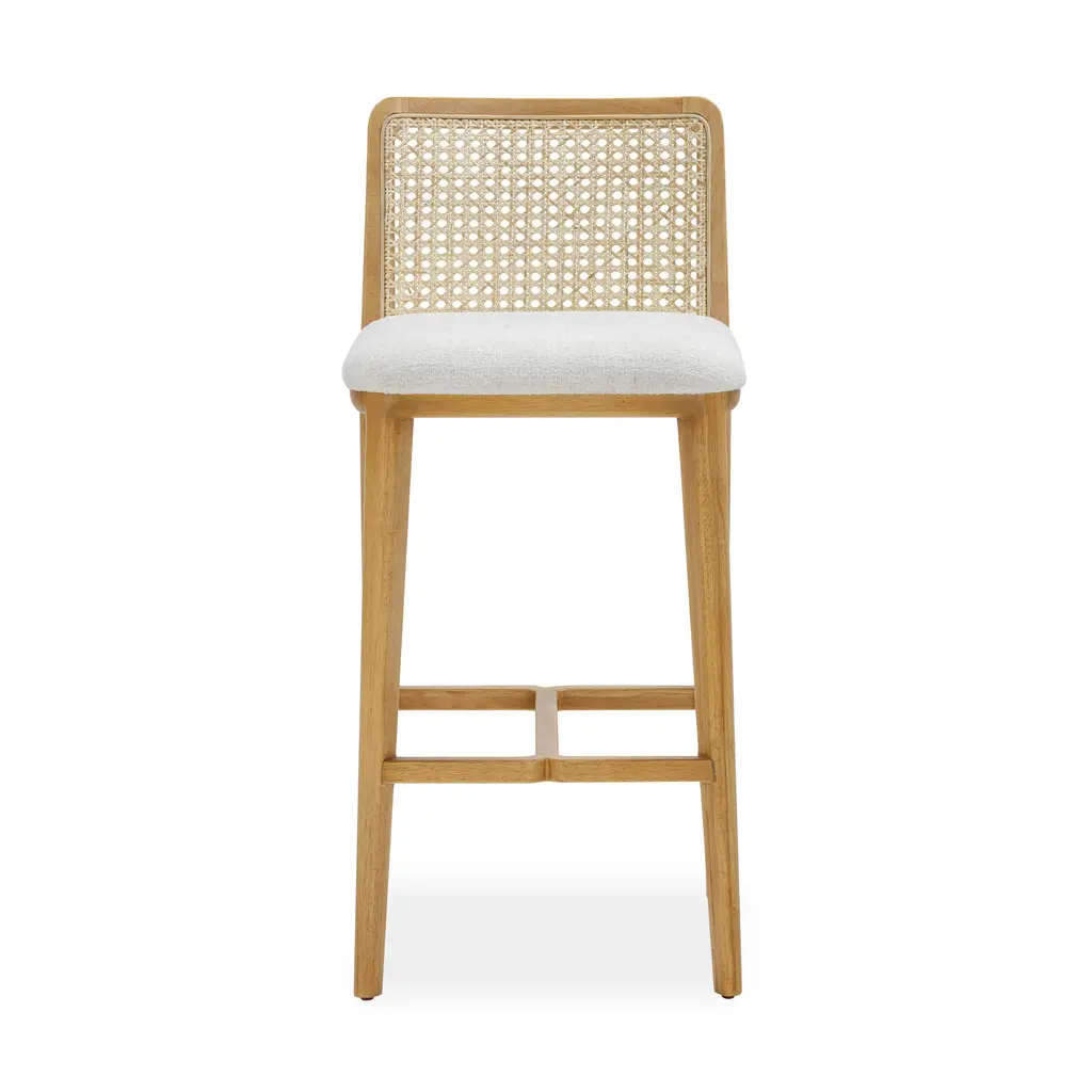 Add a touch of sophistication to your kitchen or bar with the Gerri Performance Tweed and Rattan Counter Stool. Featuring a unique woven rattan backrest and a liquid-repellent, easy-to-clean tweed upholstered seat, this stool combines beauty with practicality. The solid rubberwood frame ensures durability, while adjustable feet tips provide perfect balance. With its effortless blend of texture and style, this stool is the perfect seat for both comfort and elegance.