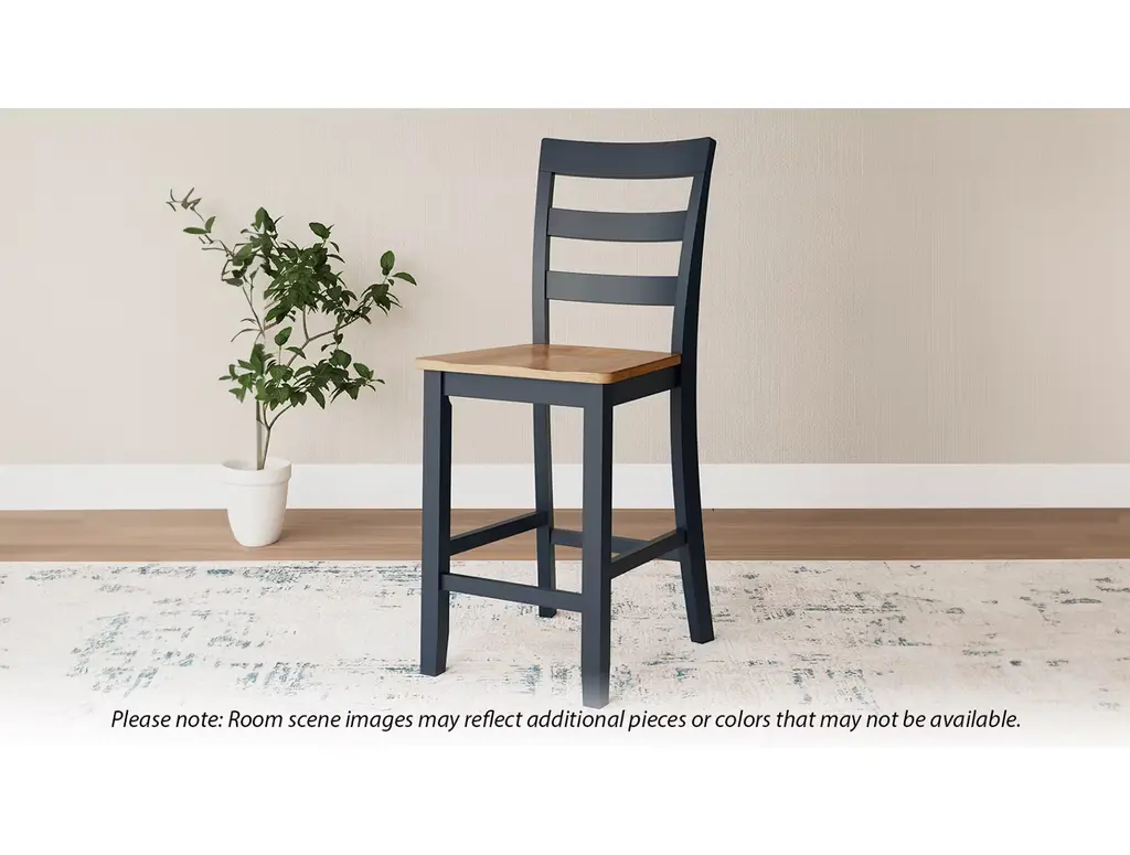 Give your dining space a fresh two-tone farmhouse look with the Ashley Gesthaven 24" Counter Stool. This transitional-style bar stool features a gently curved ladder back, contoured seat, and square legs with a footrest for added comfort.