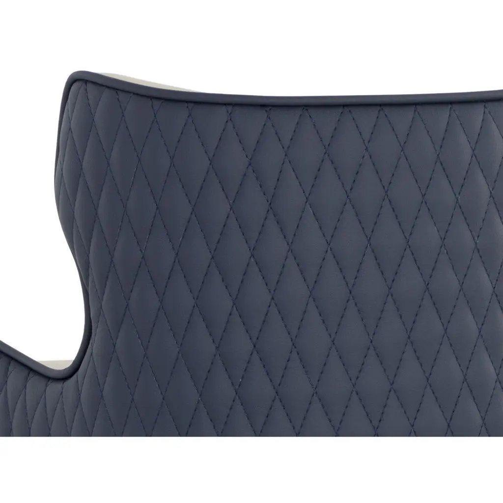 A classic counter stool featuring a substantial seat upholstered in contrasting dillon cream and dillon thunder faux leather. Diamond stitching on the seatback adds a hint of elegance while black wood legs and brushed gold foot caps complete the look. Handle With Care: This design has been crafted with faux leather. Faux leather is manufactured to reflect the natural characteristics of leather as such, colour variations, markings, wrinkles, grooves, and light scratches are appreciated characteristics. No two pieces will be alike. Visit our Product Care page for more information on how to ensure the lasting beauty of this piece.