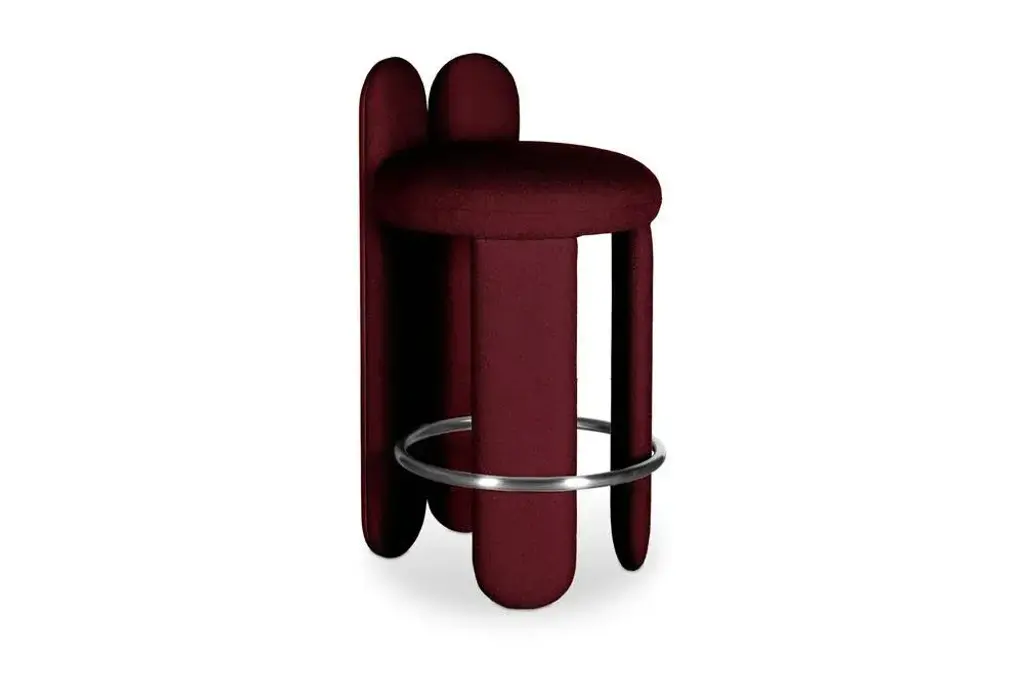 Glazy counter stool by Royal Stranger Dimensions: Width 55cm, height 90cm, depth 60cm, seat height 84cm Materials: Solid wood frame, foam, upholstery, stainless steel. Color: Lago Bordeaux. Available in brass, stainless steel or copper. Also available in other Royal Stranger’s fabrics and in COM. Step into a world of eye candy furniture with Glazy Stool. There is a groovy feeling to the rounded lines defining its round seat, backrest, and legs. An irresistible furniture piece where velvety upholstery playfully meets a glazed back finishing. This piece is attributed to the mentioned designer/maker. It has no attribution mark and no official proof of authenticity, however it is well documented in design history. I take full responsibility for any authenticity issues arising from misattribution