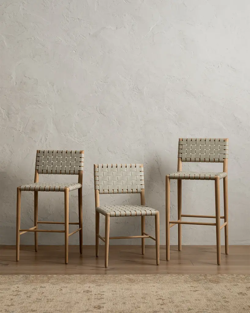 Expertly crafted with acute attention to detail, we designed the Greely Stool with a light and airy, yet sophisticated feel. Woven with aniline dyed leather wrapped around a solid white oak frame featuring slightly tapered legs, these woven counter stools instantly elevate your kitchen space with their modern, streamlined silhouette.